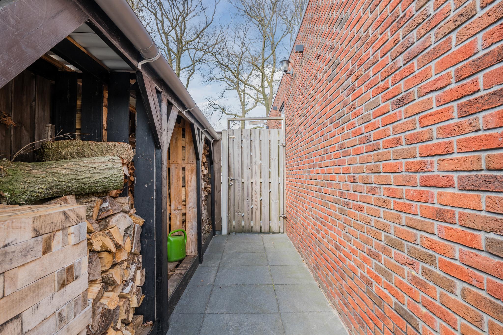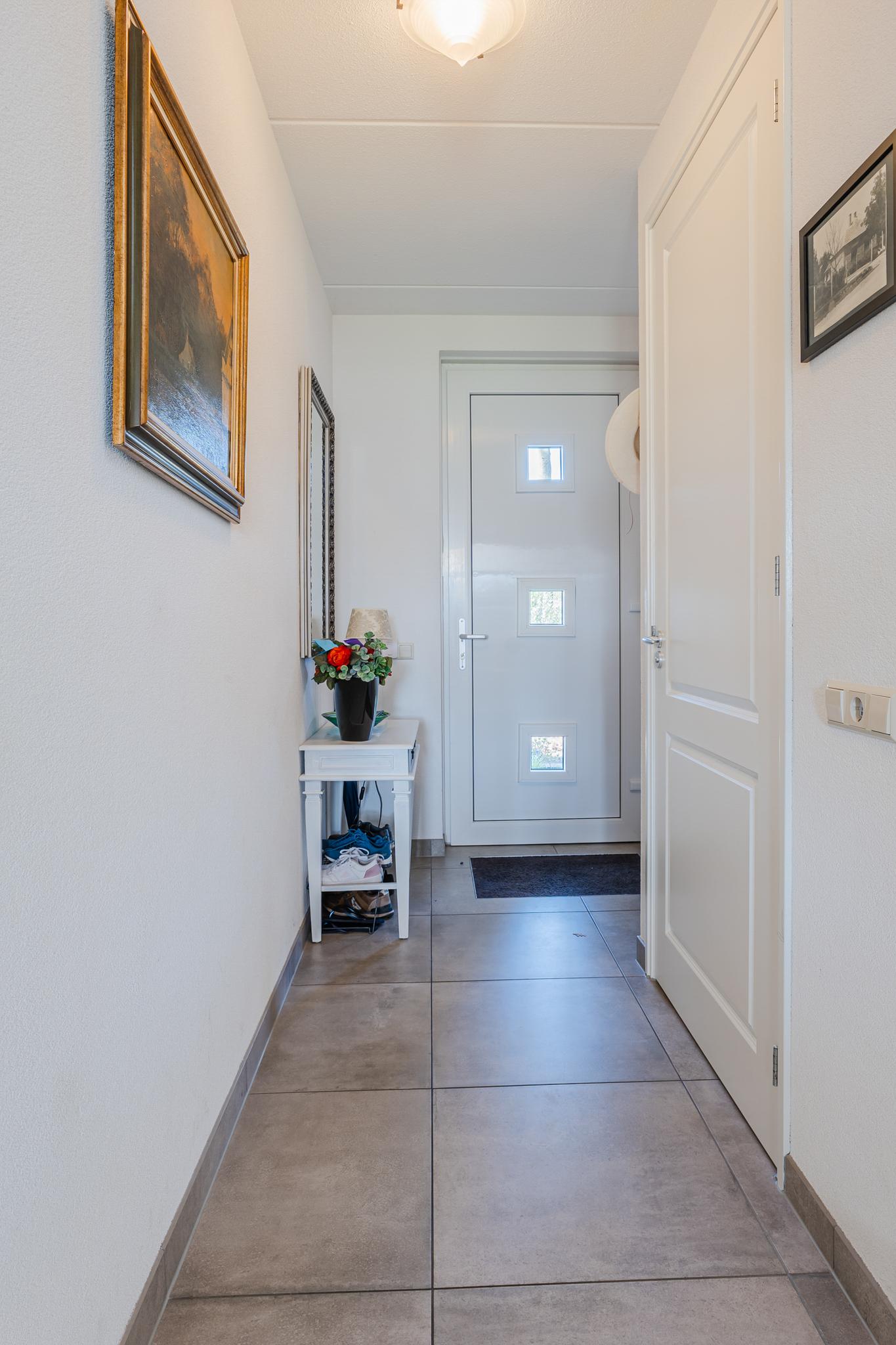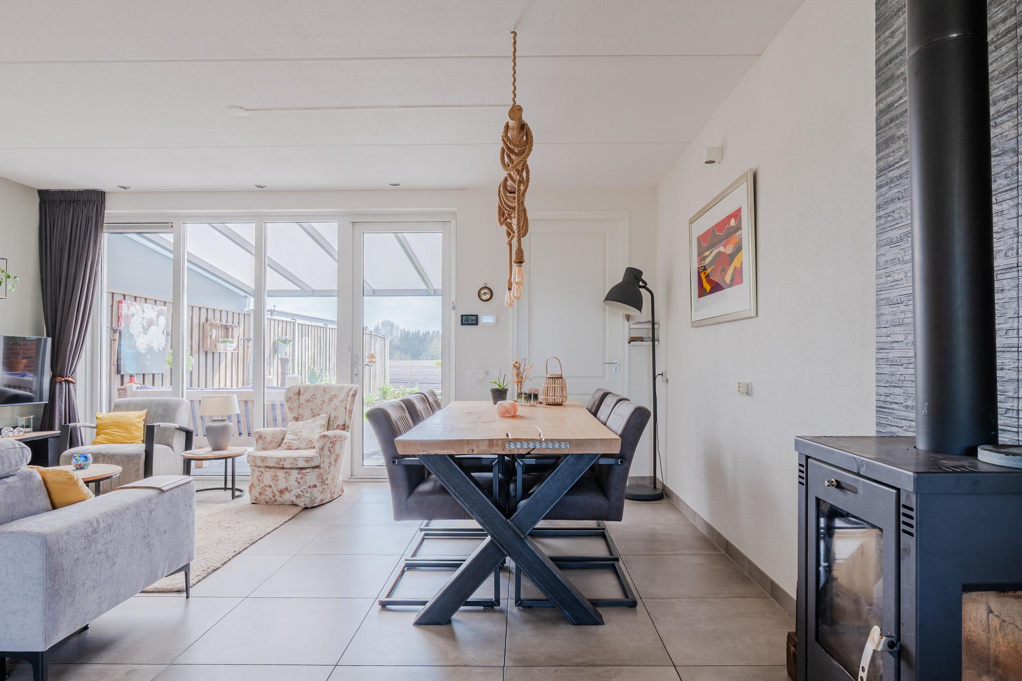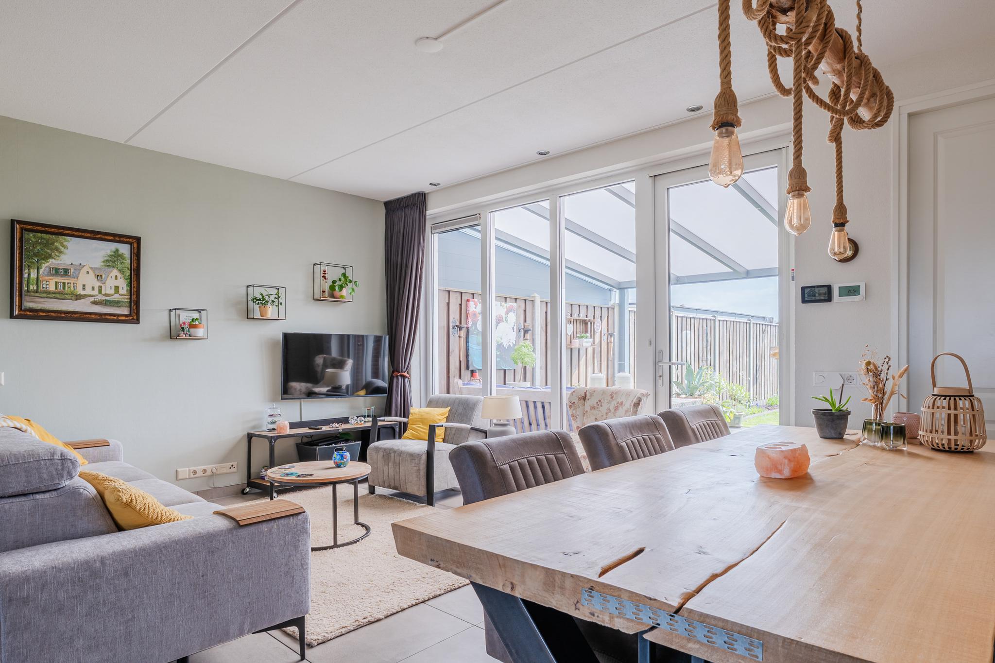 Aan de achterzijde van de woning is een veranda geplaatst waar je heerlijk kunt genieten van de zon en rust. De tuin is te bereiken via de woonkamer, bijkeuken of achterom.
