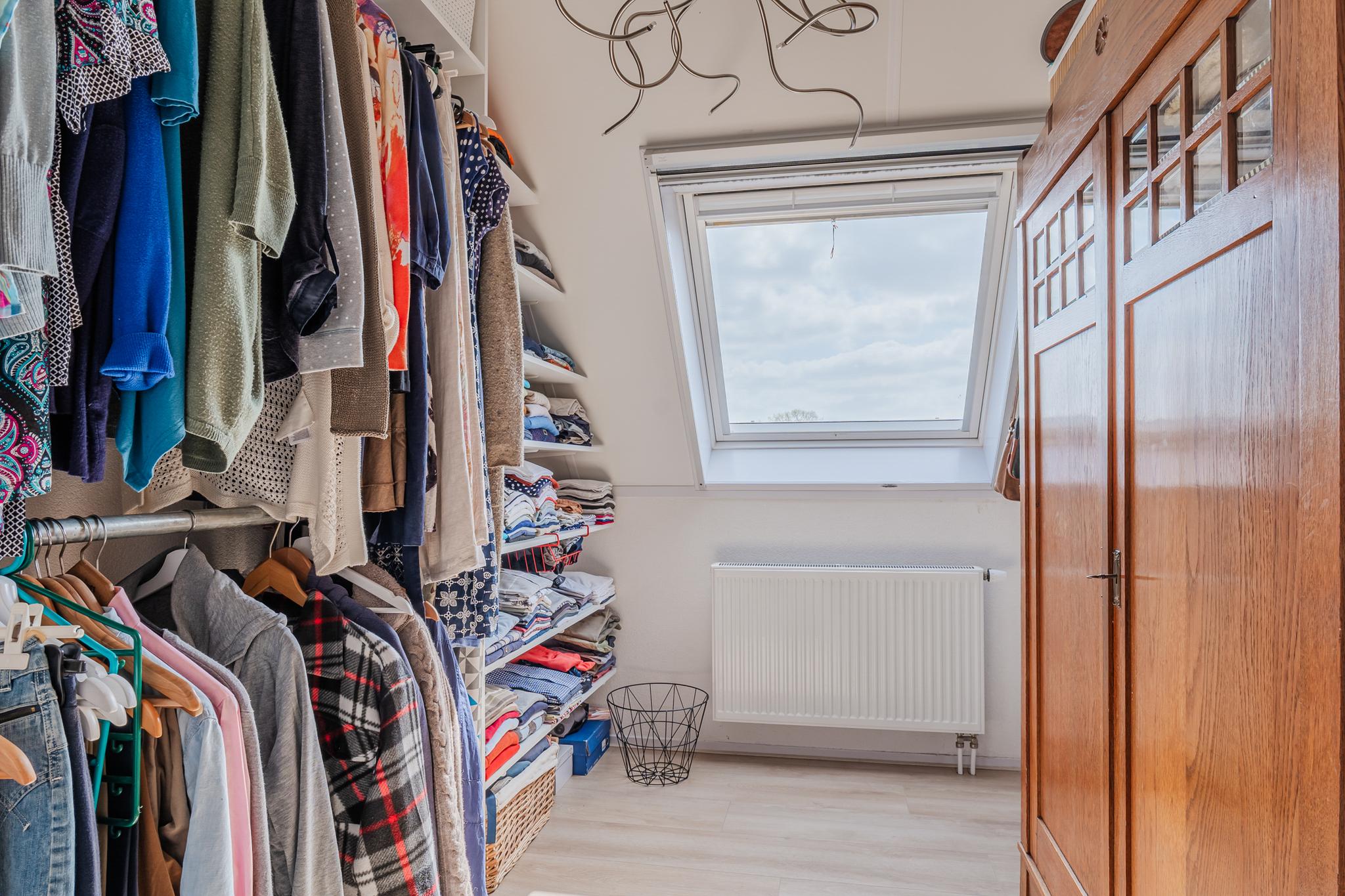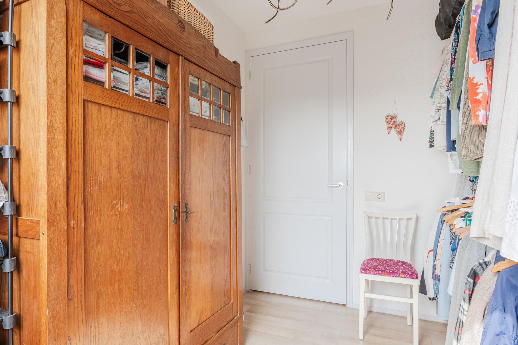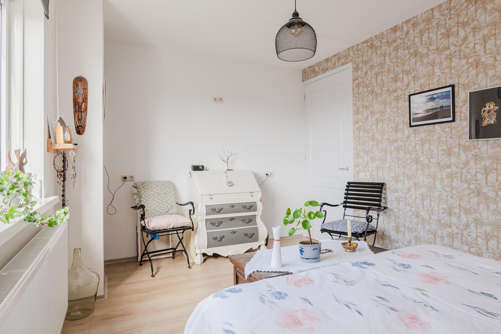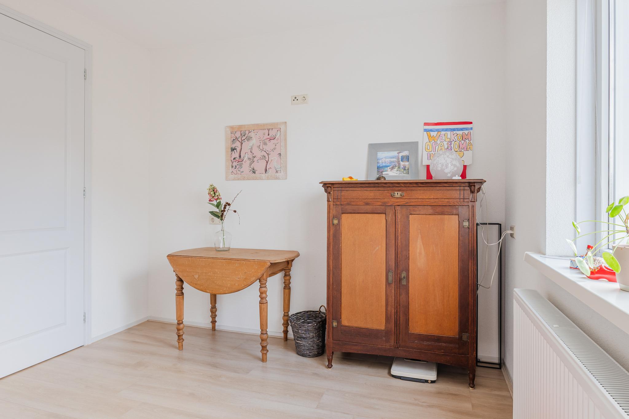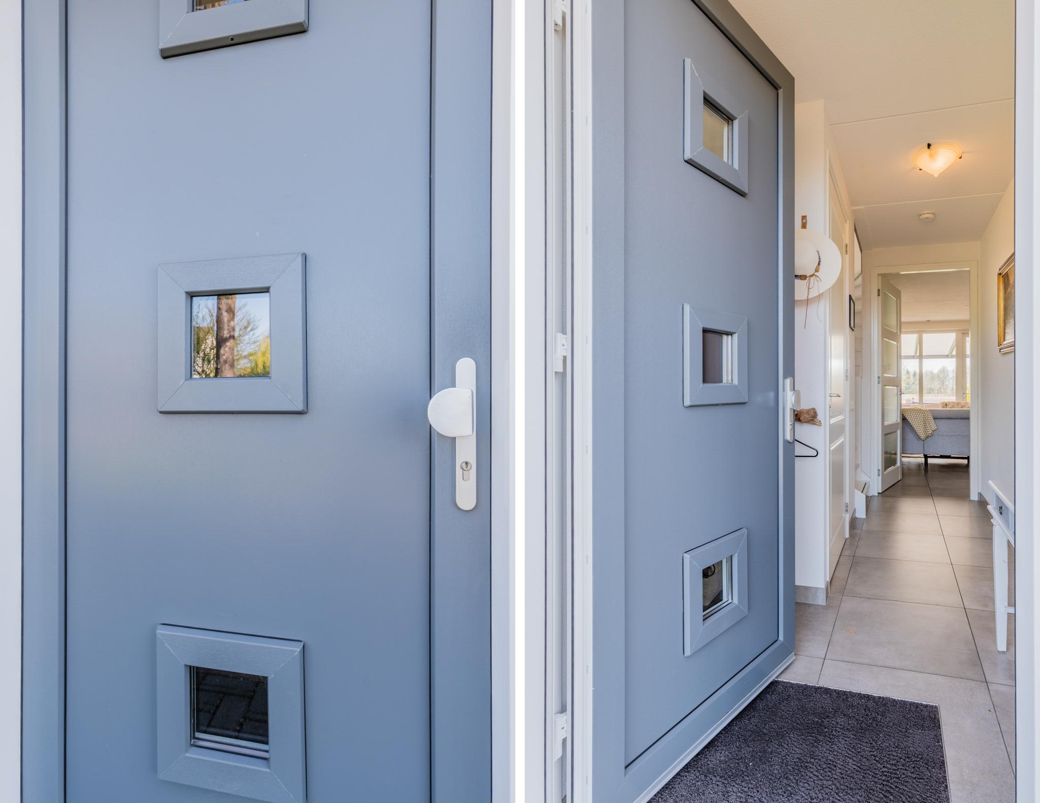 Aan de achterzijde van de woning is een veranda geplaatst waar je heerlijk kunt genieten van de zon en rust. De tuin is te bereiken via de woonkamer, bijkeuken of achterom.