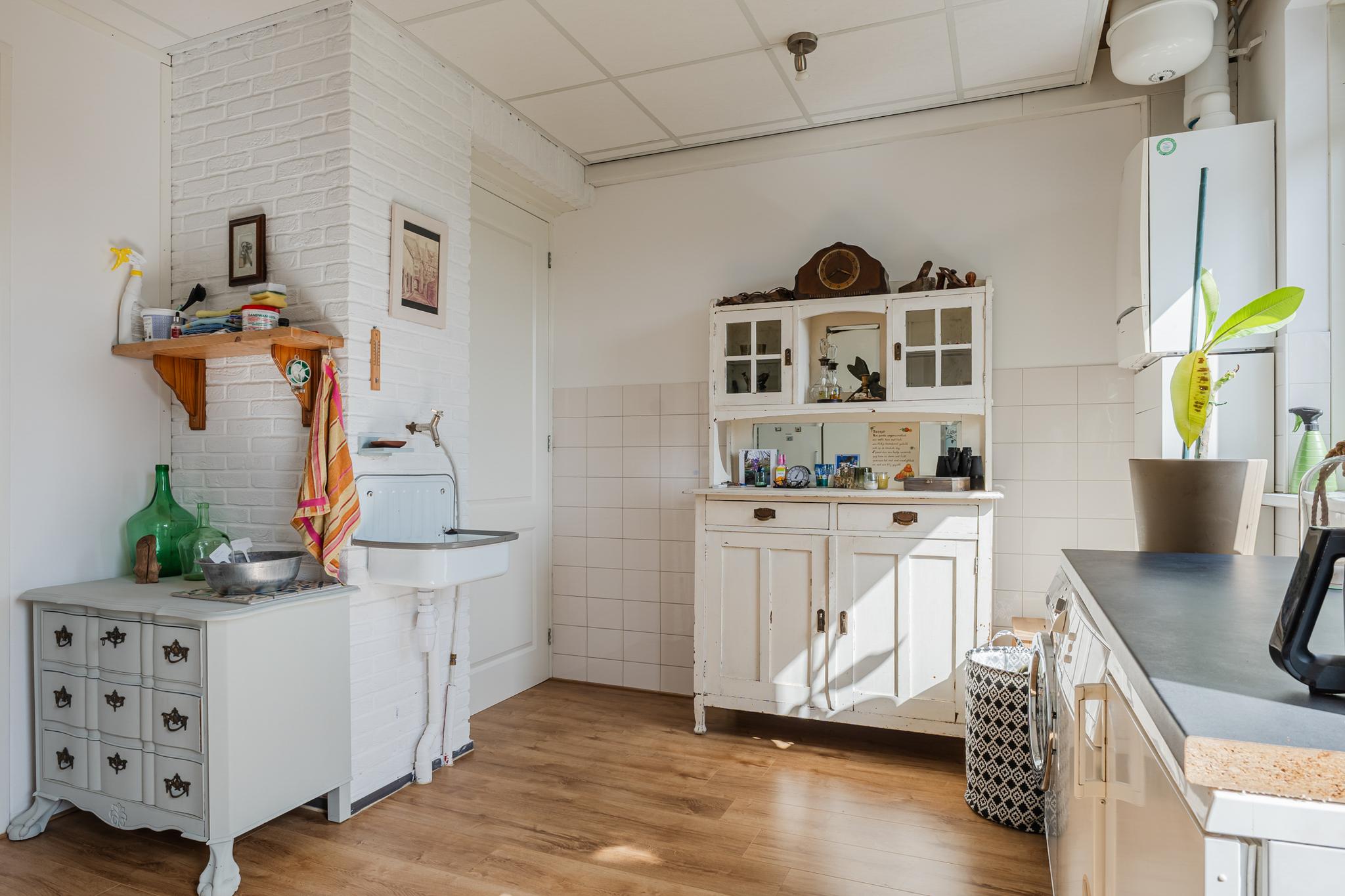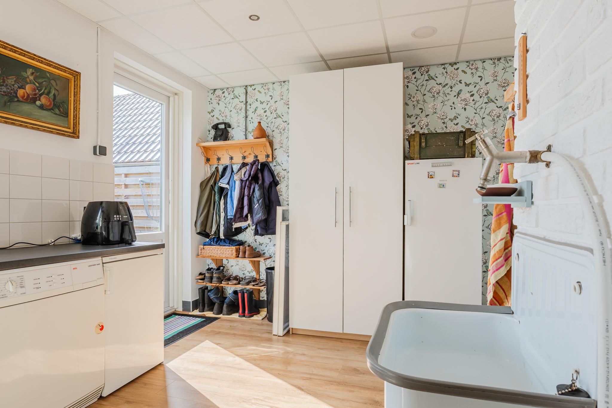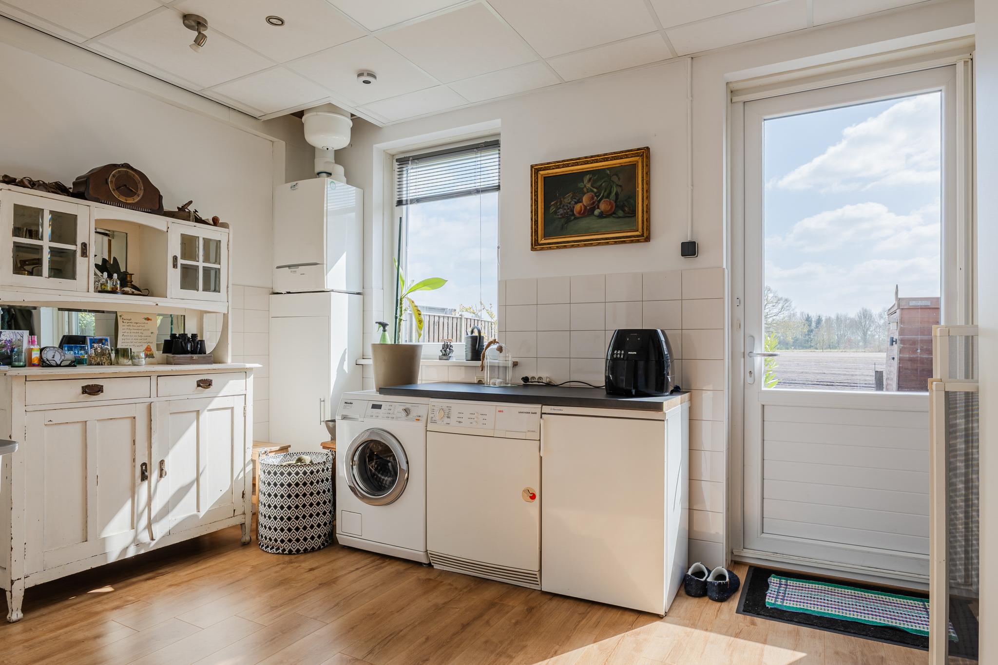Vanuit de woonkamer is een ruime bijkeuken te bereiken die tevens toegang geeft tot de garage.