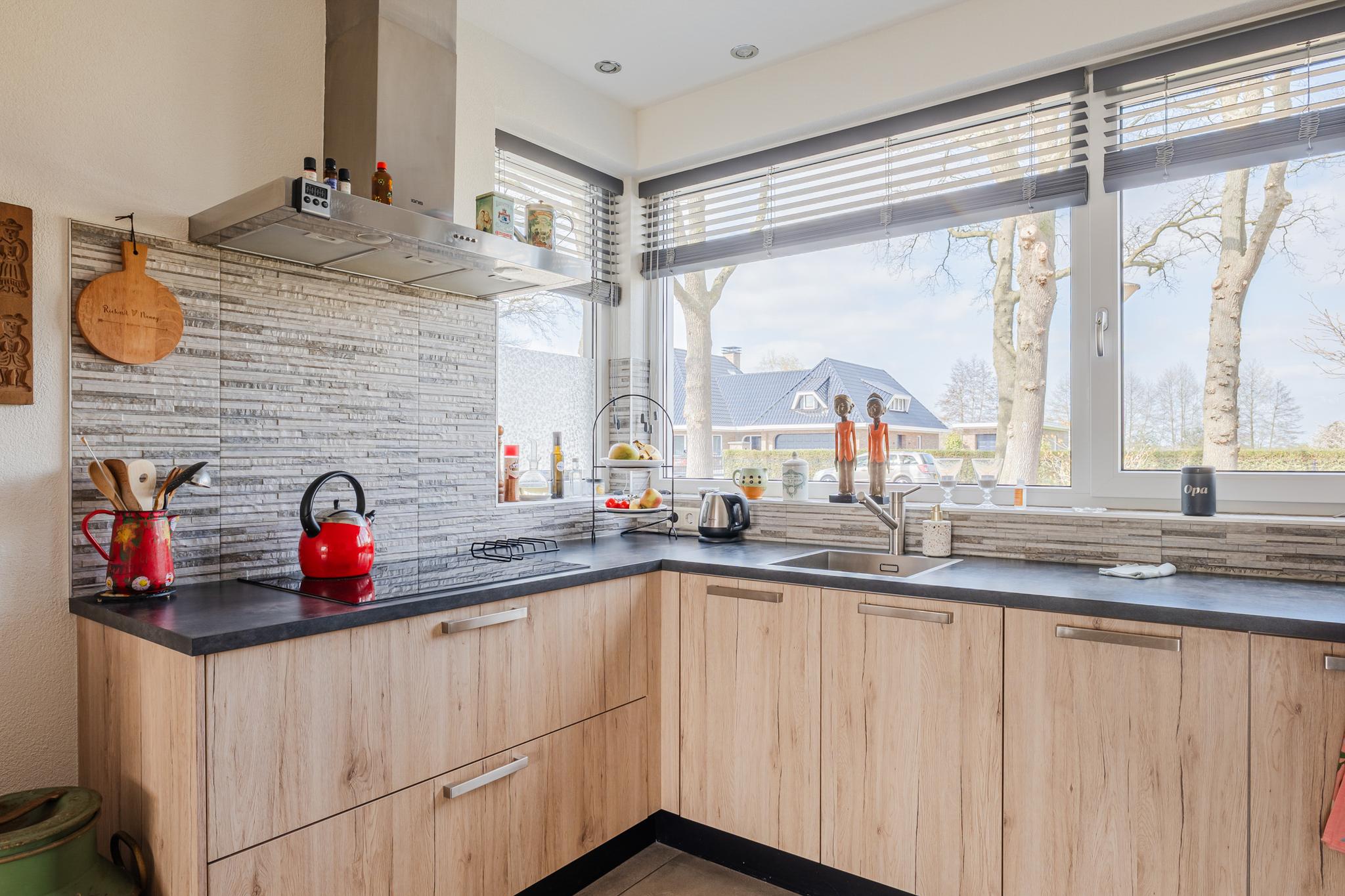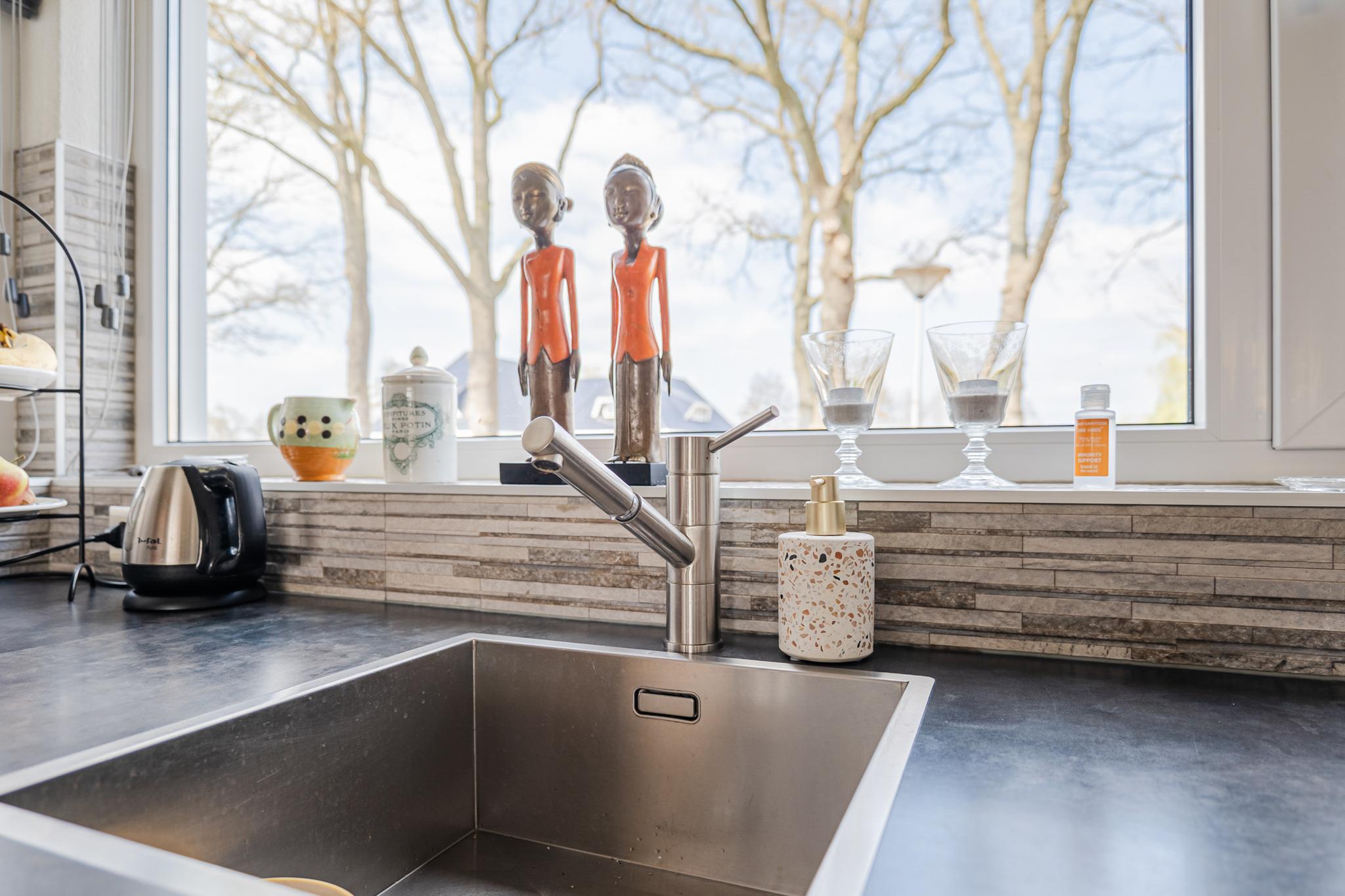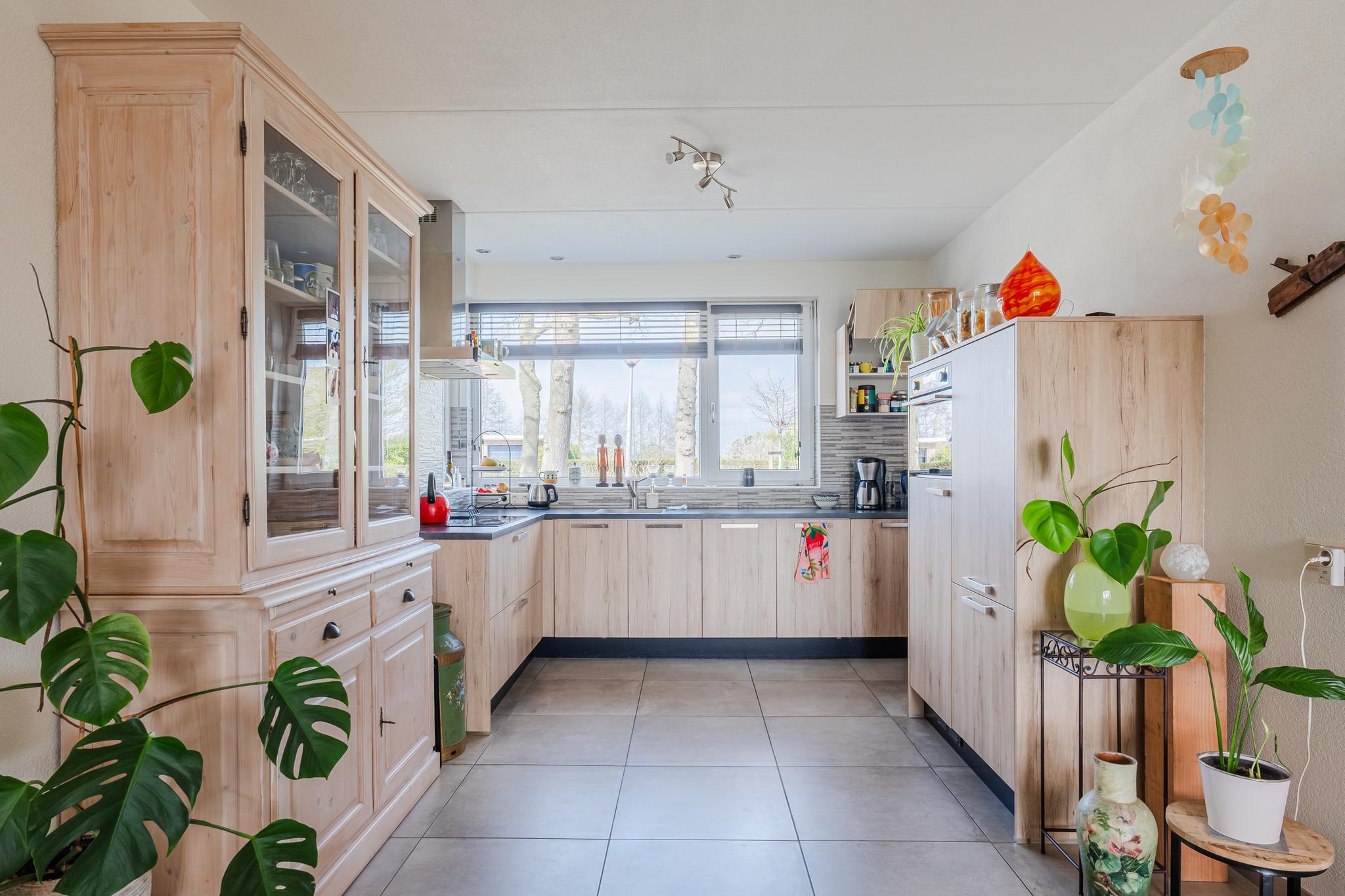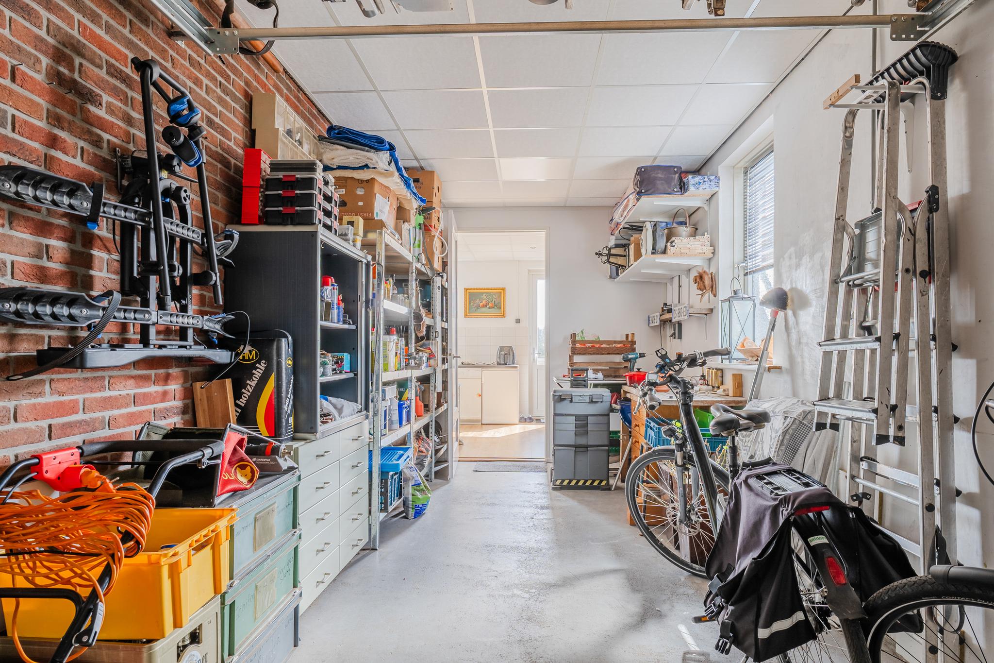 Vanuit de woonkamer is een ruime bijkeuken te bereiken die tevens toegang geeft tot de garage.