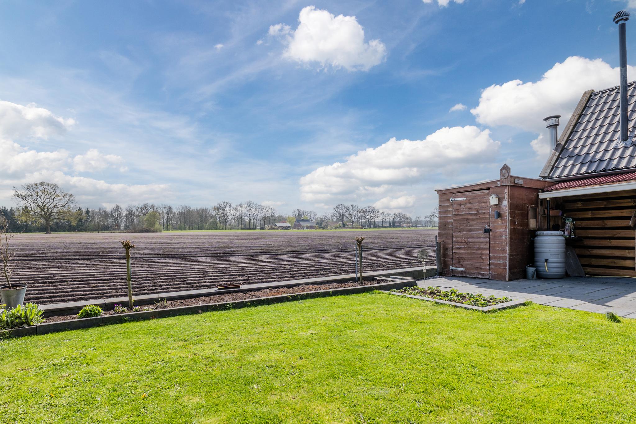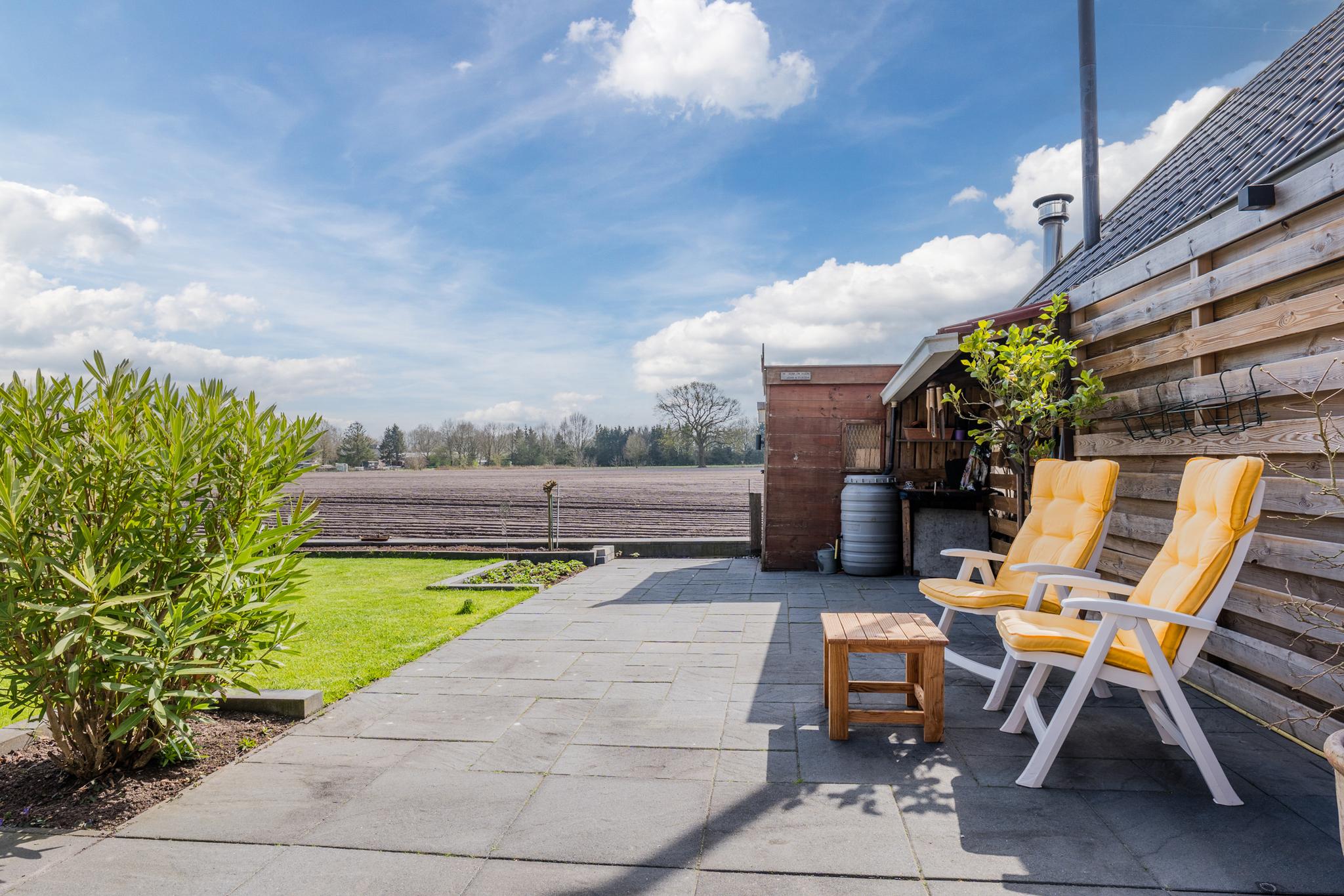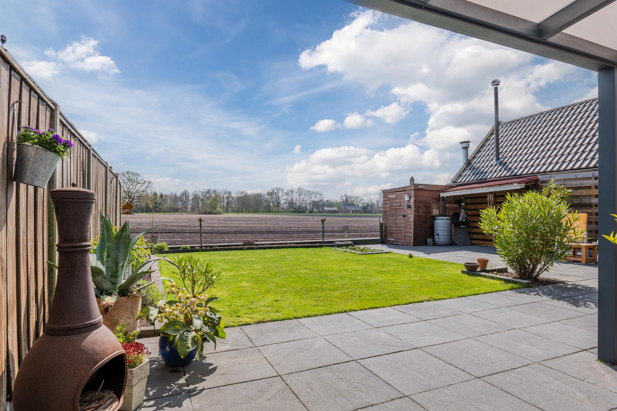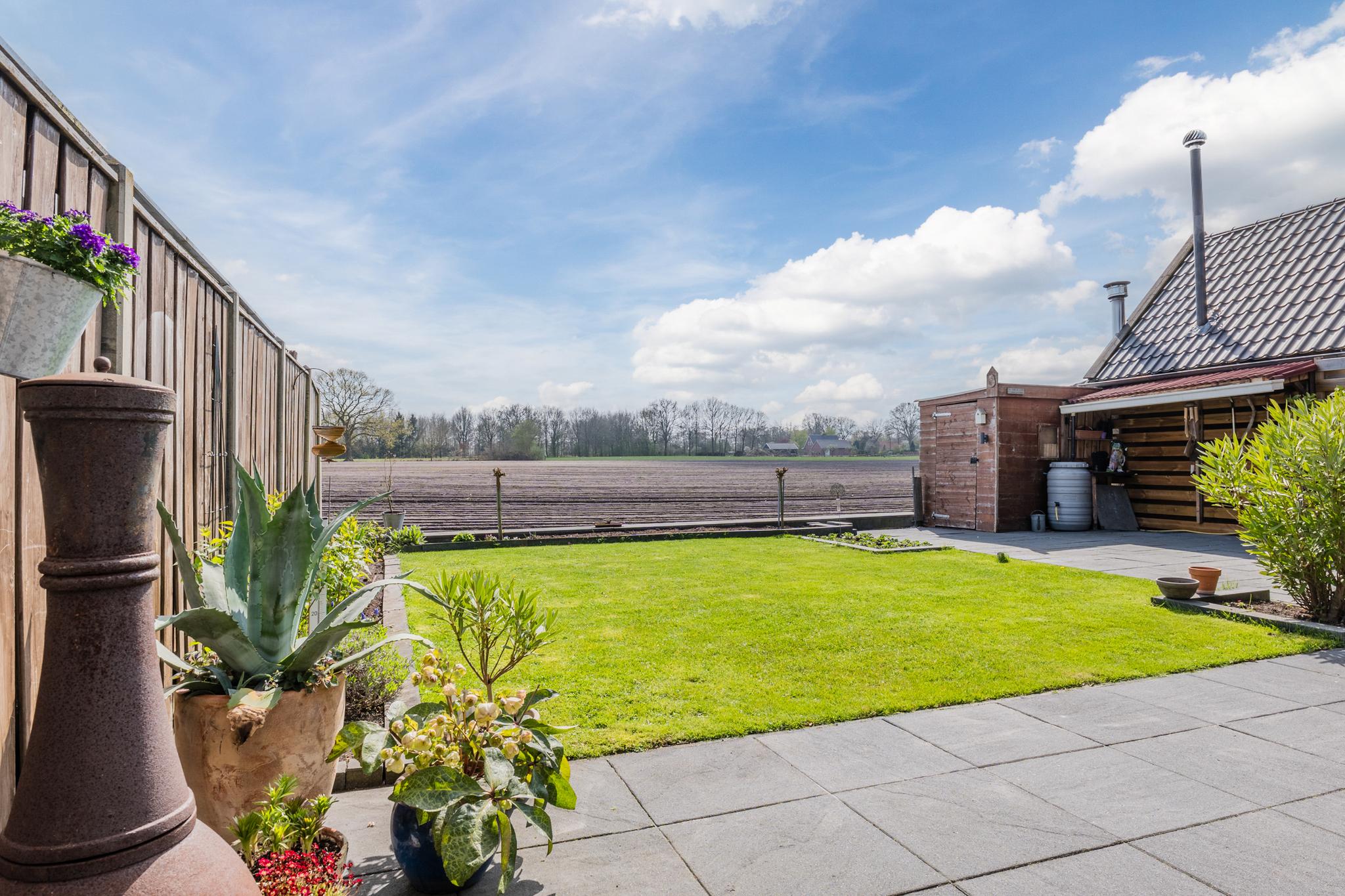 De zonnige tuin is gelegen op het zuiden en heeft een heerlijk vrij uitzicht over de achtergelegen landerijen.