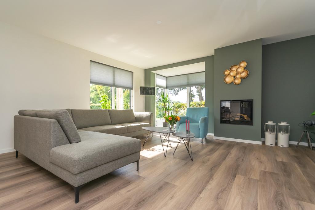De begane grond is grotendeels voorzien van vloerverwarming, PVC-vloer en hardsteen.