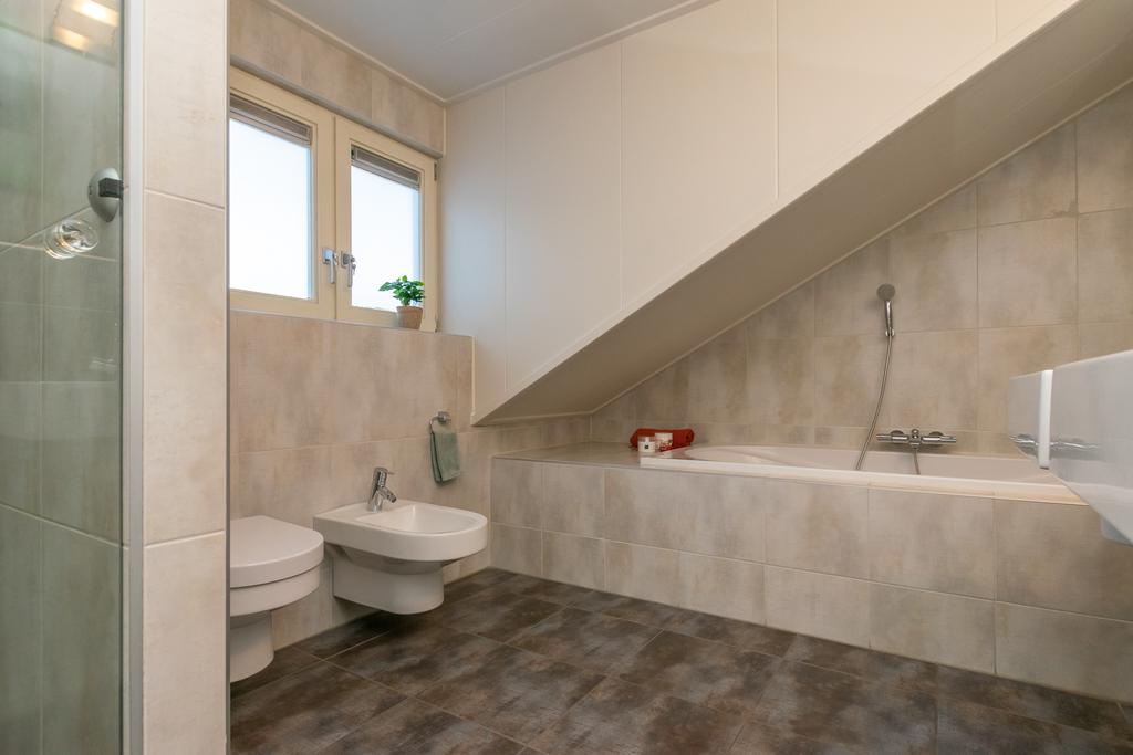 Overloop met vaste kasten, 4 slaapkamers waarvan de ouderslaapkamer met walk in closet, deze kan eventueel ook weer als slaapkamer dienen en een luxe uitgevoerde badkamer welke is voorzien van ligbad, inloopdouche, dubbele wastafel, toilet en een bidet.