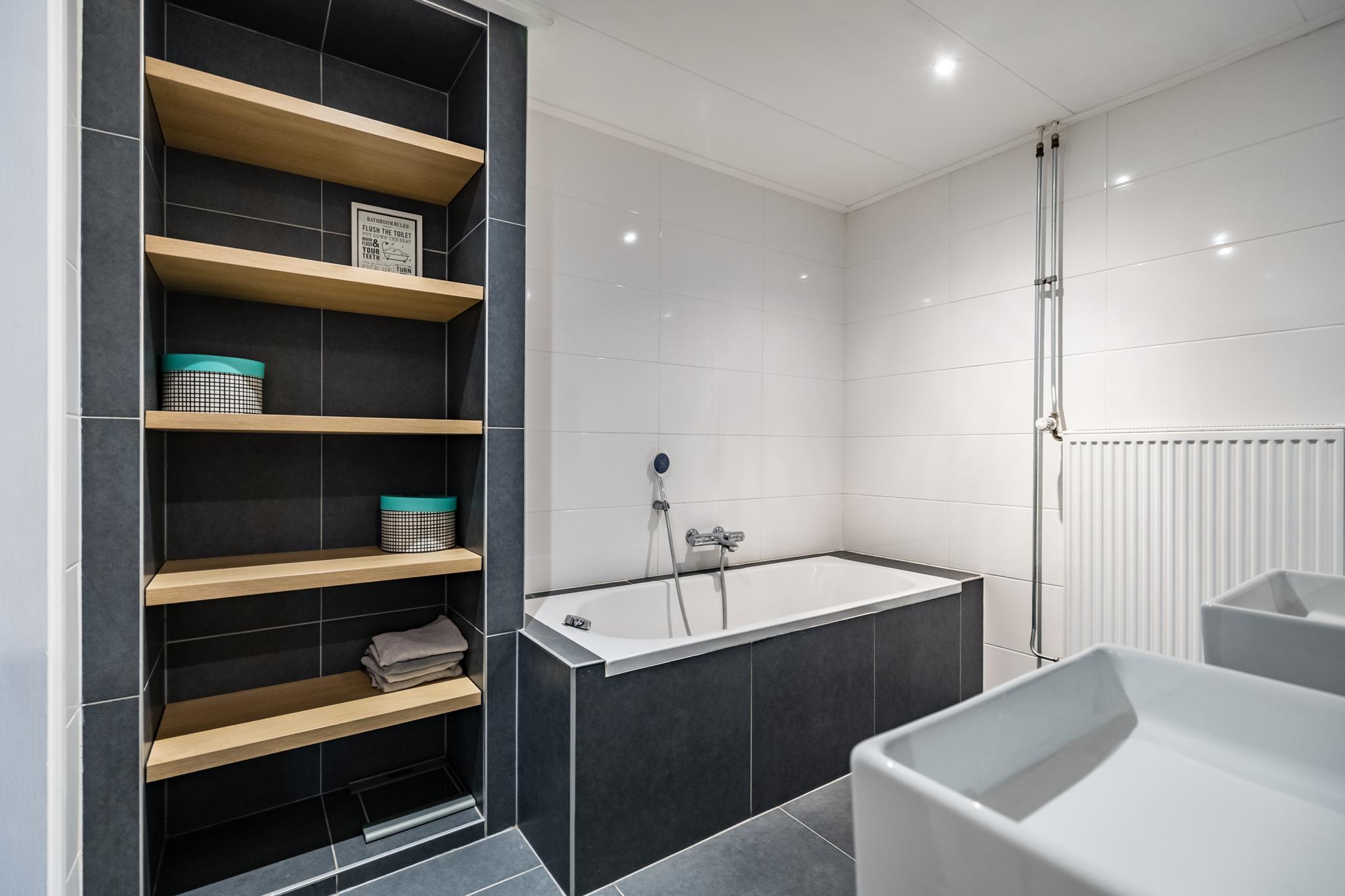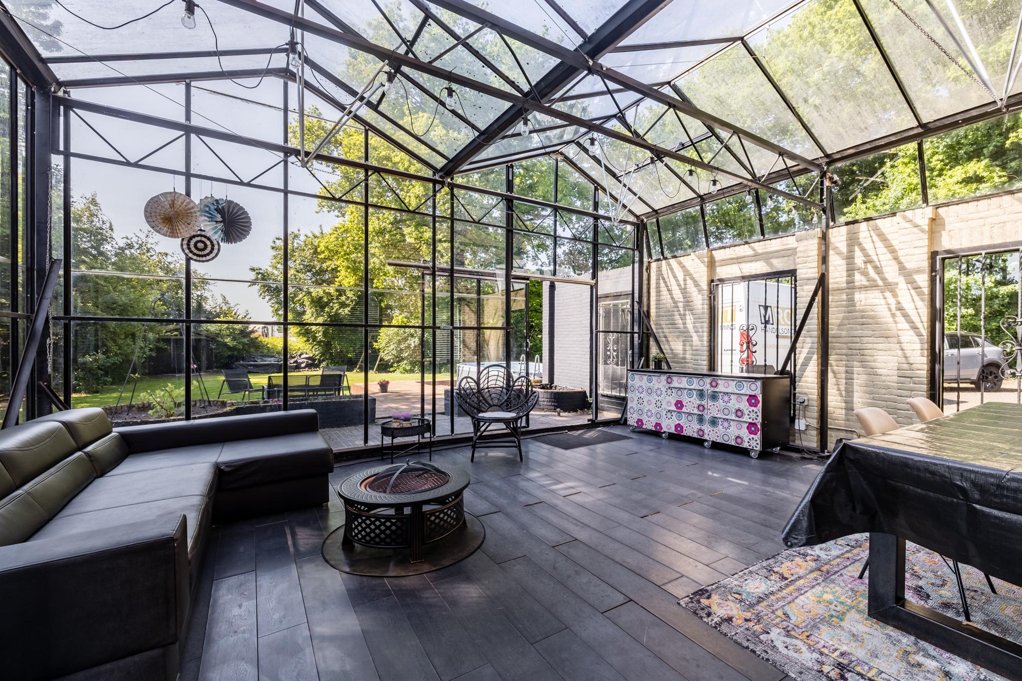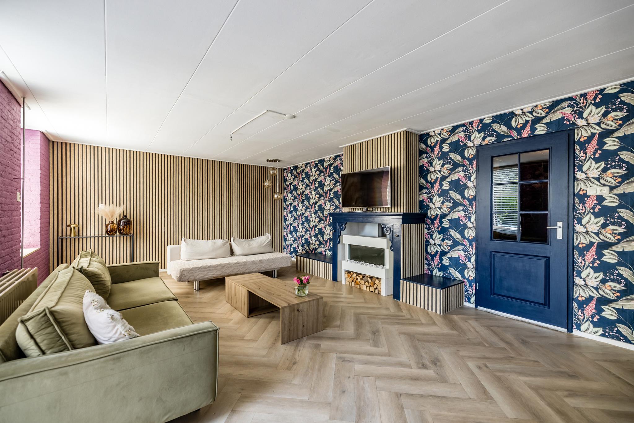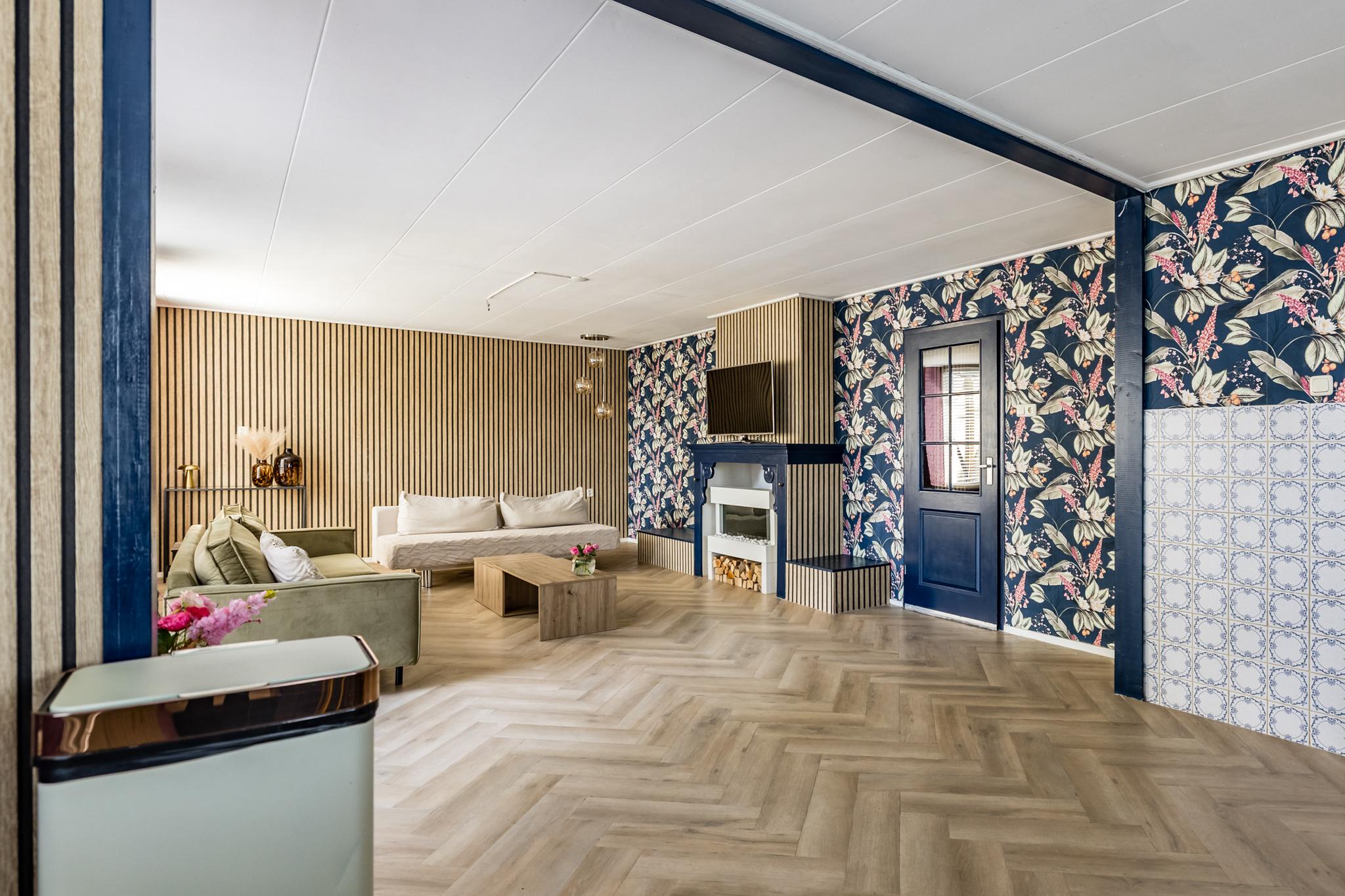 Royale hal voorzien van plavuizen, woonkamer met een fraaie visgraat gelegde pvc vloer en een elektrische haard en een gezellige en landelijk uitgevoerde open keuken in eiland opstelling met o.a. een 5 pits kookfornuis en een dubbele oven. Vanuit de woonkamer is toegang tot de heerlijke serre. Tevens zijn er nog 3 ruime slaapkamers aanwezig en een werkkamer, toilet, wasruimte en een badkamer met een dubbele wastafel, toilet, inloopdouche en een ligbad.