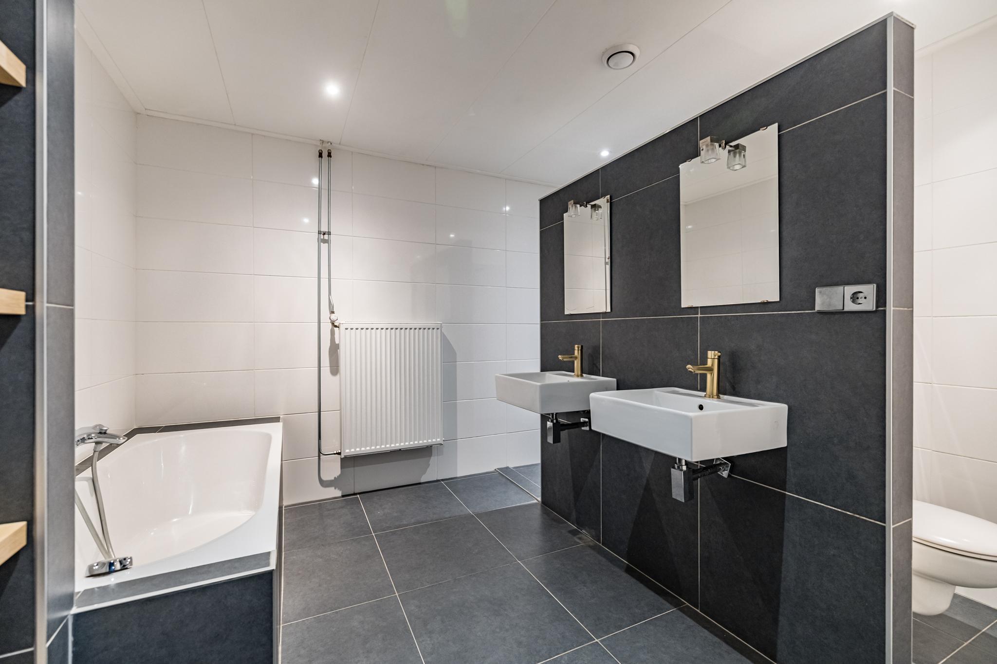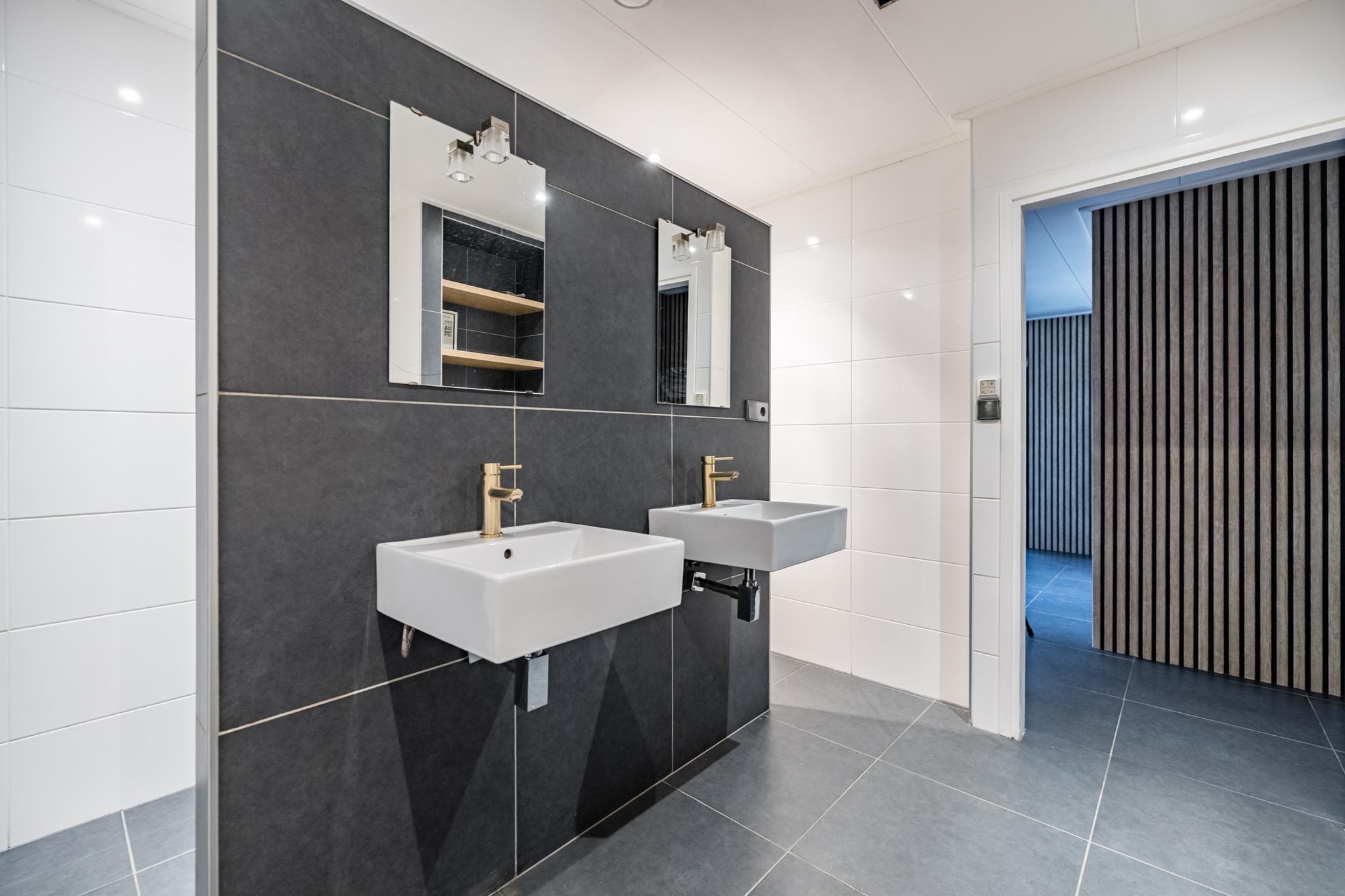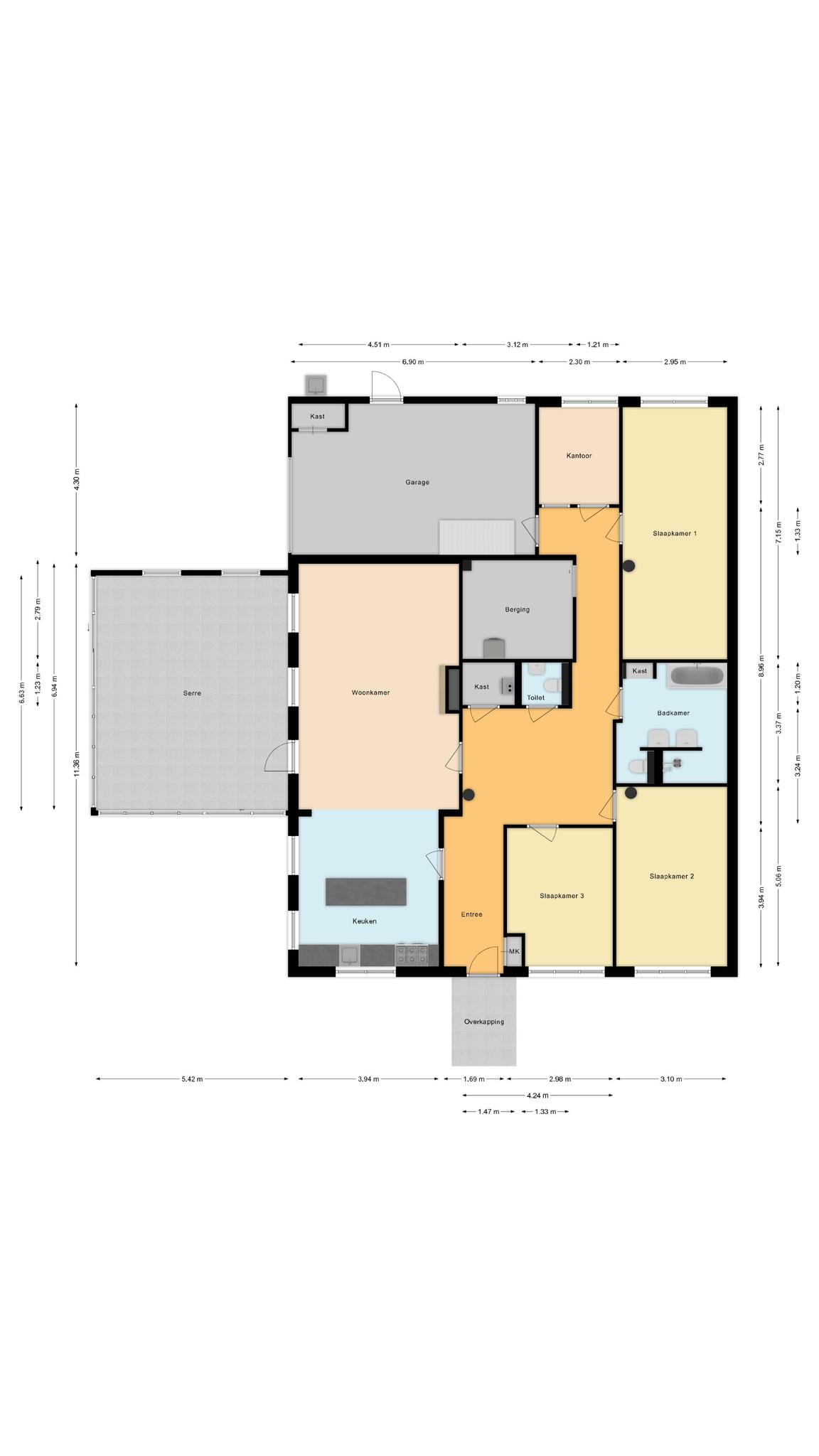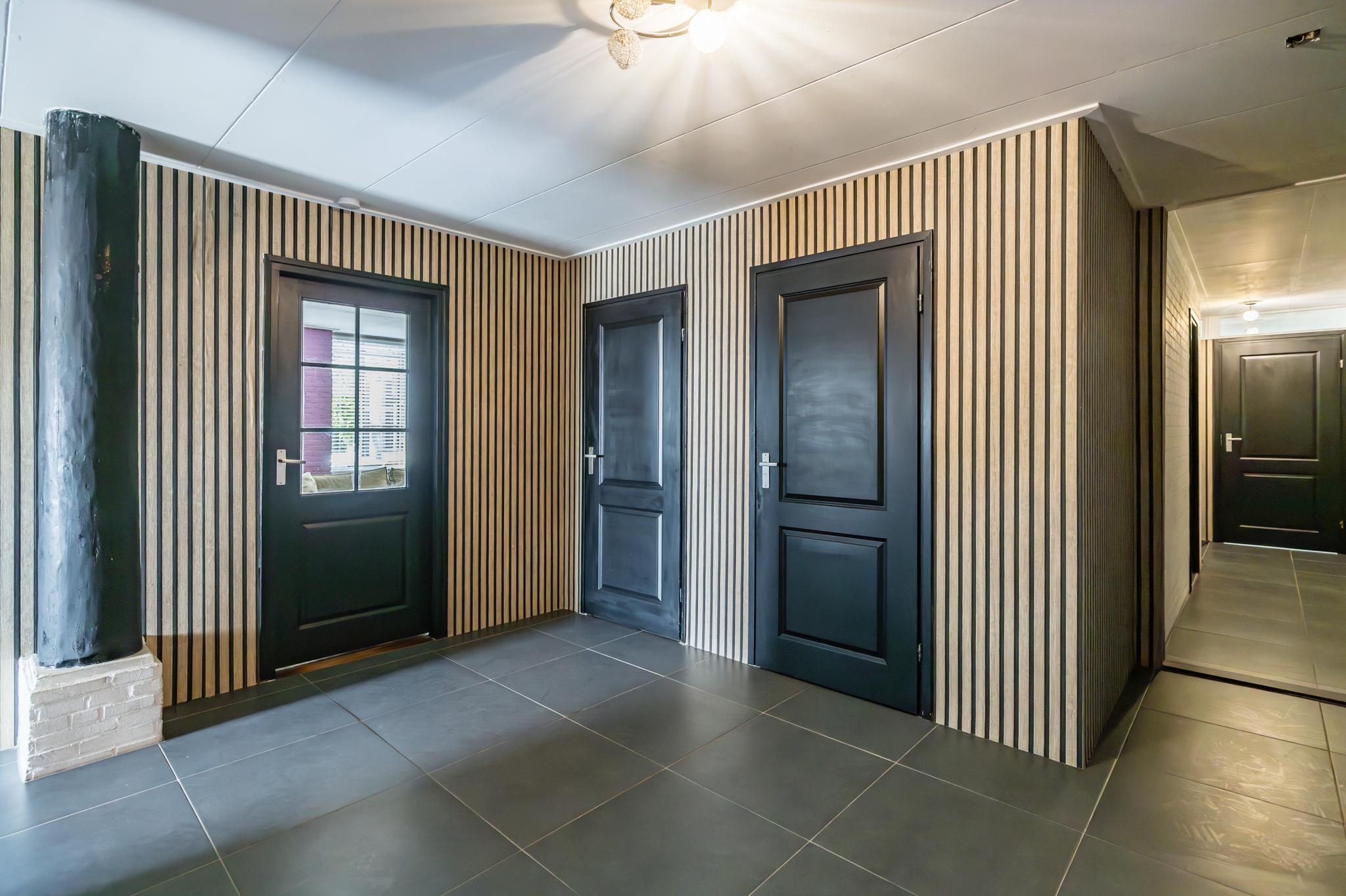 Royale hal voorzien van plavuizen, woonkamer met een fraaie visgraat gelegde pvc vloer en een elektrische haard en een gezellige en landelijk uitgevoerde open keuken in eiland opstelling met o.a. een 5 pits kookfornuis en een dubbele oven. Vanuit de woonkamer is toegang tot de heerlijke serre. Tevens zijn er nog 3 ruime slaapkamers aanwezig en een werkkamer, toilet, wasruimte en een badkamer met een dubbele wastafel, toilet, inloopdouche en een ligbad.