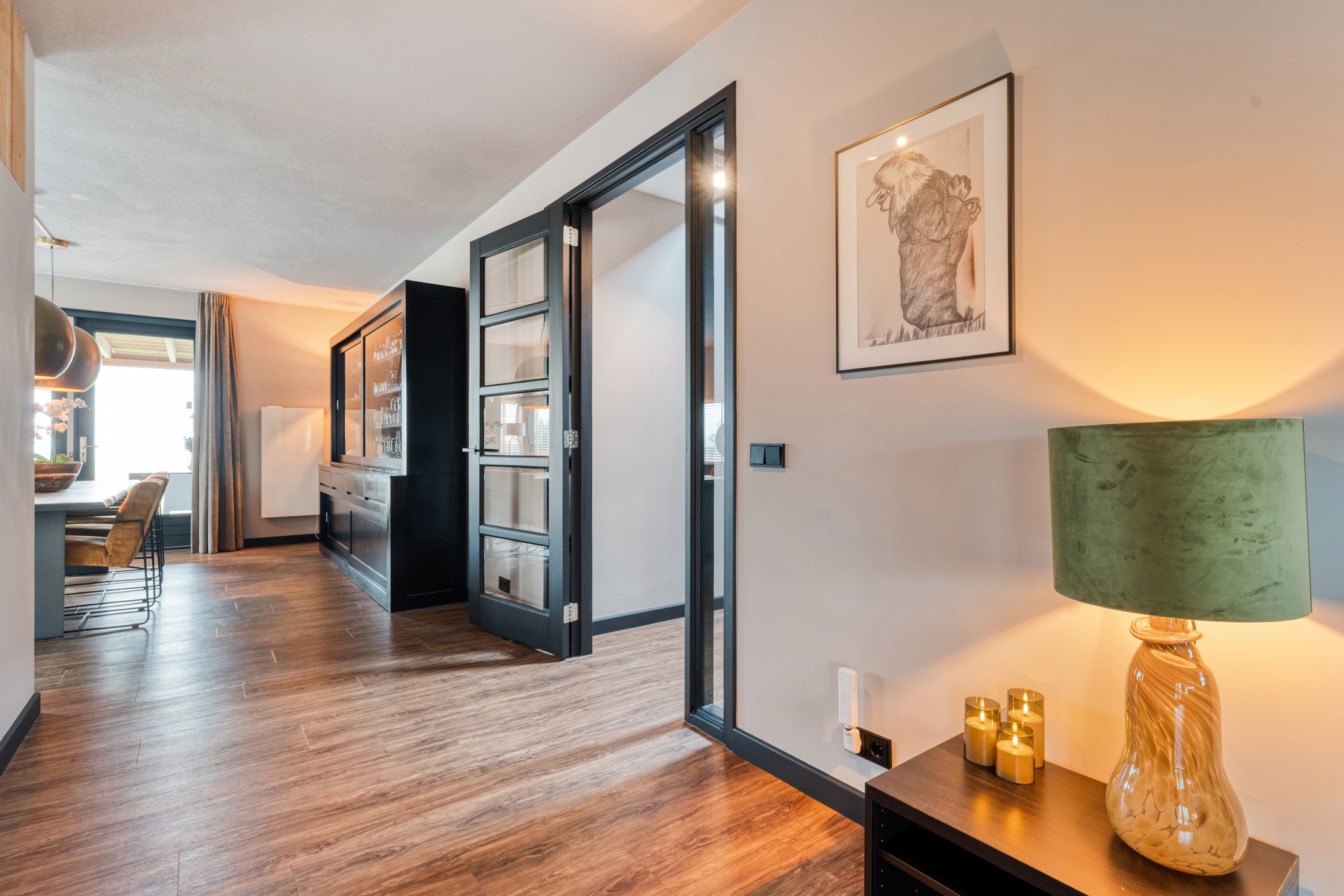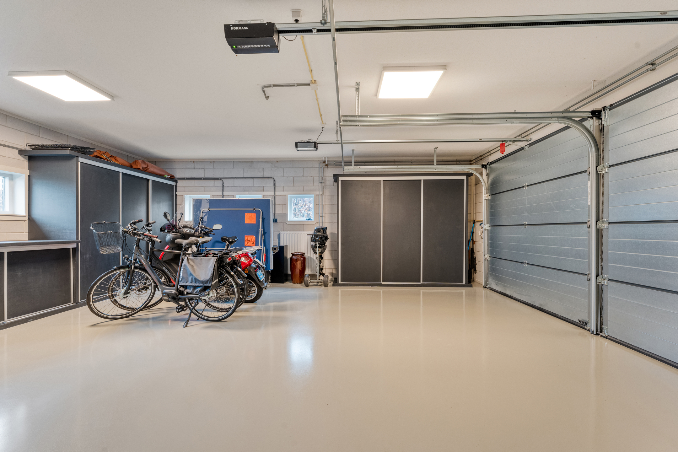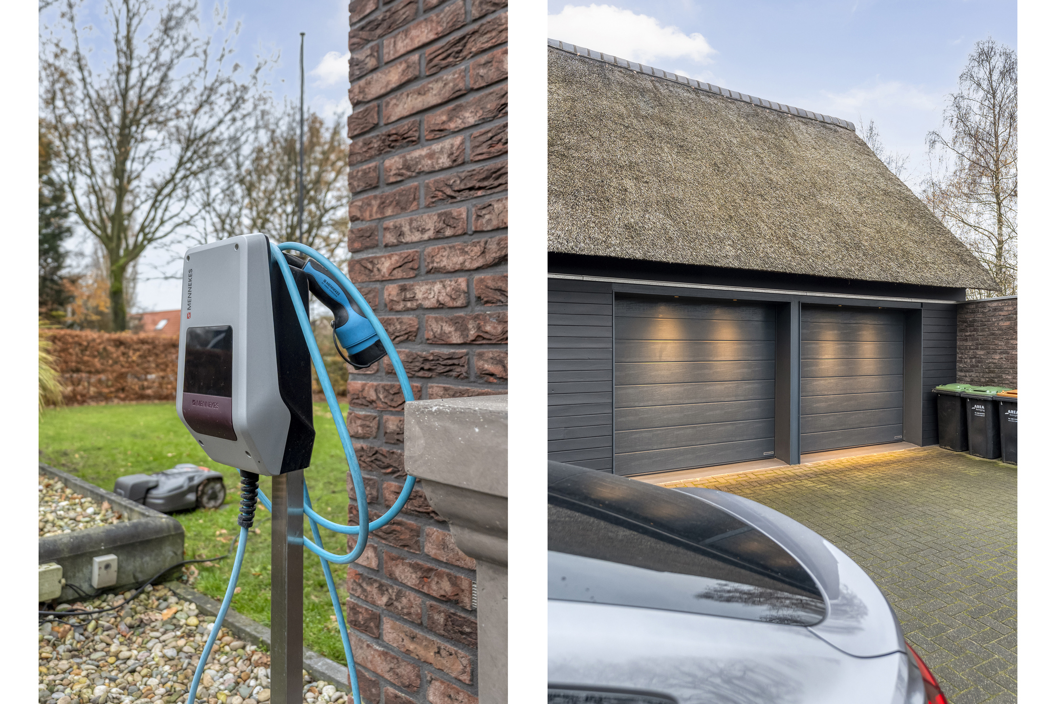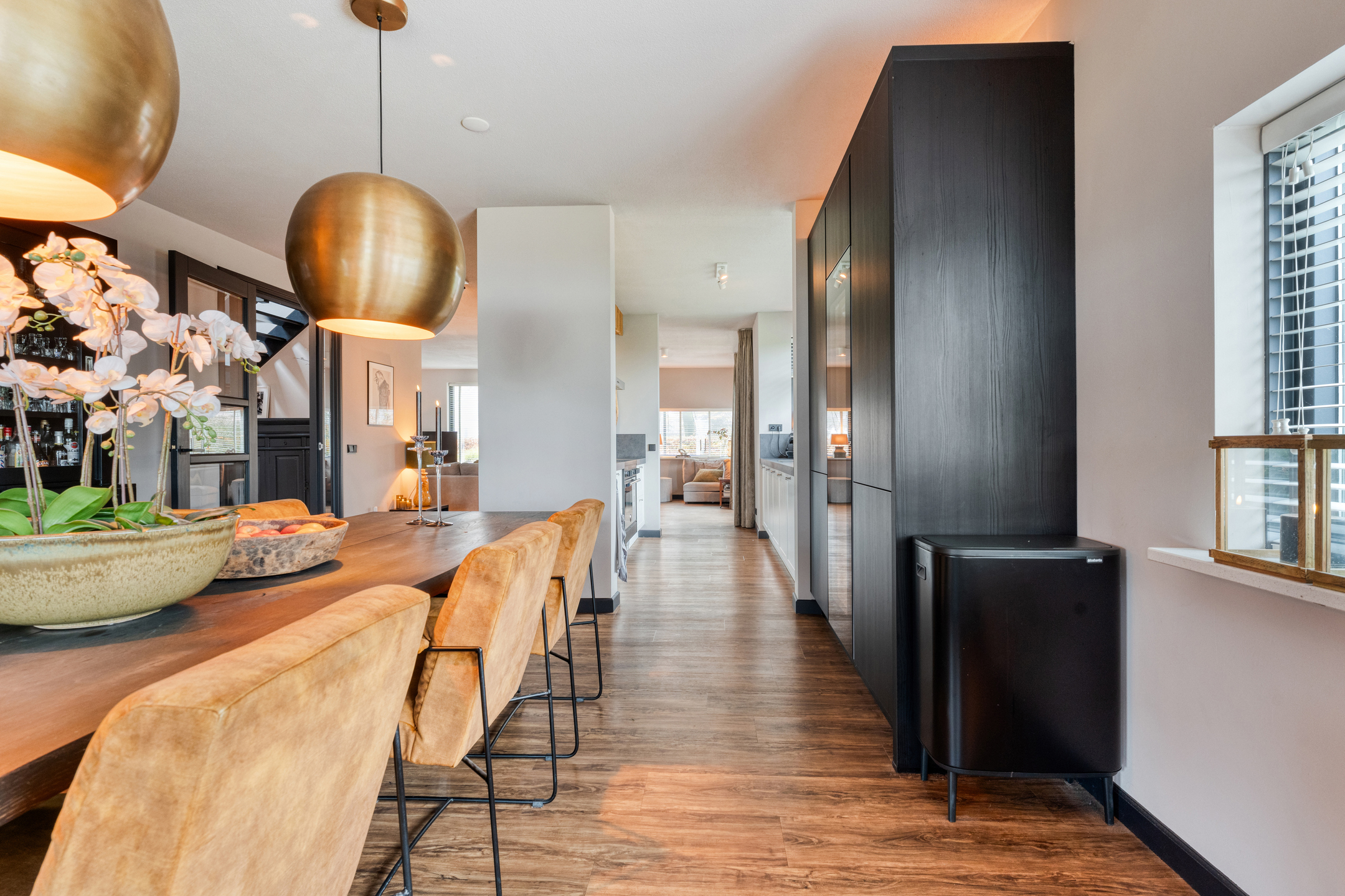 De statige entree straalt direct klasse en elegantie uit. De binnenkomst is ruim en licht, met trapopgang en vide en vormt een stijlvolle opmaat naar de rest van de woning. De sfeervolle woonkamer met houtkachel is een heerlijke plek om te verblijven. Dankzij de vele ramen en de openslaande deuren geniet u van een prachtige lichtinval en zicht op de tuin. Aangrenzend bevindt zich de luxueus uitgevoerde keuken, compleet met o.a.: een Quooker met gekoeld, bruisend én kokend water, 5-pits inductiekookplaat, grote oven, koelkast, vaatwasser, magnetron en een vaste kast met wijnkoeler (96 flessen). Hoogwaardige afwerking tot in detail. Een groot pluspunt is de ruime slaapkamer op de begane grond, met direct daarnaast de moderne en comfortabele badkamer met o.a. een royale inloopdouche, dubbele wastafel, ligbad en een toilet. Hiermee is de woning uitstekend geschikt voor zowel gezinnen als levensloopbestendig wonen. Daarnaast bevindt zich op de begane grond een luxe afgewerkte bijkeuken/wasruimte, voorzien van een keukenblok en boiler. De ruime garage is voorzien van dubbele elektrische deuren en een prachtige epoxy vloer (2025). Via een vaste trap bereikt u de royale zolderverdieping van de garage: momenteel in gebruik als werkkamer met airconditioning. Maar uitstekend geschikt voor extra slaapkamers, studioruimte of een thuiswerkplek.