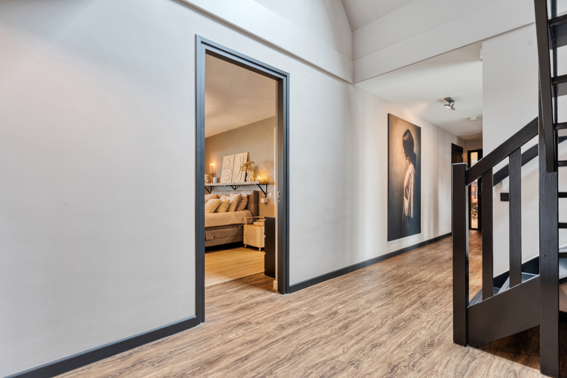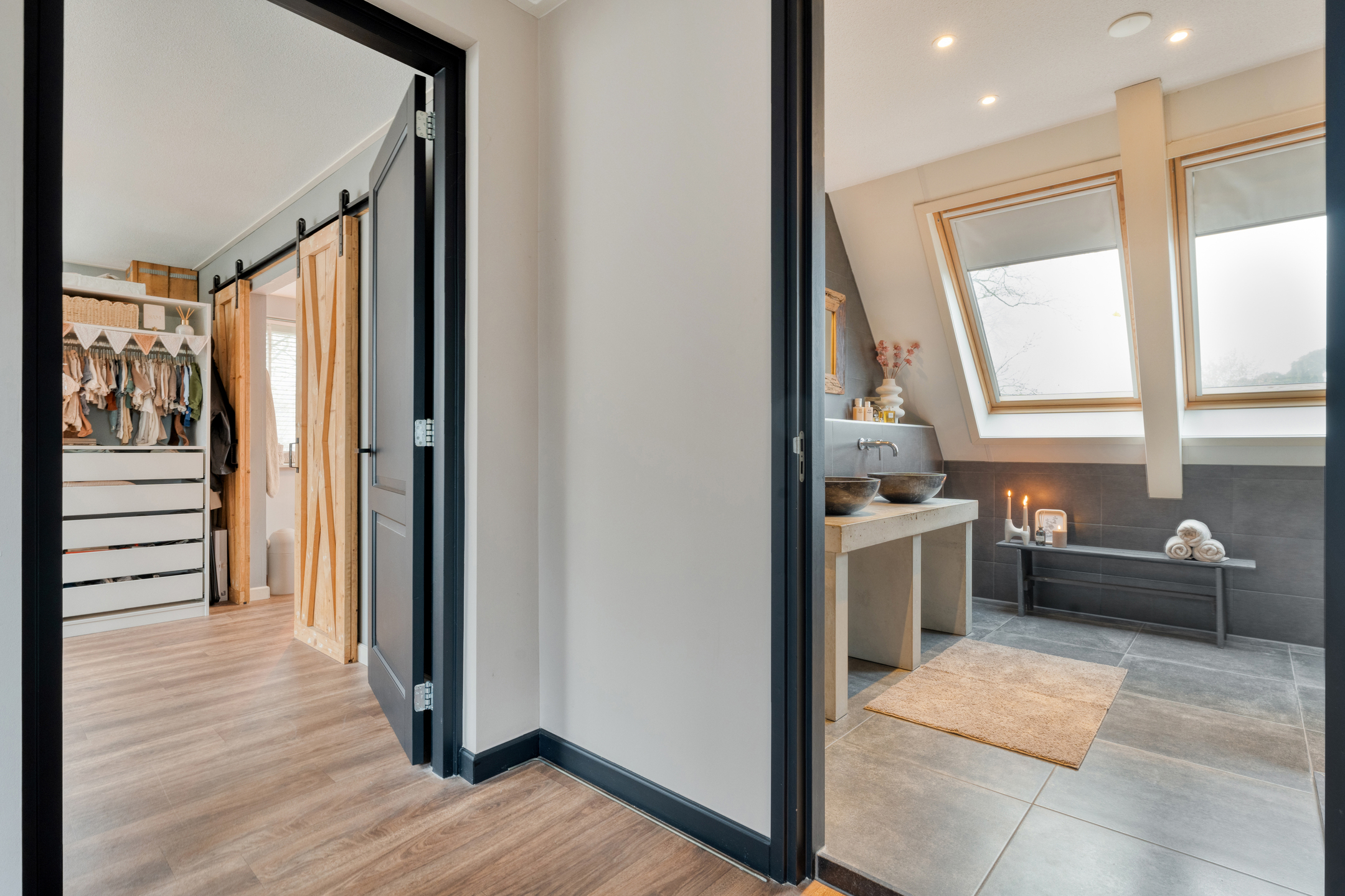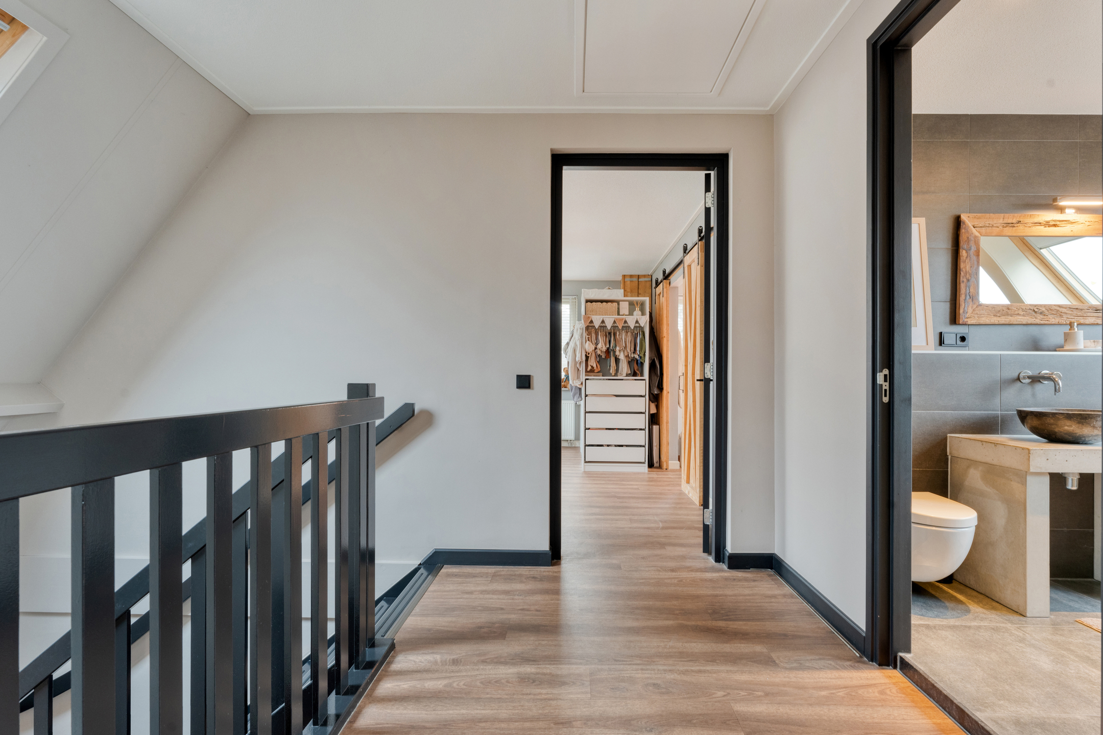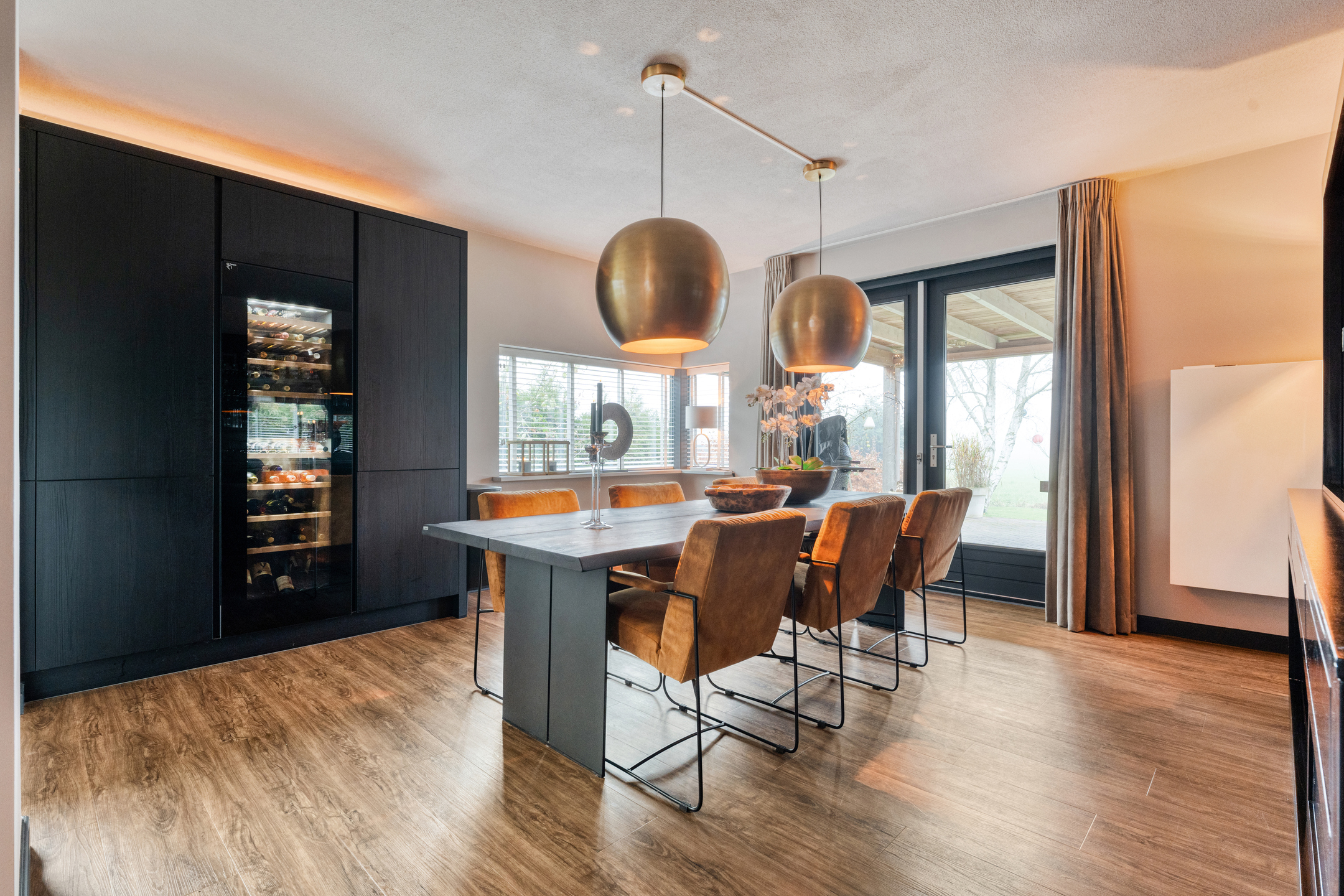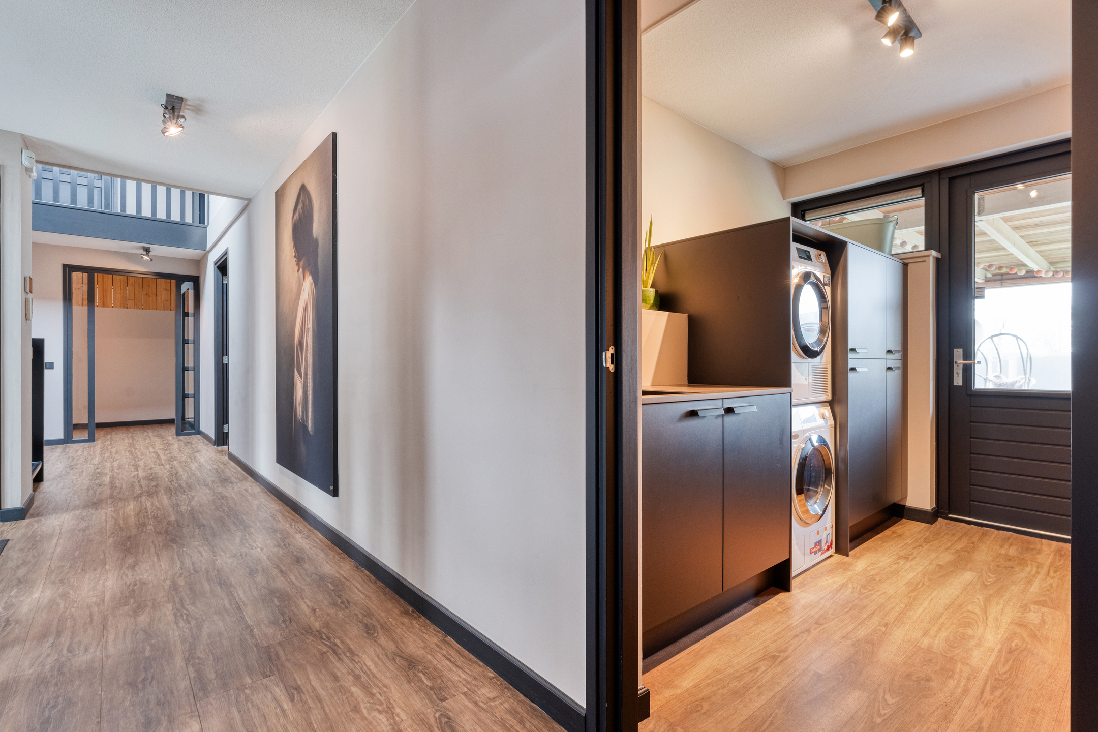 De statige entree straalt direct klasse en elegantie uit. De binnenkomst is ruim en licht, met trapopgang en vide en vormt een stijlvolle opmaat naar de rest van de woning. De sfeervolle woonkamer met houtkachel is een heerlijke plek om te verblijven. Dankzij de vele ramen en de openslaande deuren geniet u van een prachtige lichtinval en zicht op de tuin. Aangrenzend bevindt zich de luxueus uitgevoerde keuken, compleet met o.a.: een Quooker met gekoeld, bruisend én kokend water, 5-pits inductiekookplaat, grote oven, koelkast, vaatwasser, magnetron en een vaste kast met wijnkoeler (96 flessen). Hoogwaardige afwerking tot in detail. Een groot pluspunt is de ruime slaapkamer op de begane grond, met direct daarnaast de moderne en comfortabele badkamer met o.a. een royale inloopdouche, dubbele wastafel, ligbad en een toilet. Hiermee is de woning uitstekend geschikt voor zowel gezinnen als levensloopbestendig wonen. Daarnaast bevindt zich op de begane grond een luxe afgewerkte bijkeuken/wasruimte, voorzien van een keukenblok en boiler. De ruime garage is voorzien van dubbele elektrische deuren en een prachtige epoxy vloer (2025). Via een vaste trap bereikt u de royale zolderverdieping van de garage: momenteel in gebruik als werkkamer met airconditioning. Maar uitstekend geschikt voor extra slaapkamers, studioruimte of een thuiswerkplek.