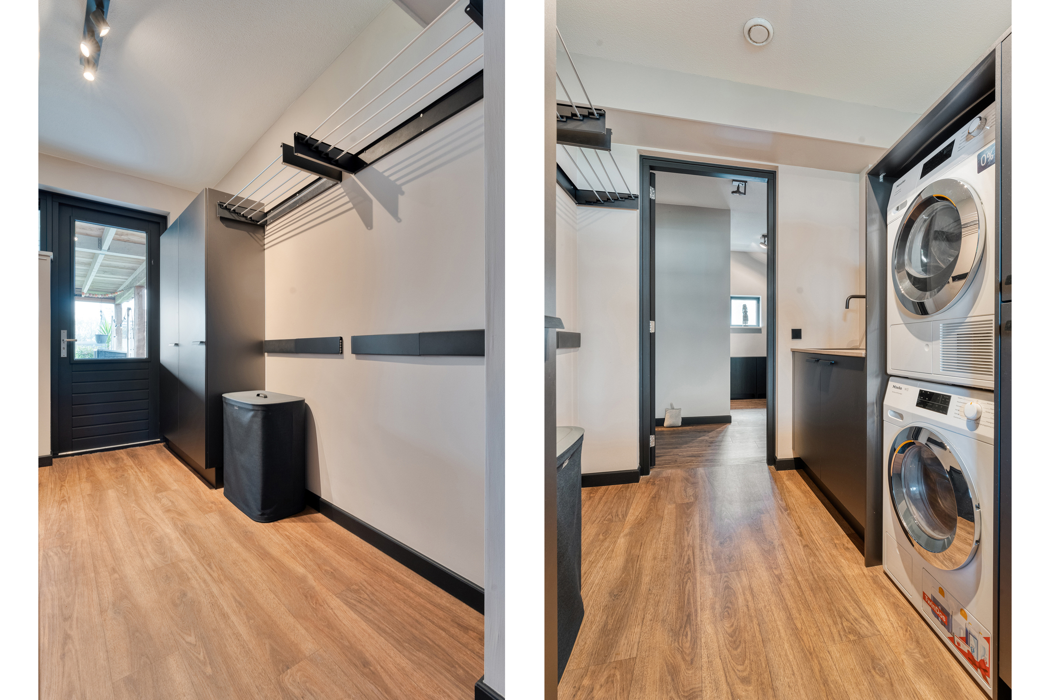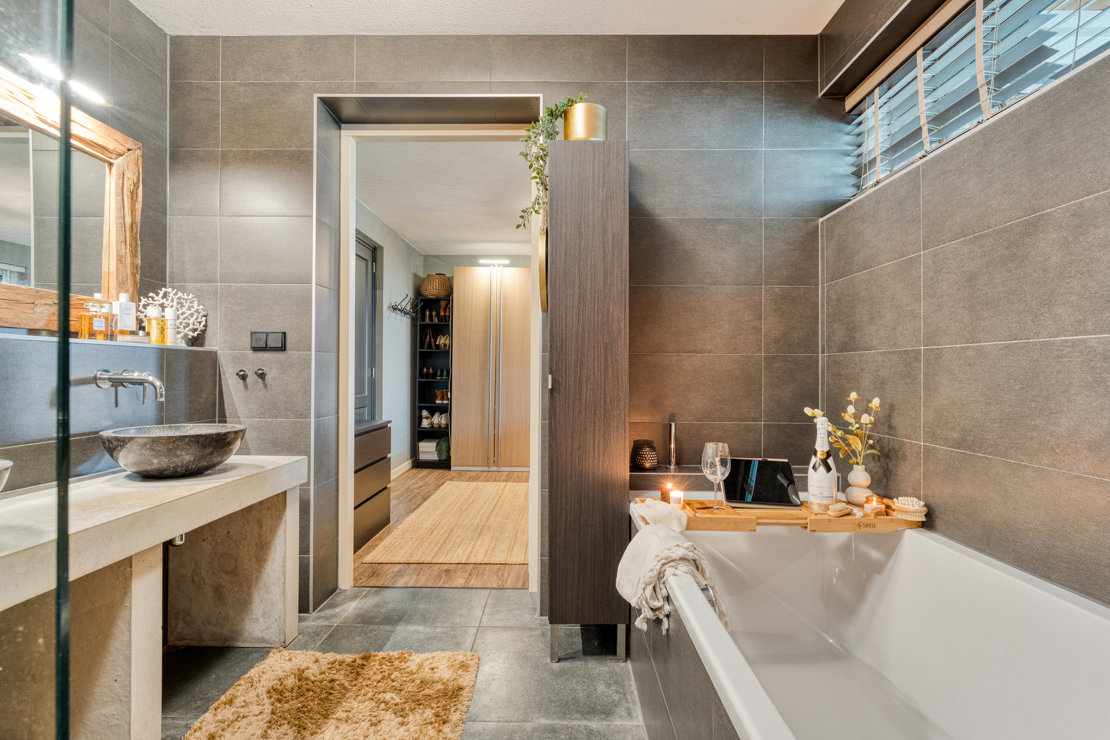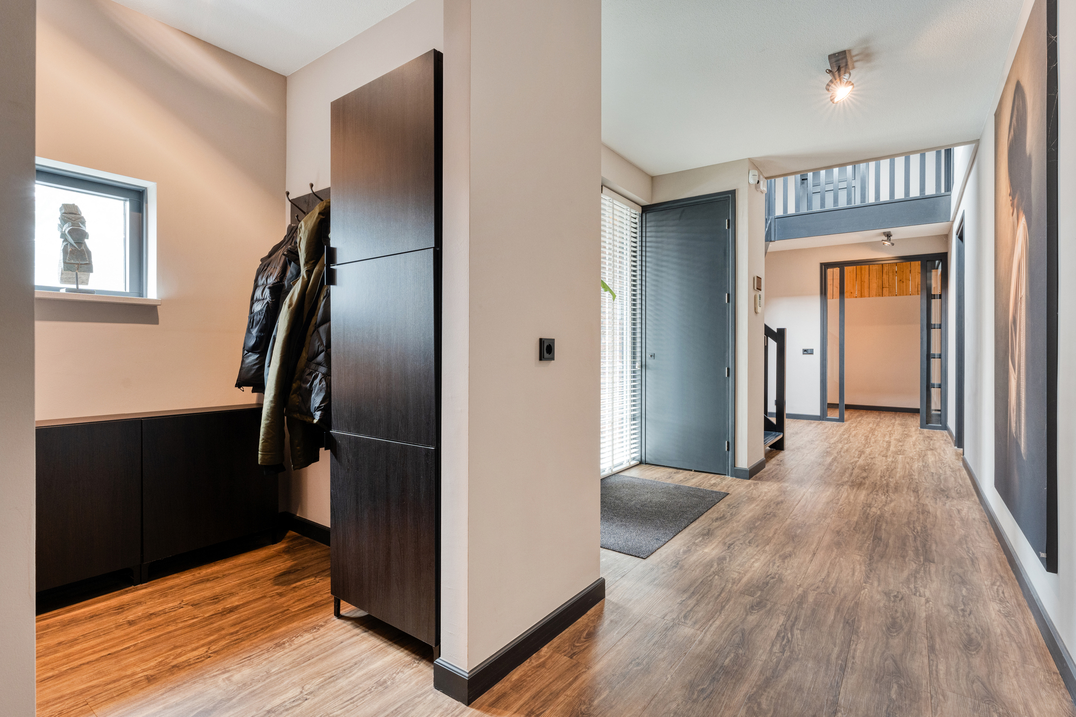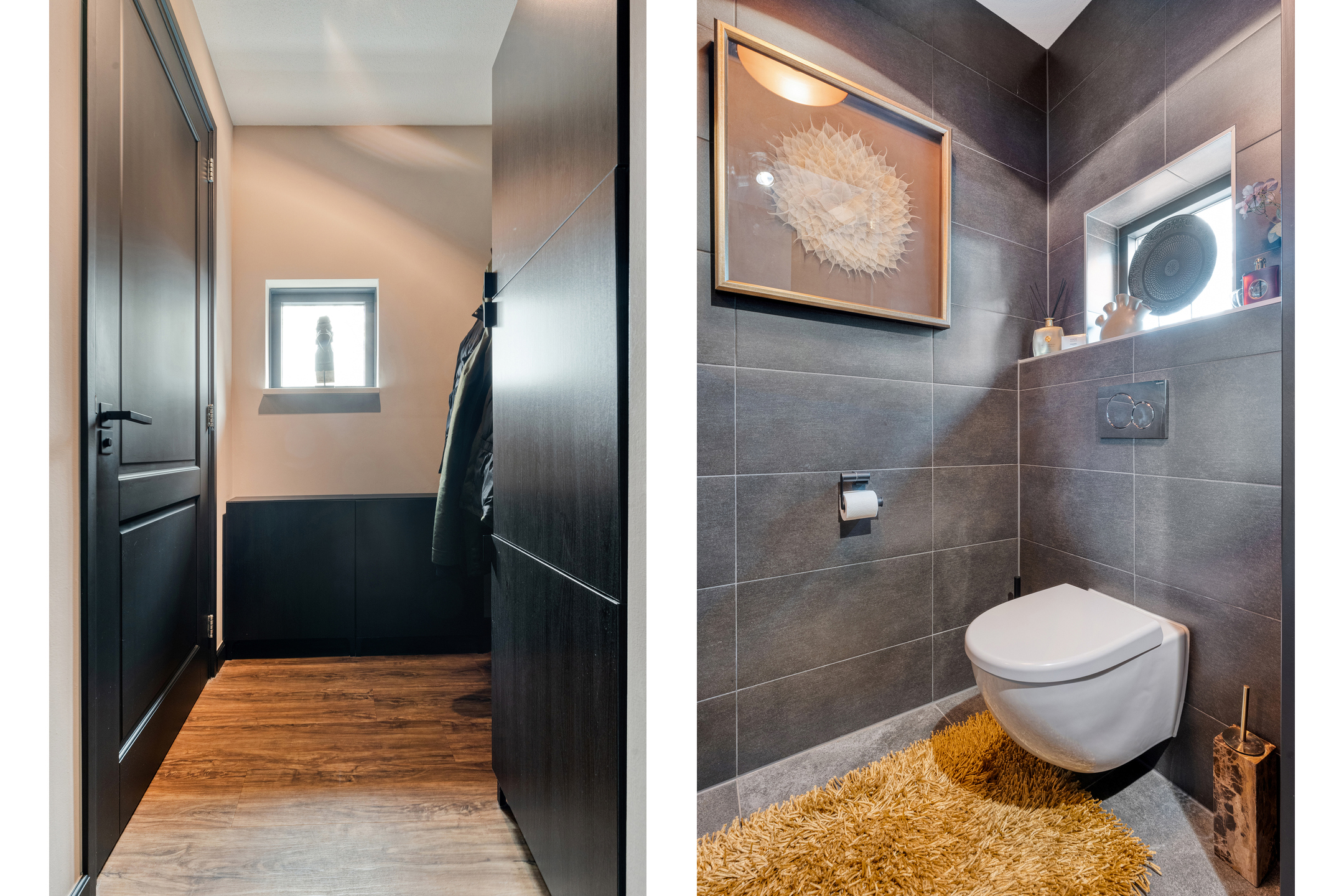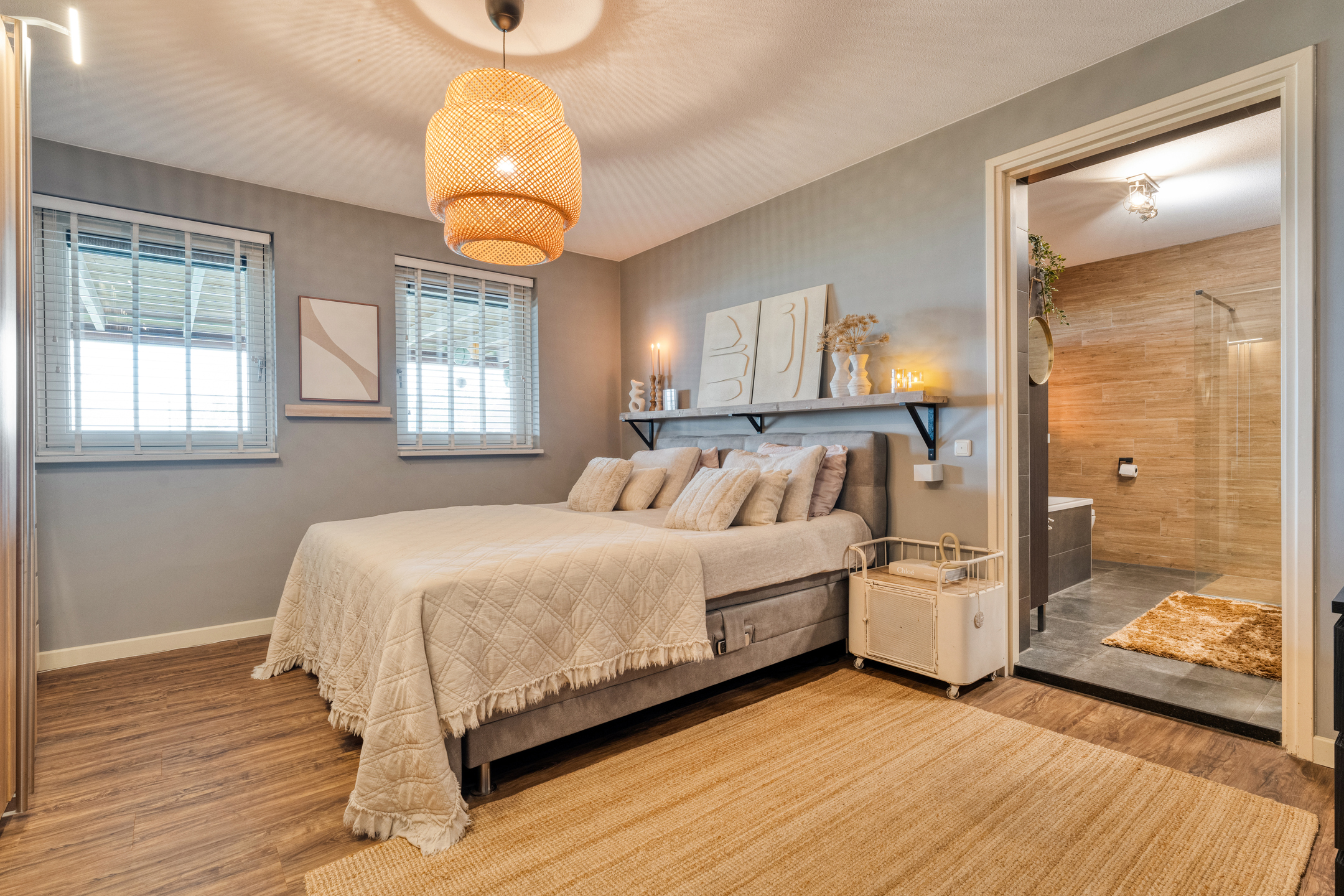 De statige entree straalt direct klasse en elegantie uit. De binnenkomst is ruim en licht, met trapopgang en vide en vormt een stijlvolle opmaat naar de rest van de woning. De sfeervolle woonkamer met houtkachel is een heerlijke plek om te verblijven. Dankzij de vele ramen en de openslaande deuren geniet u van een prachtige lichtinval en zicht op de tuin. Aangrenzend bevindt zich de luxueus uitgevoerde keuken, compleet met o.a.: een Quooker met gekoeld, bruisend én kokend water, 5-pits inductiekookplaat, grote oven, koelkast, vaatwasser, magnetron en een vaste kast met wijnkoeler (96 flessen). Hoogwaardige afwerking tot in detail. Een groot pluspunt is de ruime slaapkamer op de begane grond, met direct daarnaast de moderne en comfortabele badkamer met o.a. een royale inloopdouche, dubbele wastafel, ligbad en een toilet. Hiermee is de woning uitstekend geschikt voor zowel gezinnen als levensloopbestendig wonen. Daarnaast bevindt zich op de begane grond een luxe afgewerkte bijkeuken/wasruimte, voorzien van een keukenblok en boiler. De ruime garage is voorzien van dubbele elektrische deuren en een prachtige epoxy vloer (2025). Via een vaste trap bereikt u de royale zolderverdieping van de garage: momenteel in gebruik als werkkamer met airconditioning. Maar uitstekend geschikt voor extra slaapkamers, studioruimte of een thuiswerkplek.