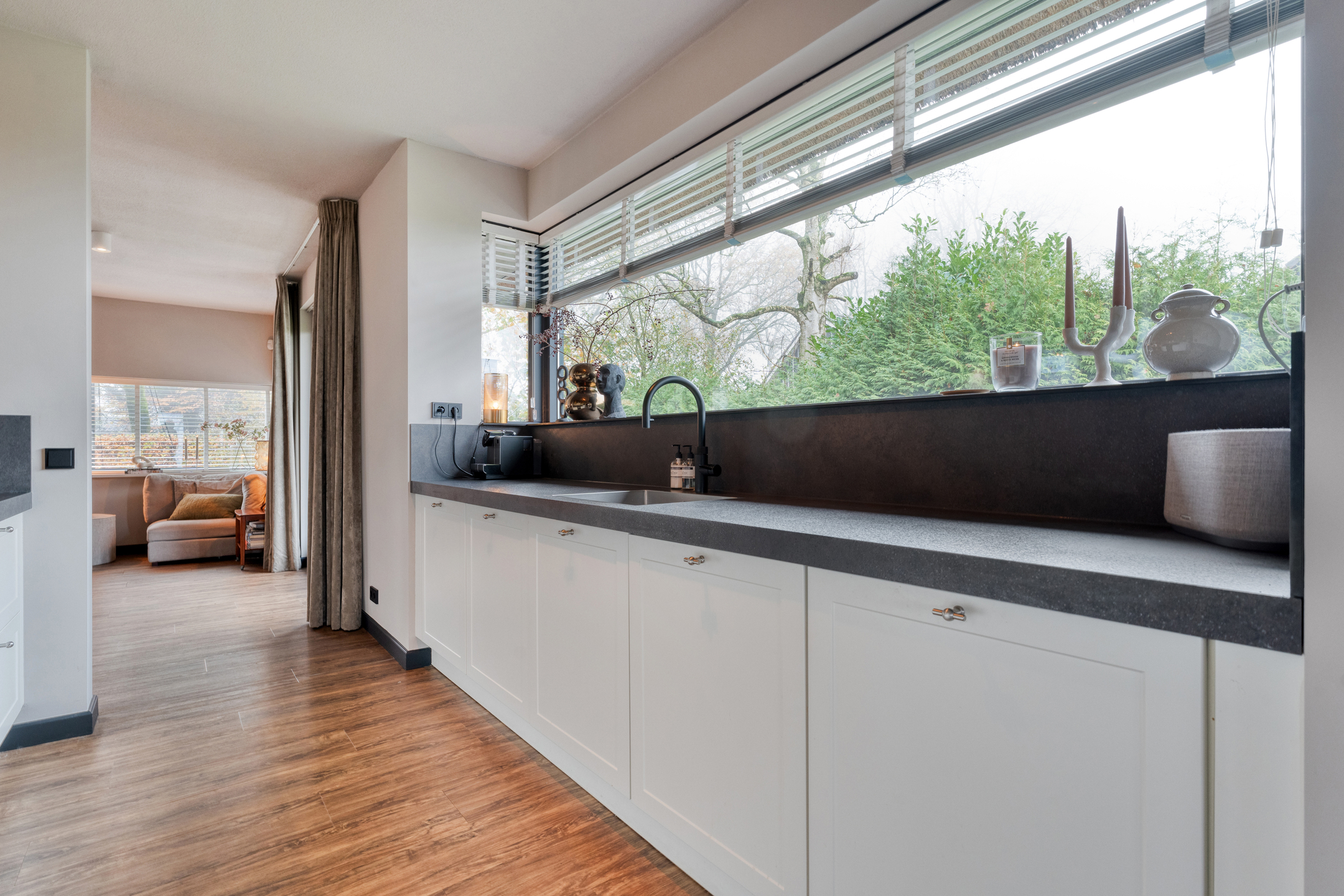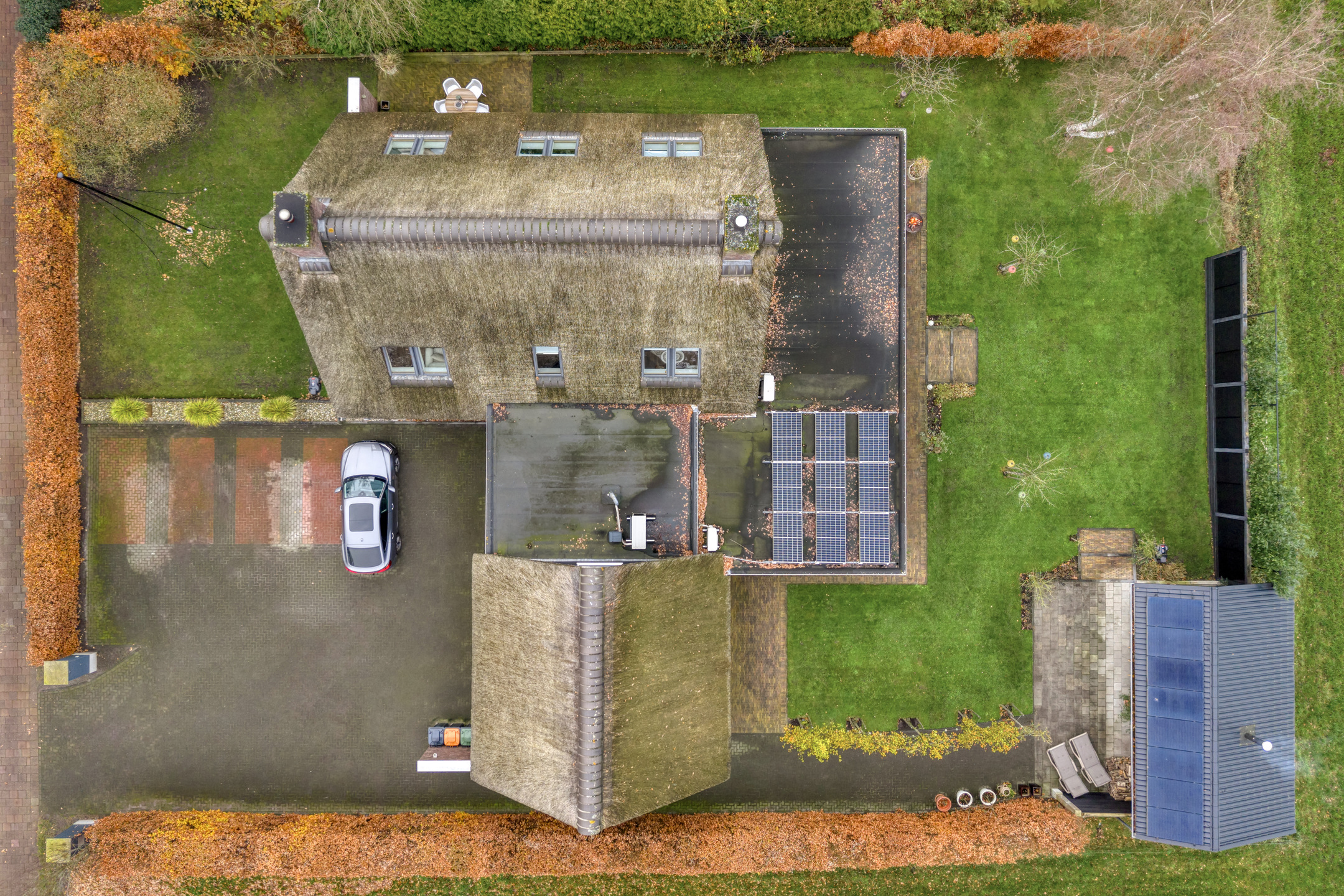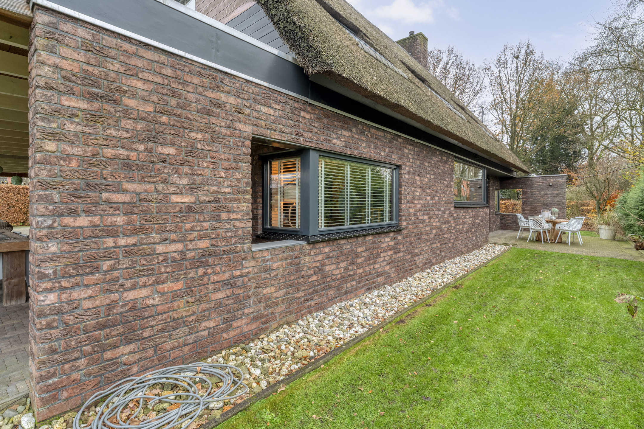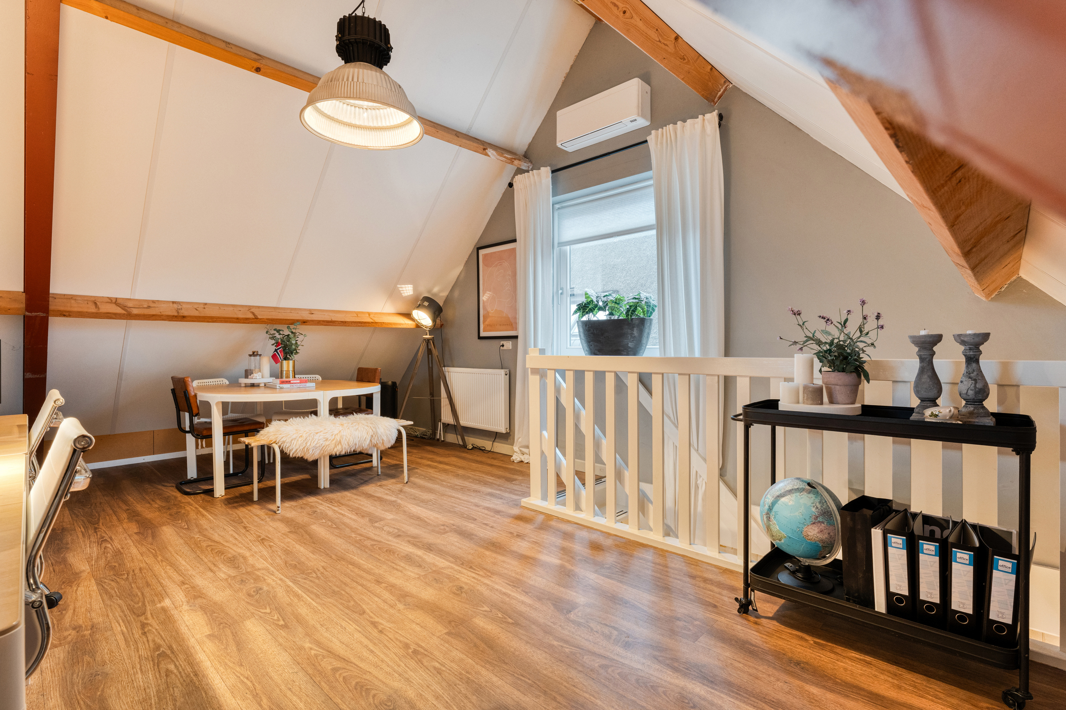 De statige entree straalt direct klasse en elegantie uit. De binnenkomst is ruim en licht, met trapopgang en vide en vormt een stijlvolle opmaat naar de rest van de woning. De sfeervolle woonkamer met houtkachel is een heerlijke plek om te verblijven. Dankzij de vele ramen en de openslaande deuren geniet u van een prachtige lichtinval en zicht op de tuin. Aangrenzend bevindt zich de luxueus uitgevoerde keuken, compleet met o.a.: een Quooker met gekoeld, bruisend én kokend water, 5-pits inductiekookplaat, grote oven, koelkast, vaatwasser, magnetron en een vaste kast met wijnkoeler (96 flessen). Hoogwaardige afwerking tot in detail. Een groot pluspunt is de ruime slaapkamer op de begane grond, met direct daarnaast de moderne en comfortabele badkamer met o.a. een royale inloopdouche, dubbele wastafel, ligbad en een toilet. Hiermee is de woning uitstekend geschikt voor zowel gezinnen als levensloopbestendig wonen. Daarnaast bevindt zich op de begane grond een luxe afgewerkte bijkeuken/wasruimte, voorzien van een keukenblok en boiler. De ruime garage is voorzien van dubbele elektrische deuren en een prachtige epoxy vloer (2025). Via een vaste trap bereikt u de royale zolderverdieping van de garage: momenteel in gebruik als werkkamer met airconditioning. Maar uitstekend geschikt voor extra slaapkamers, studioruimte of een thuiswerkplek.