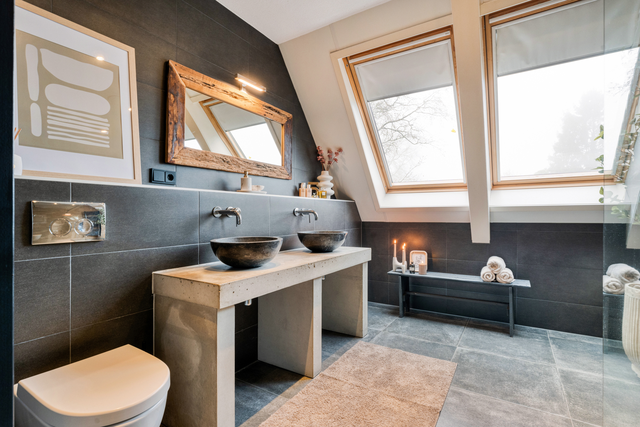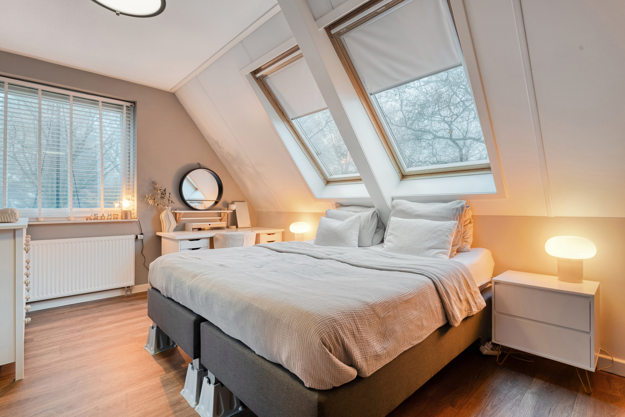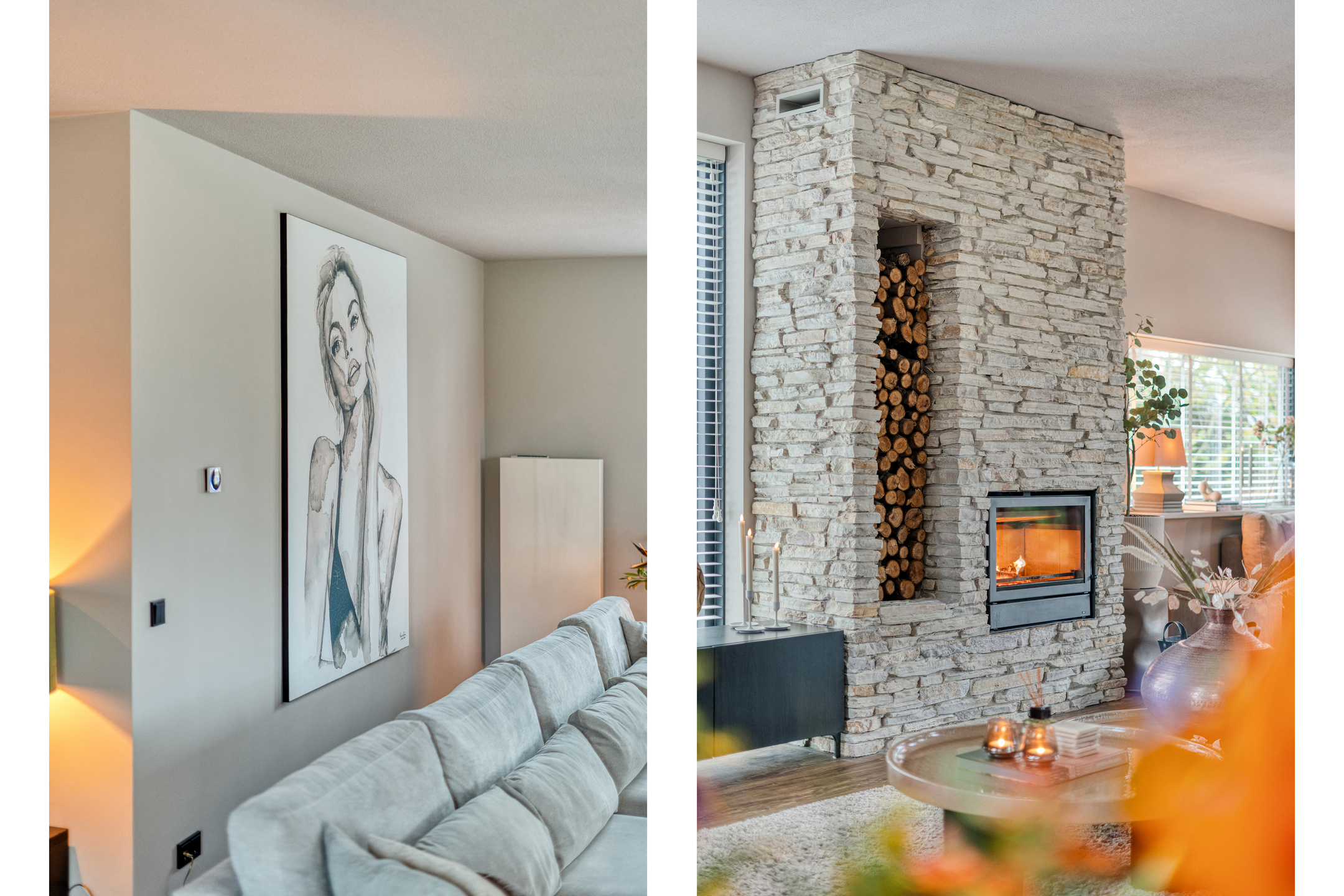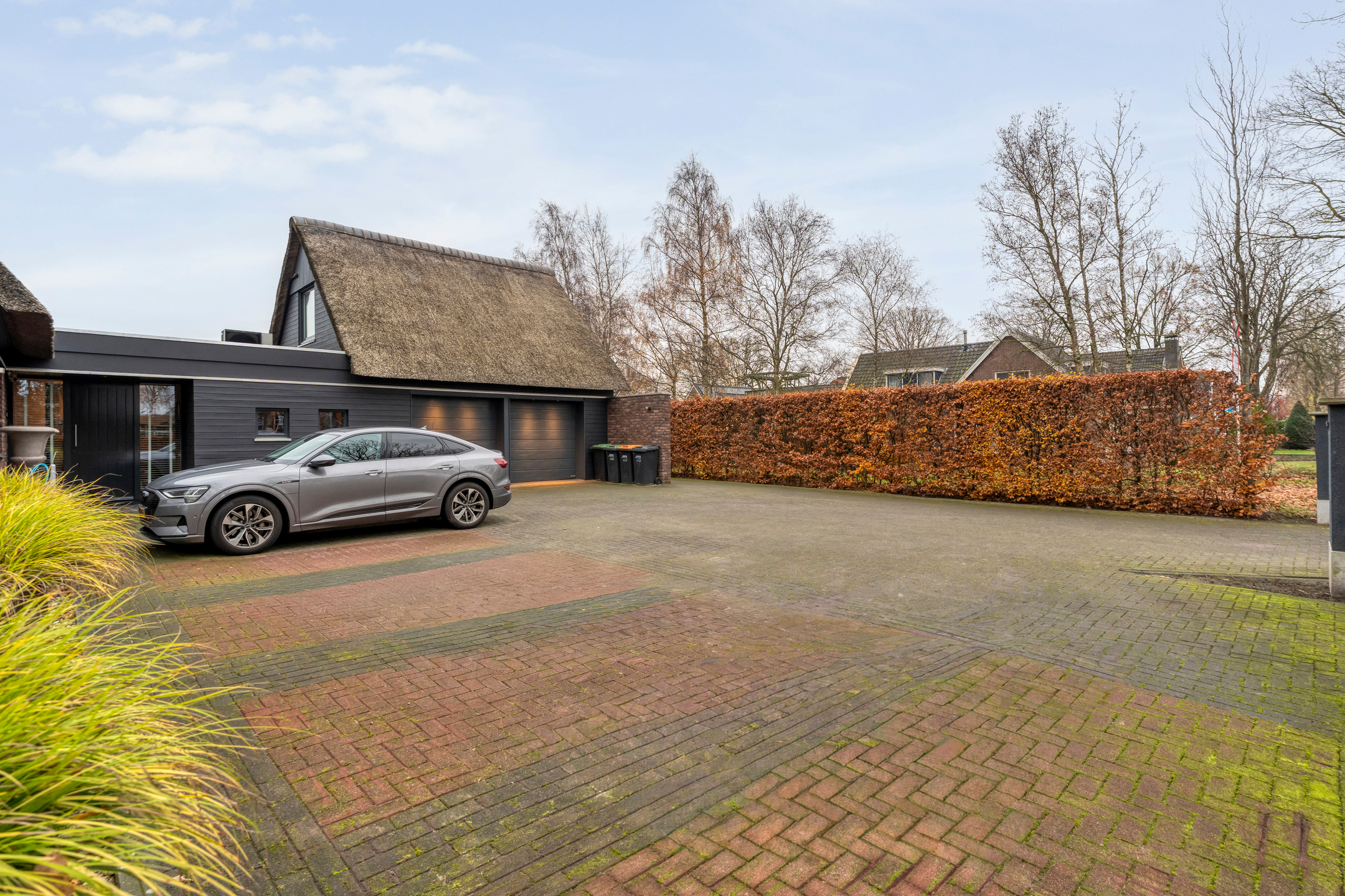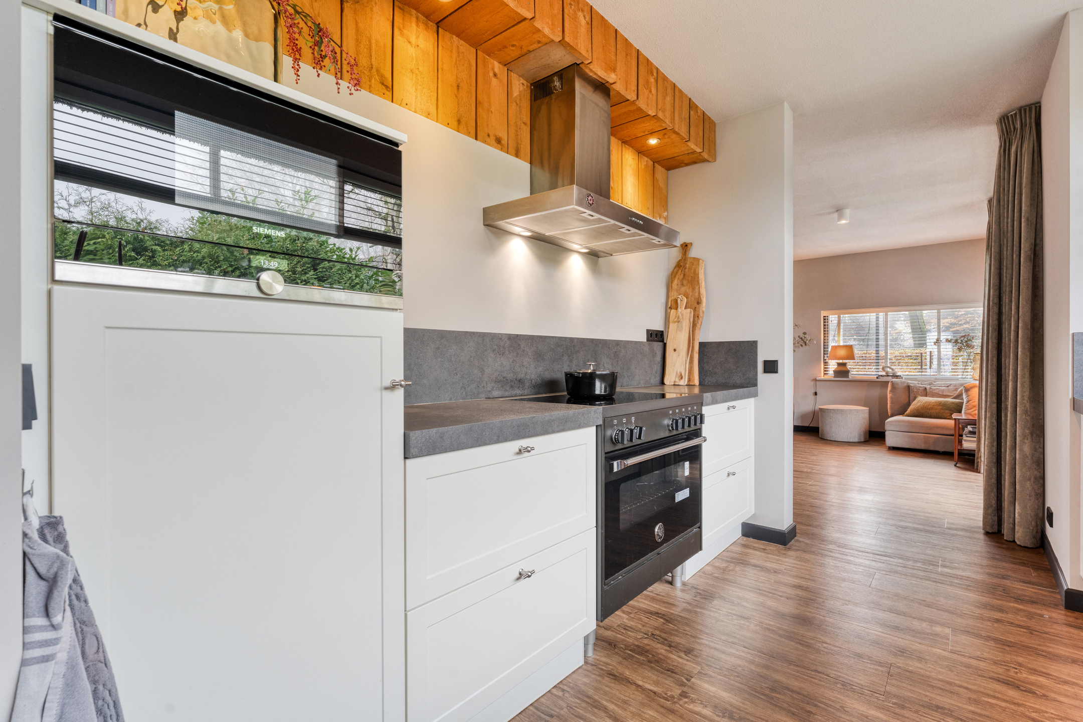 De statige entree straalt direct klasse en elegantie uit. De binnenkomst is ruim en licht, met trapopgang en vide en vormt een stijlvolle opmaat naar de rest van de woning. De sfeervolle woonkamer met houtkachel is een heerlijke plek om te verblijven. Dankzij de vele ramen en de openslaande deuren geniet u van een prachtige lichtinval en zicht op de tuin. Aangrenzend bevindt zich de luxueus uitgevoerde keuken, compleet met o.a.: een Quooker met gekoeld, bruisend én kokend water, 5-pits inductiekookplaat, grote oven, koelkast, vaatwasser, magnetron en een vaste kast met wijnkoeler (96 flessen). Hoogwaardige afwerking tot in detail. Een groot pluspunt is de ruime slaapkamer op de begane grond, met direct daarnaast de moderne en comfortabele badkamer met o.a. een royale inloopdouche, dubbele wastafel, ligbad en een toilet. Hiermee is de woning uitstekend geschikt voor zowel gezinnen als levensloopbestendig wonen. Daarnaast bevindt zich op de begane grond een luxe afgewerkte bijkeuken/wasruimte, voorzien van een keukenblok en boiler. De ruime garage is voorzien van dubbele elektrische deuren en een prachtige epoxy vloer (2025). Via een vaste trap bereikt u de royale zolderverdieping van de garage: momenteel in gebruik als werkkamer met airconditioning. Maar uitstekend geschikt voor extra slaapkamers, studioruimte of een thuiswerkplek.