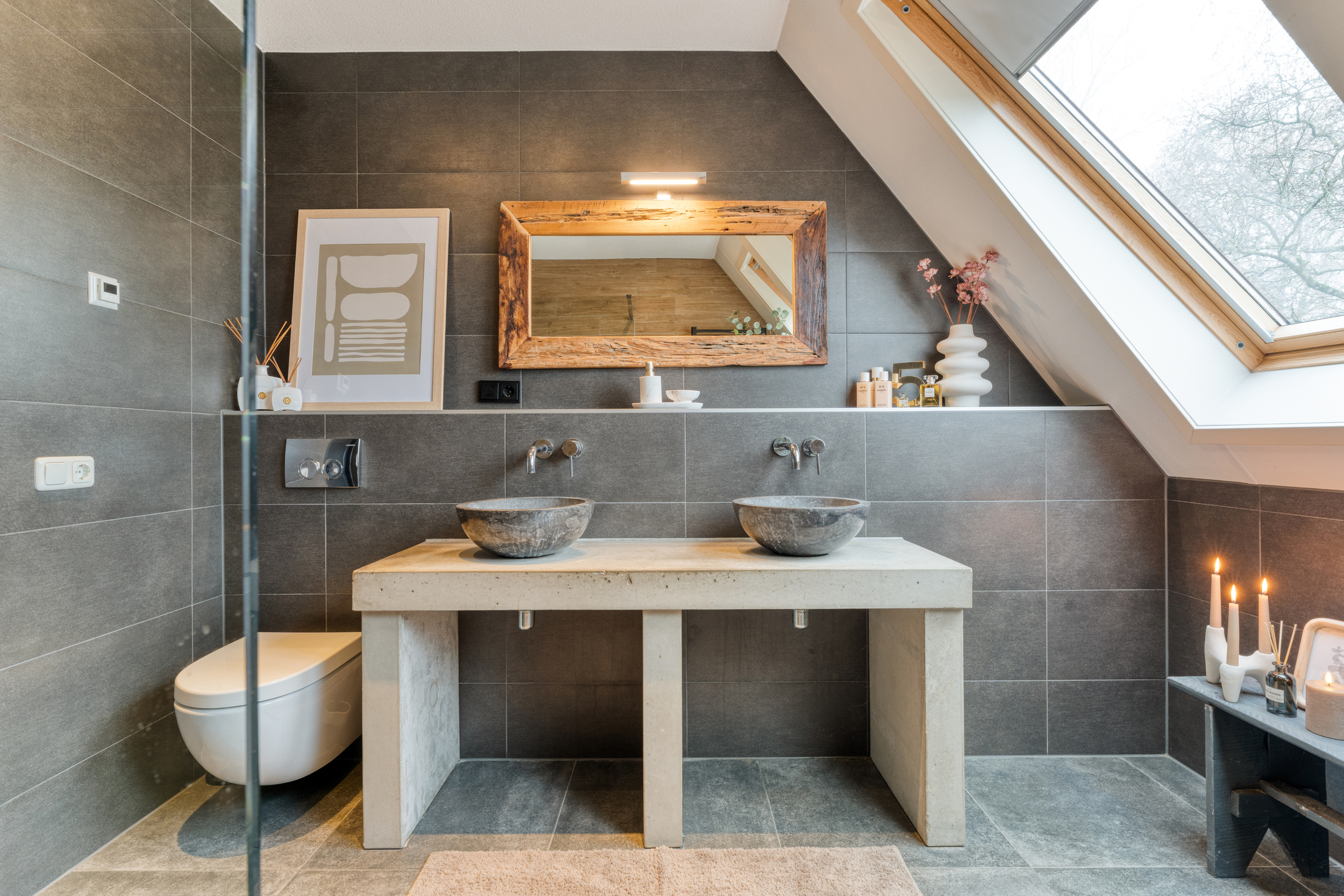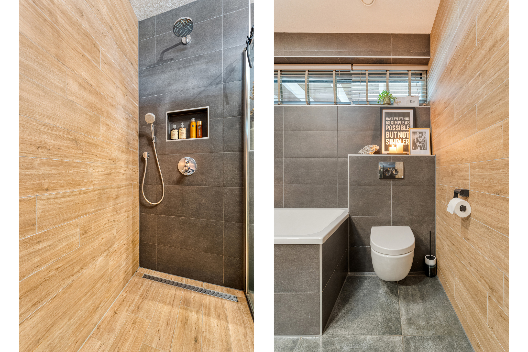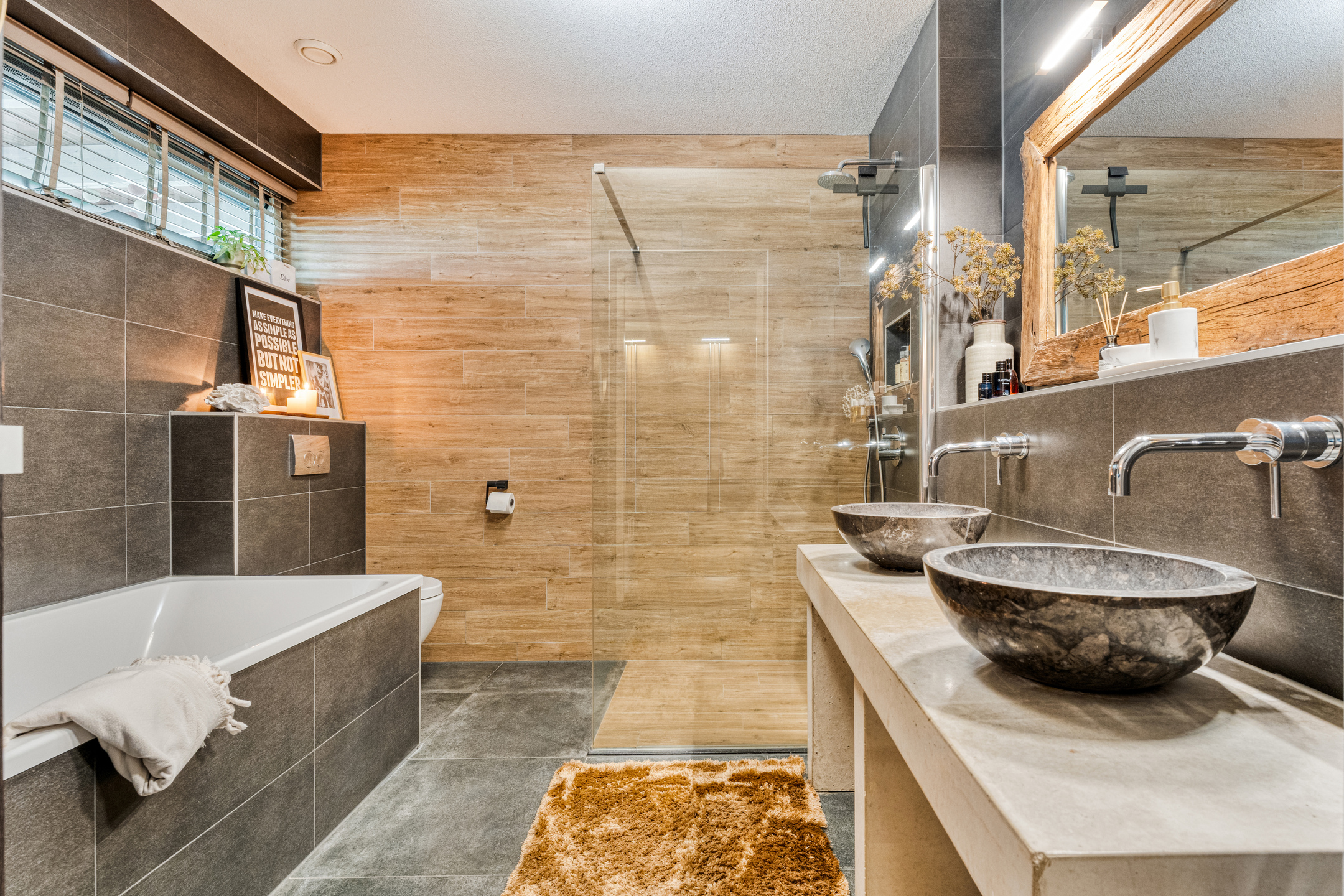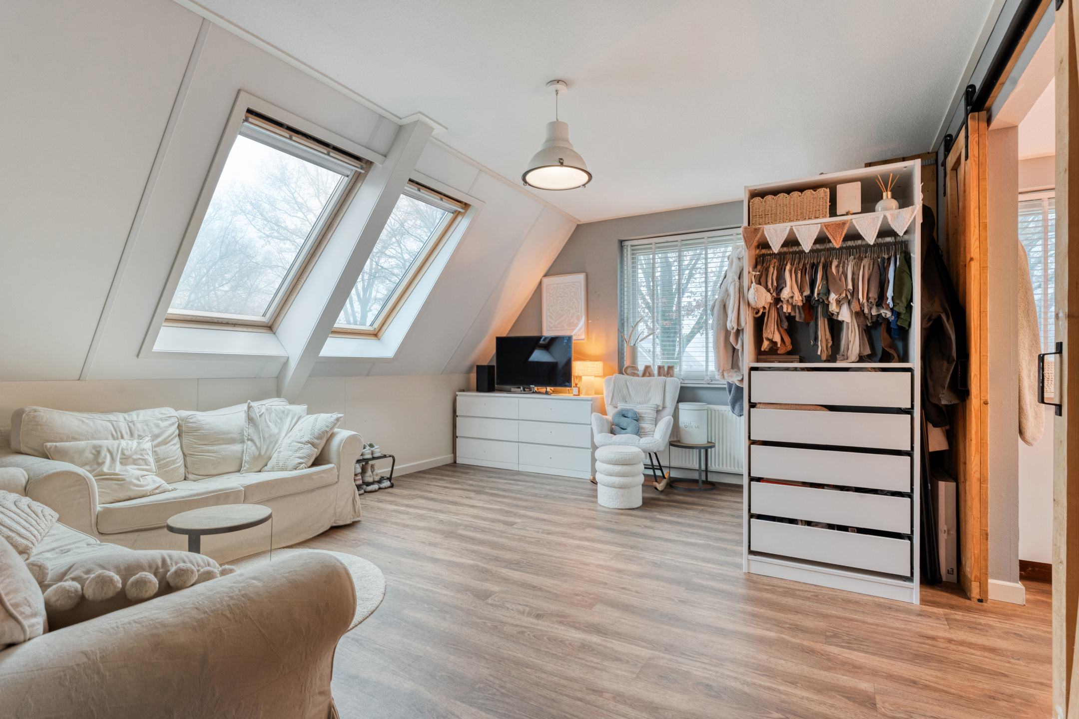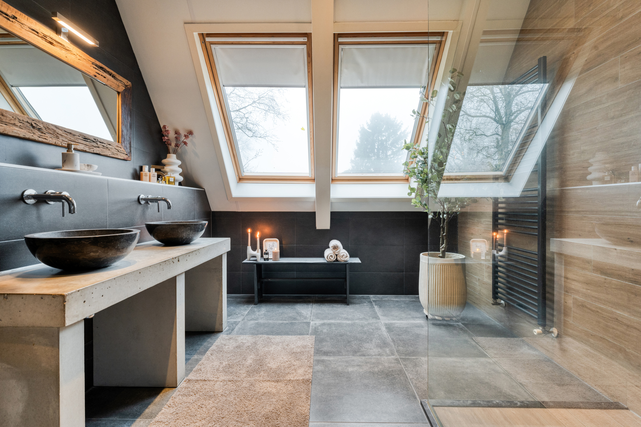 De statige entree straalt direct klasse en elegantie uit. De binnenkomst is ruim en licht, met trapopgang en vide en vormt een stijlvolle opmaat naar de rest van de woning. De sfeervolle woonkamer met houtkachel is een heerlijke plek om te verblijven. Dankzij de vele ramen en de openslaande deuren geniet u van een prachtige lichtinval en zicht op de tuin. Aangrenzend bevindt zich de luxueus uitgevoerde keuken, compleet met o.a.: een Quooker met gekoeld, bruisend én kokend water, 5-pits inductiekookplaat, grote oven, koelkast, vaatwasser, magnetron en een vaste kast met wijnkoeler (96 flessen). Hoogwaardige afwerking tot in detail. Een groot pluspunt is de ruime slaapkamer op de begane grond, met direct daarnaast de moderne en comfortabele badkamer met o.a. een royale inloopdouche, dubbele wastafel, ligbad en een toilet. Hiermee is de woning uitstekend geschikt voor zowel gezinnen als levensloopbestendig wonen. Daarnaast bevindt zich op de begane grond een luxe afgewerkte bijkeuken/wasruimte, voorzien van een keukenblok en boiler. De ruime garage is voorzien van dubbele elektrische deuren en een prachtige epoxy vloer (2025). Via een vaste trap bereikt u de royale zolderverdieping van de garage: momenteel in gebruik als werkkamer met airconditioning. Maar uitstekend geschikt voor extra slaapkamers, studioruimte of een thuiswerkplek.