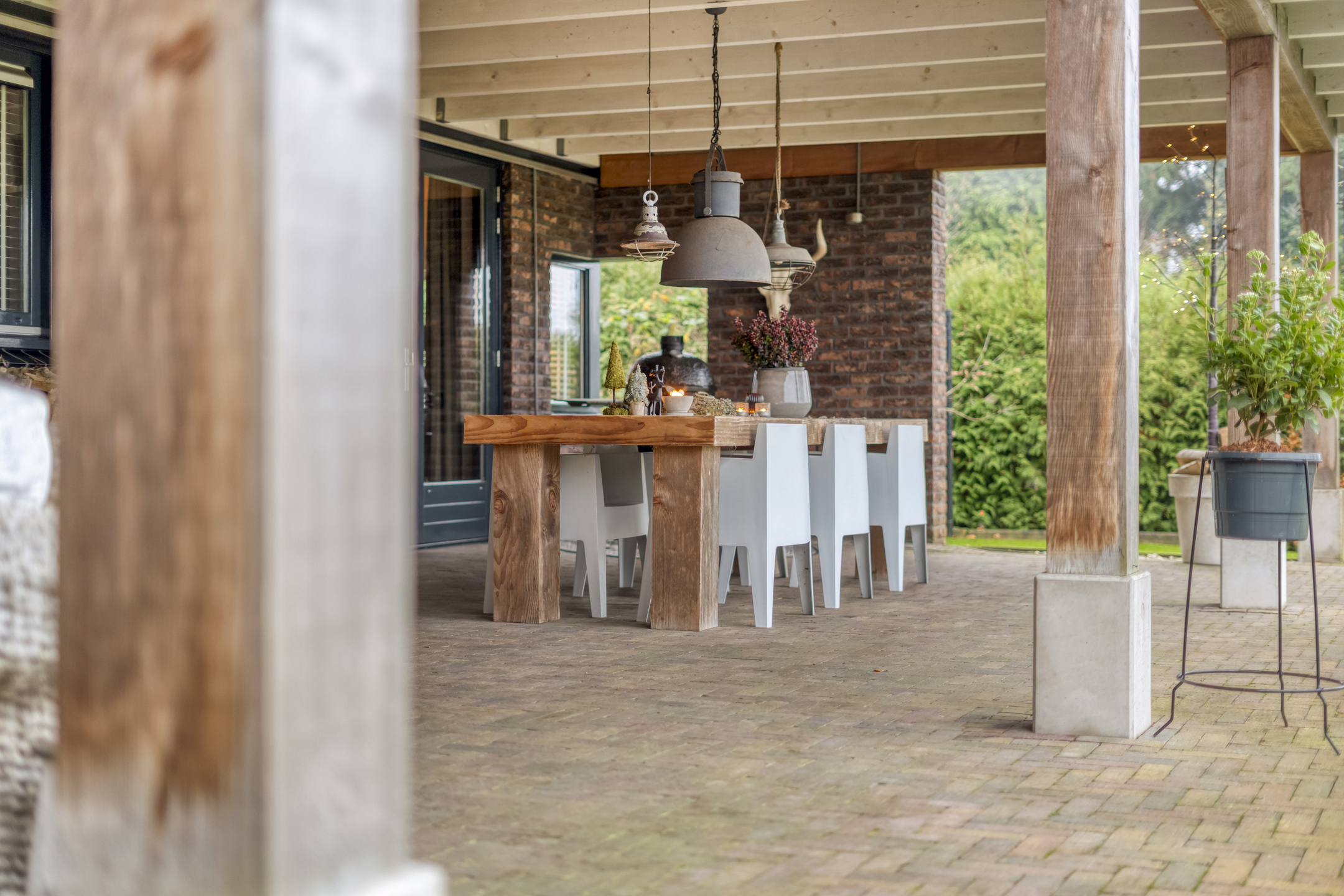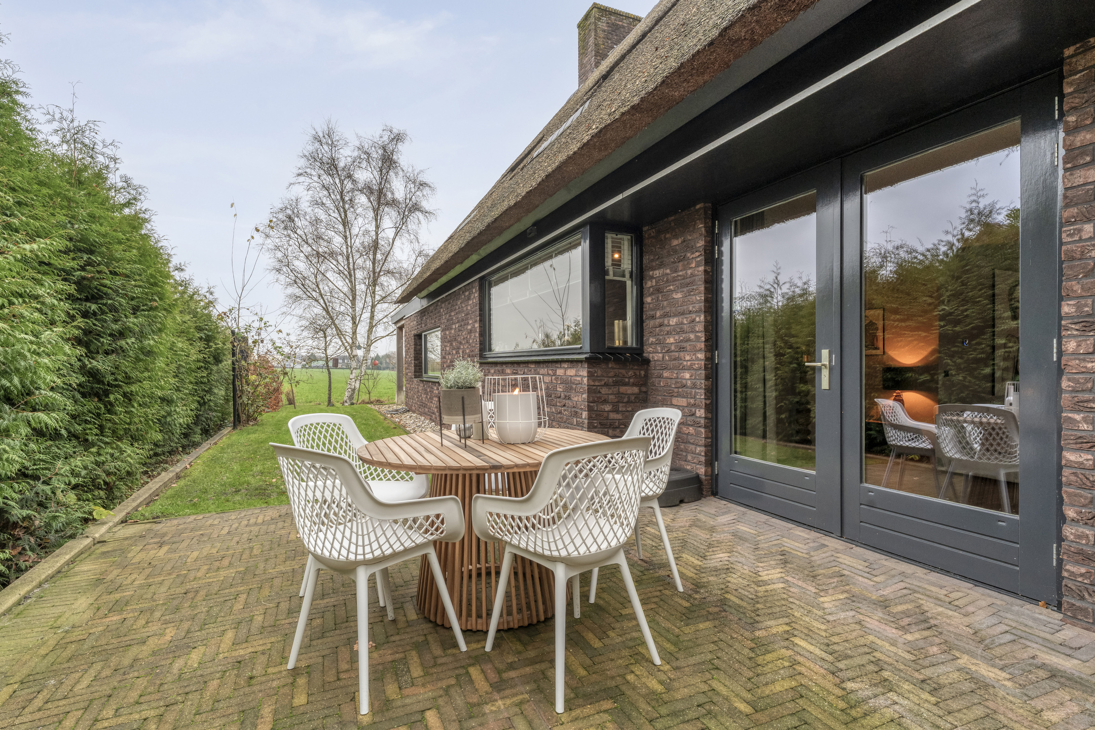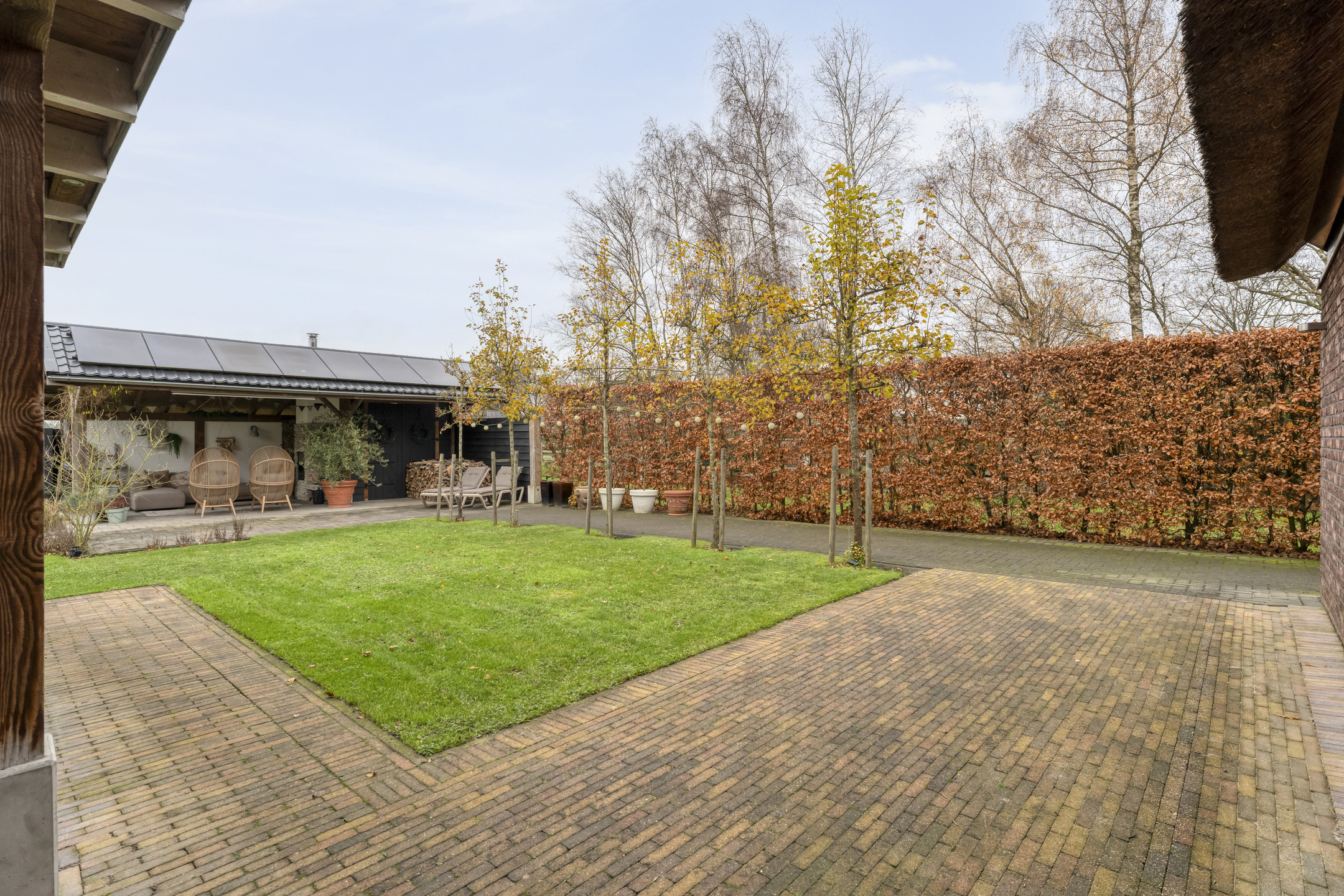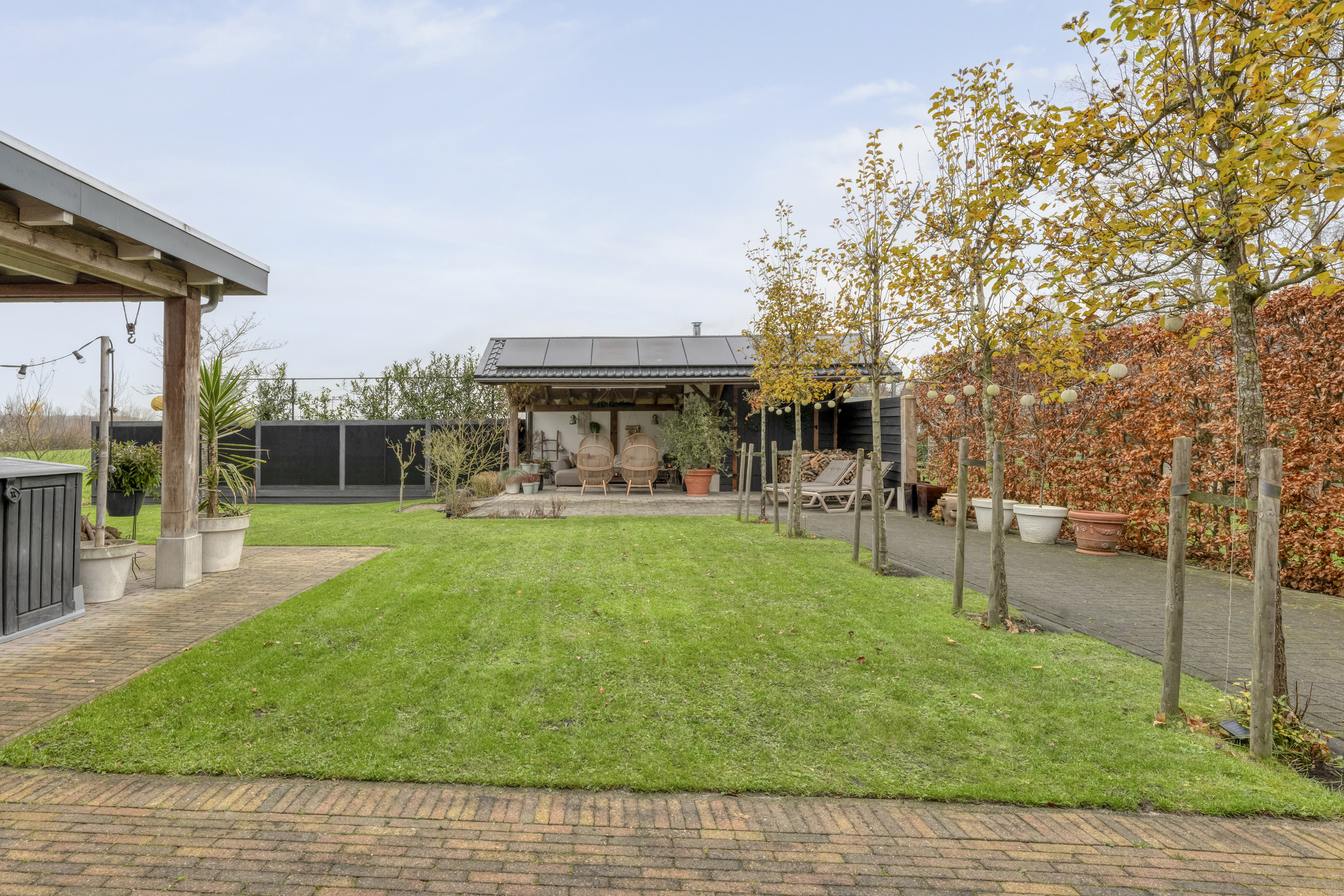 De tuin is werkelijk een buitenkans: volop privacy, prachtig aangelegd én met vrij uitzicht over de weilanden. Direct aan de woning bevindt zich een imposante overkapping van maar liefst 15 meter breed. Achter in de tuin staat nóg een sfeervolle overkapping met haard en extra schuur. Een heerlijke plek voor lange zomeravonden of gezellige wintermomenten.
