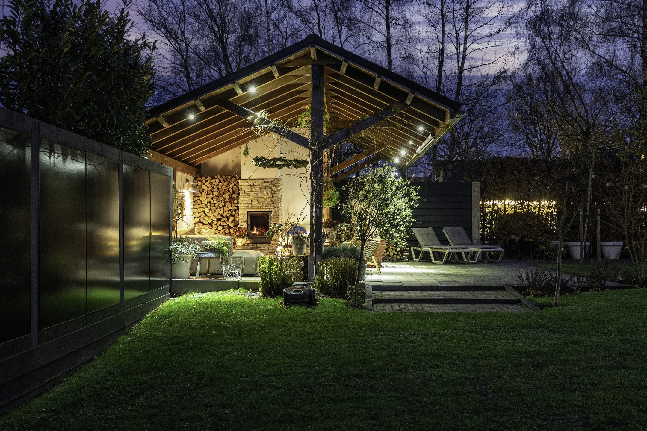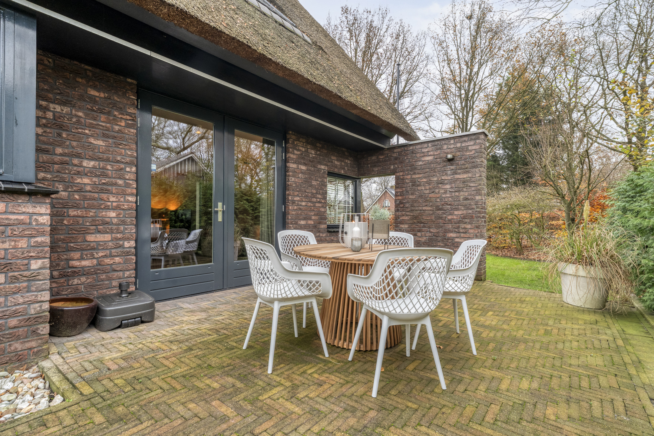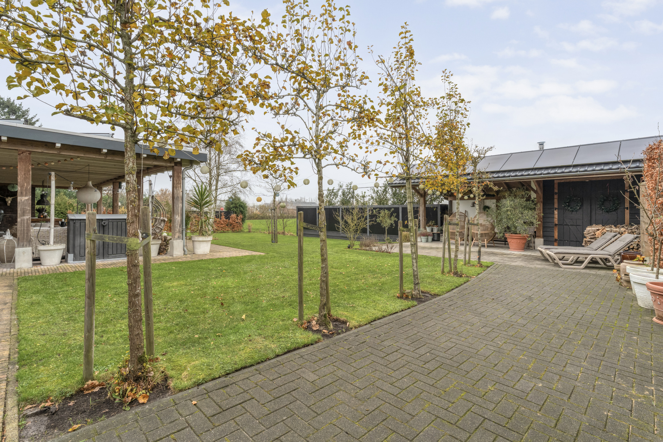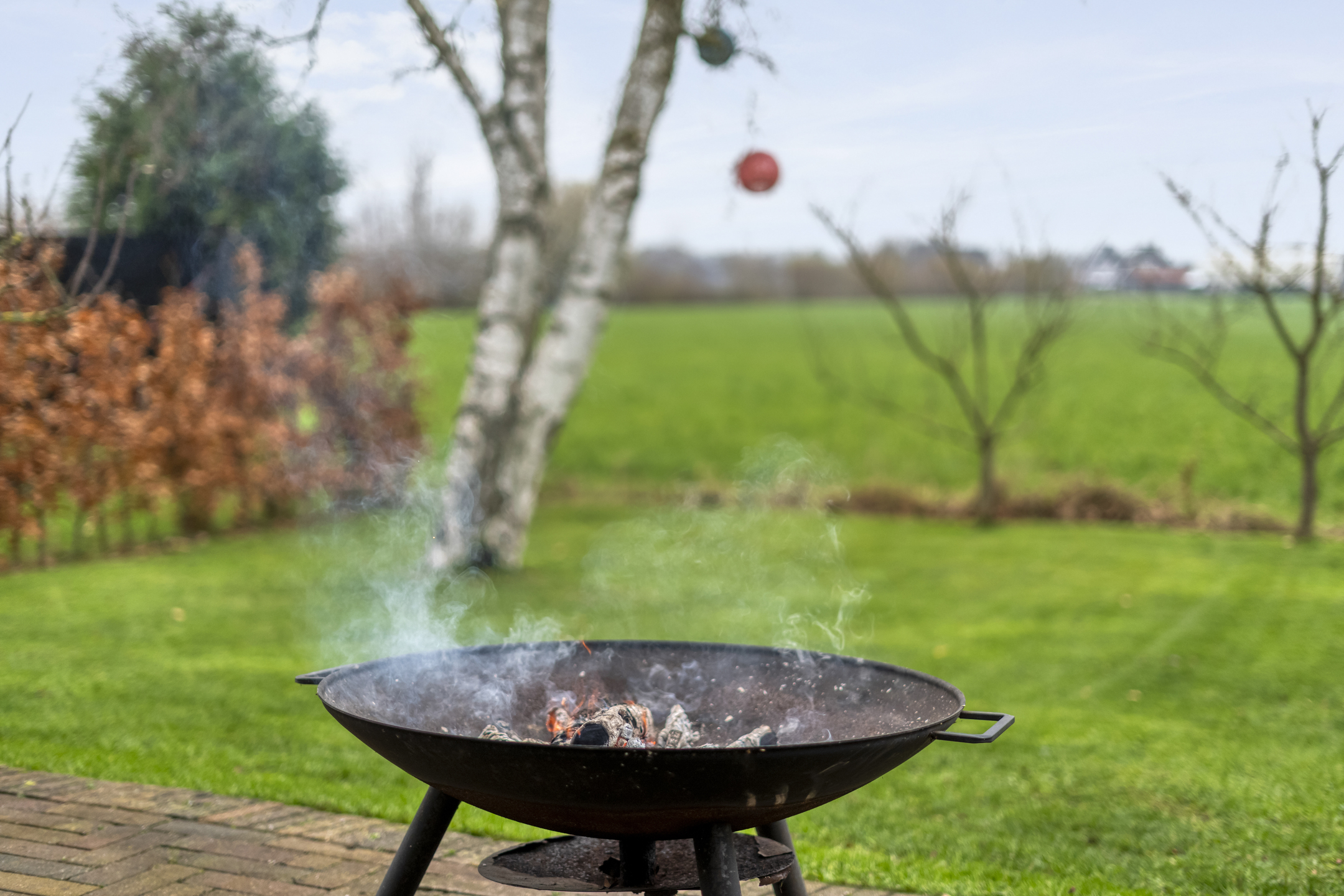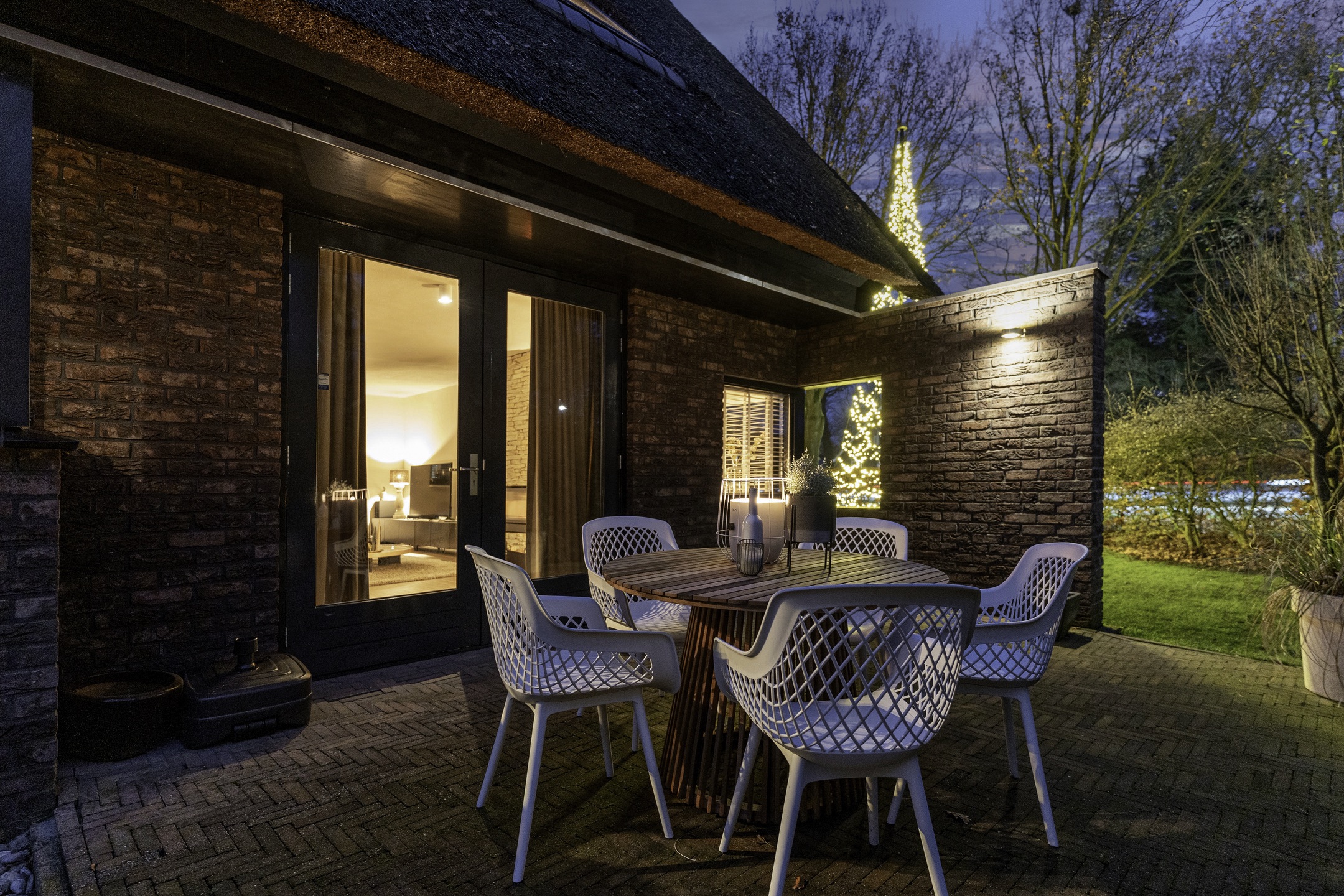 De tuin is werkelijk een buitenkans: volop privacy, prachtig aangelegd én met vrij uitzicht over de weilanden. Direct aan de woning bevindt zich een imposante overkapping van maar liefst 15 meter breed. Achter in de tuin staat nóg een sfeervolle overkapping met haard en extra schuur. Een heerlijke plek voor lange zomeravonden of gezellige wintermomenten.