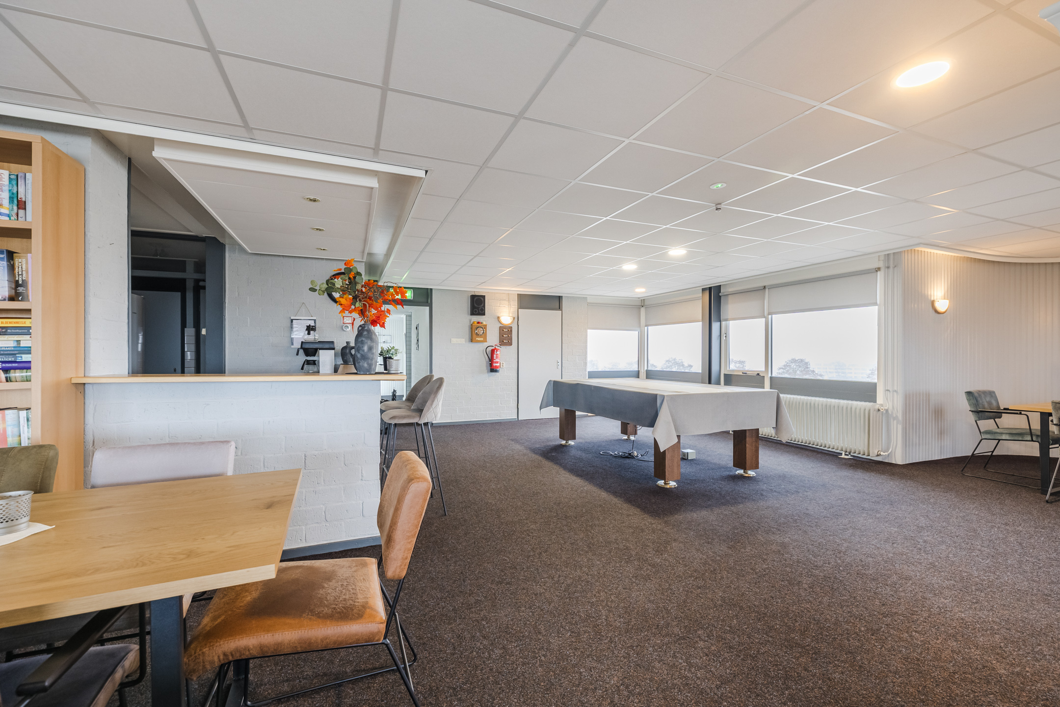 De ruime recreatieruimte met gemeenschappelijk dakterras kan door iedere bewoner gebruikt worden.