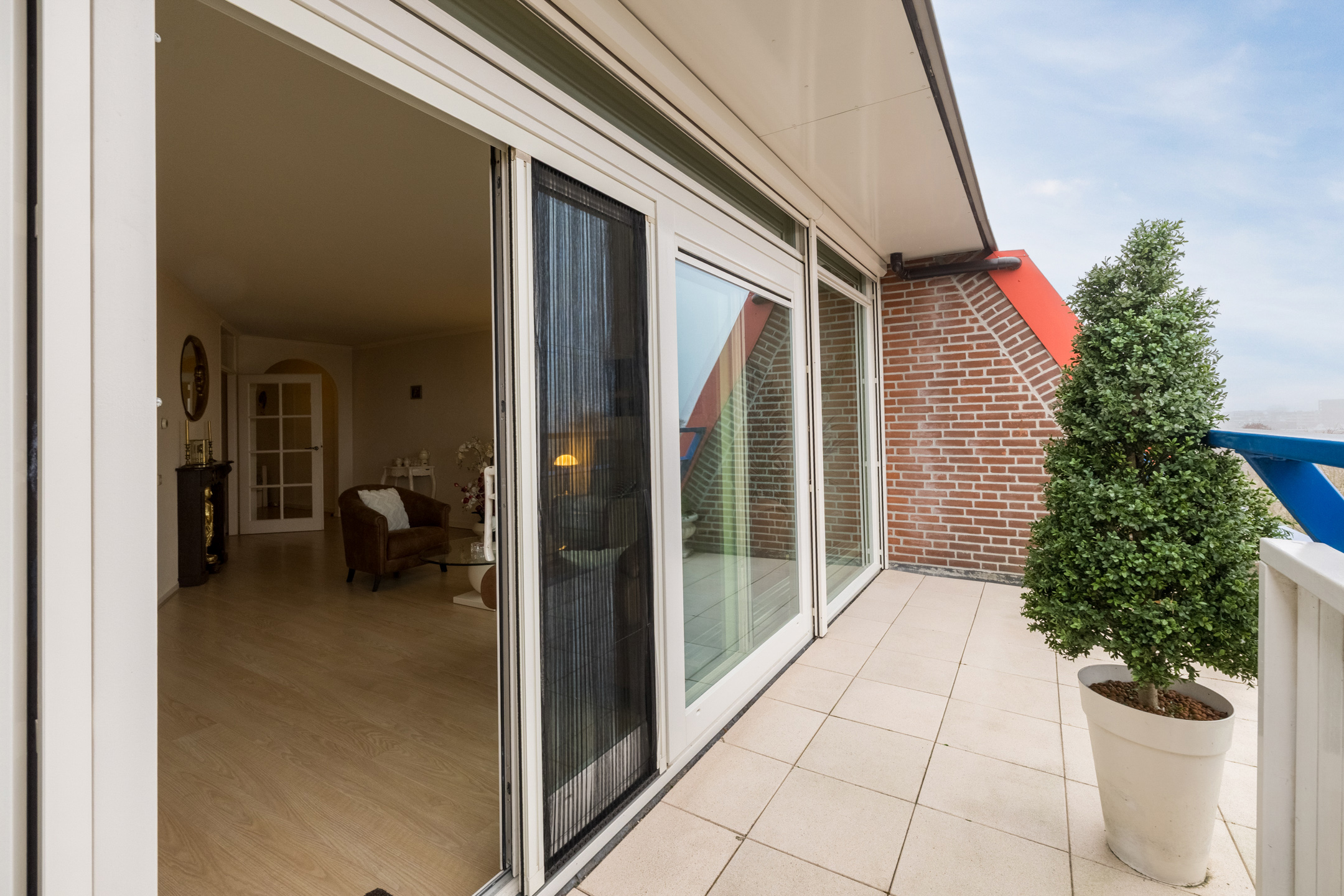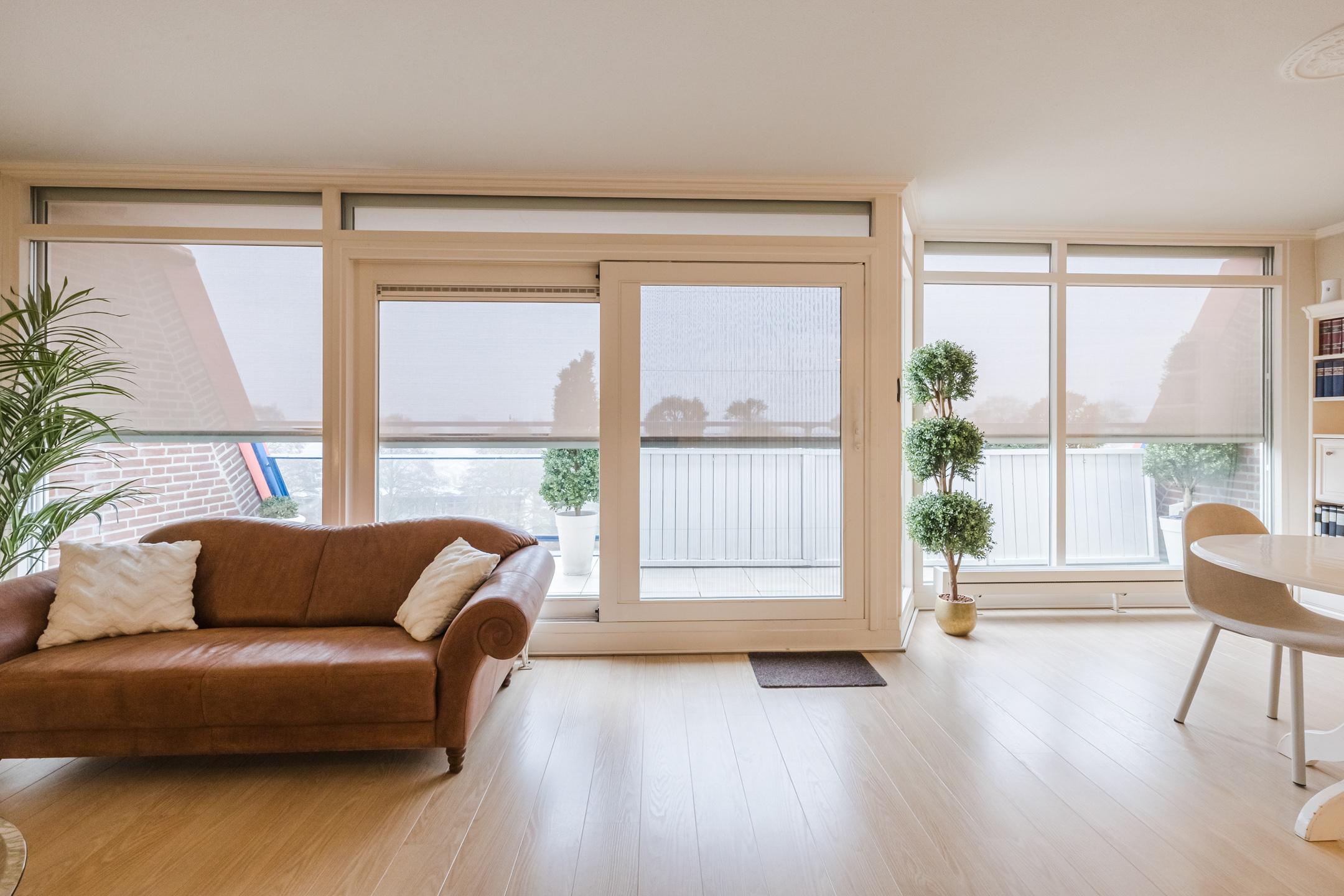 De woning is aan de woonkamerzijde deels voorzien van screens, aan de achterzijde van rolluiken.