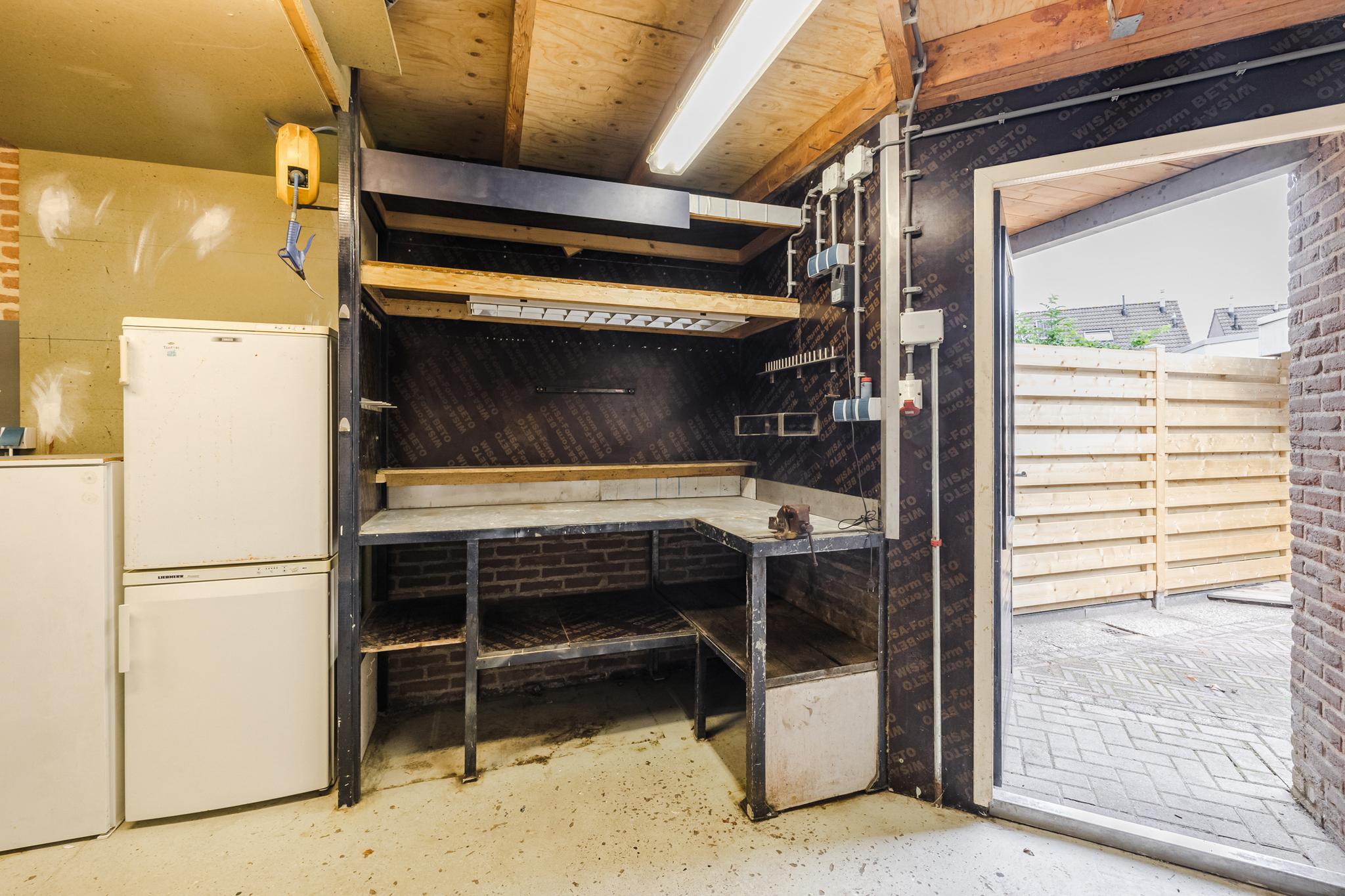De lichte woonkamer beschikt over een rookkanaal( voor hout of pelletkachel) De dichte keuken en bijkeuken geven toegang tot de knusse tuin met overkapping. Via de tuin komt u in de ruime berging/garage met smeerput voor de autoklusser.