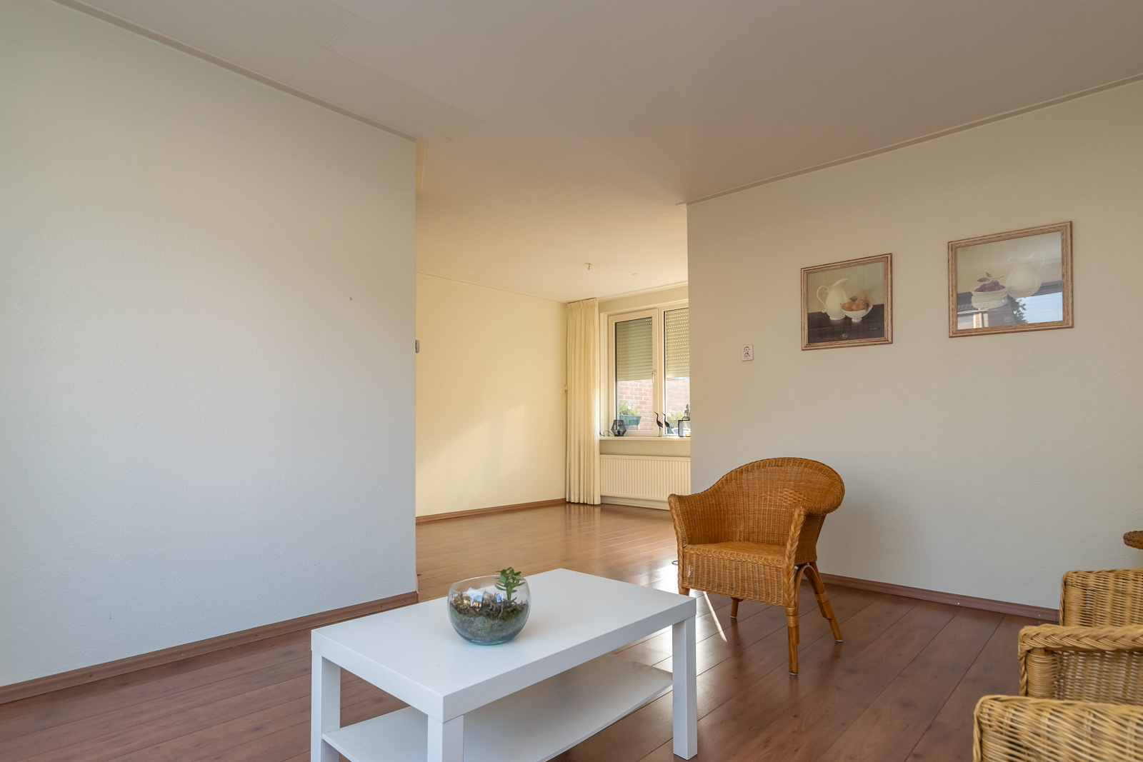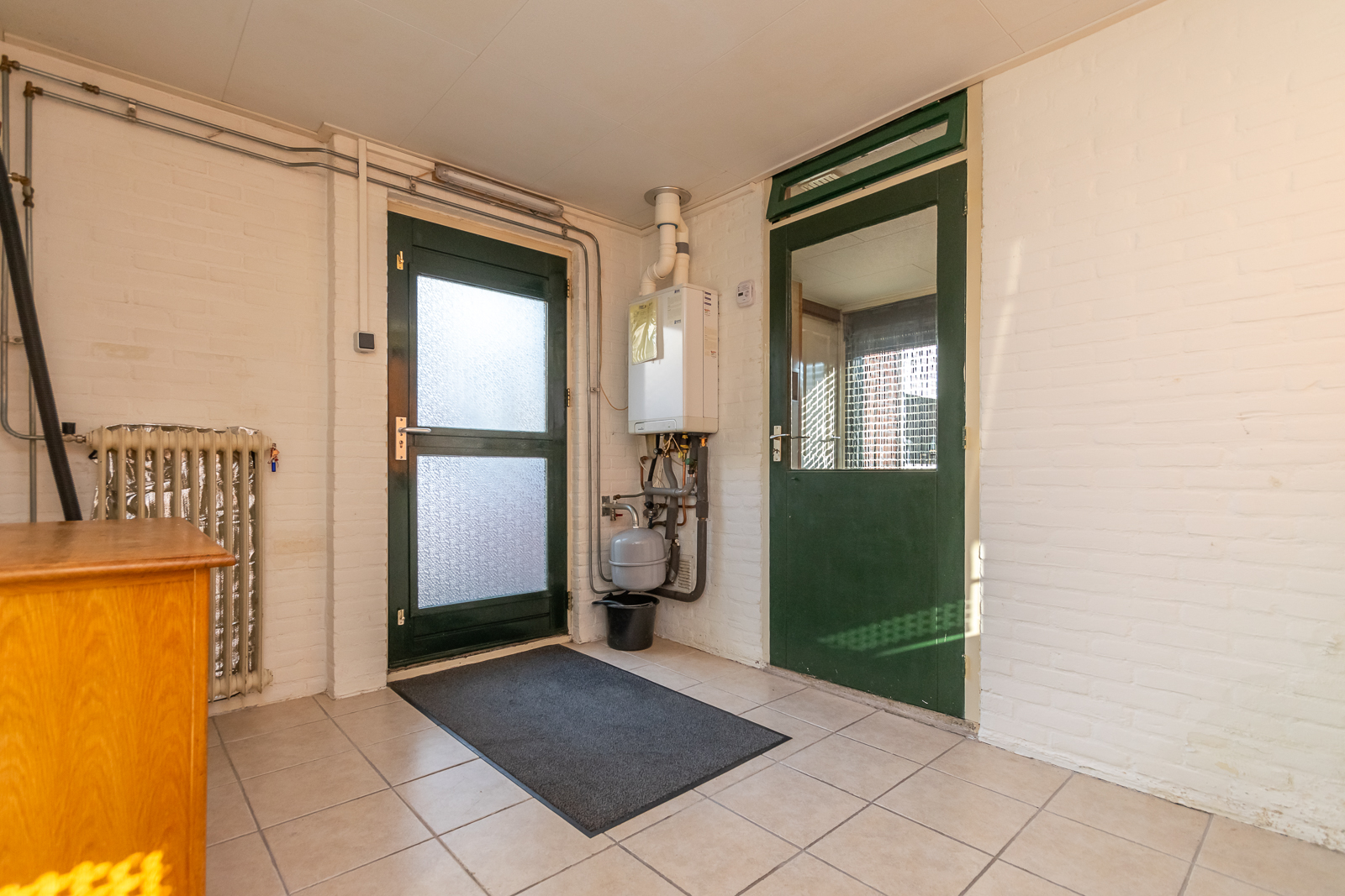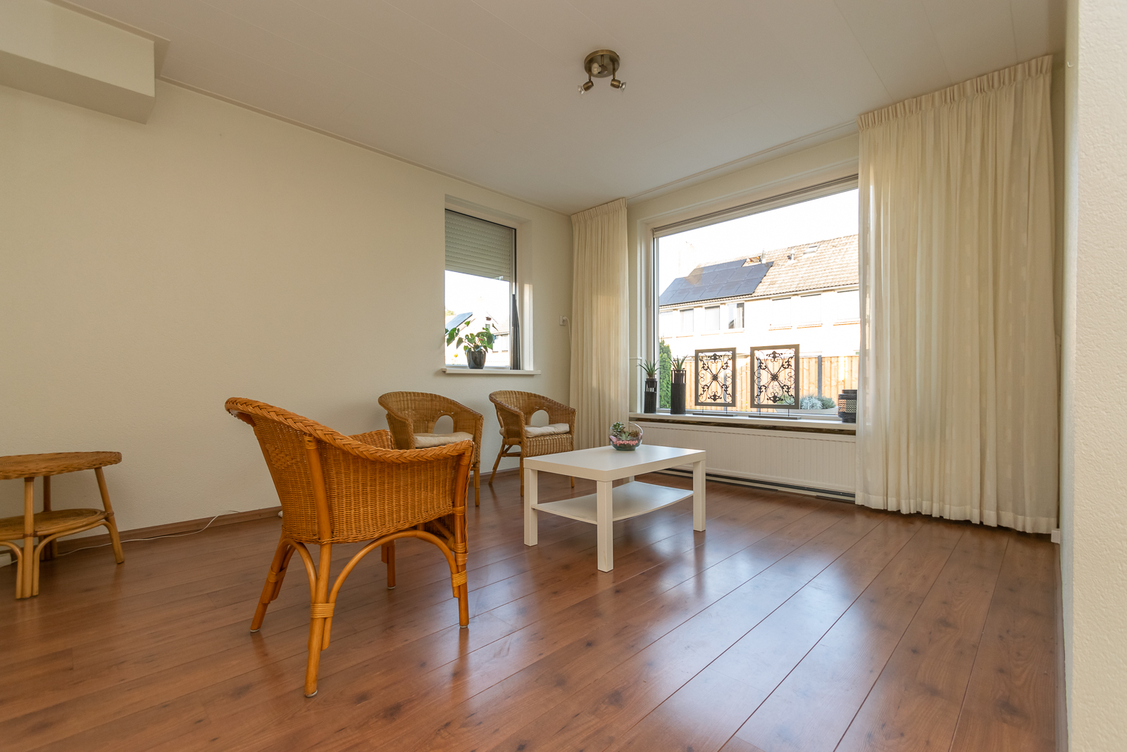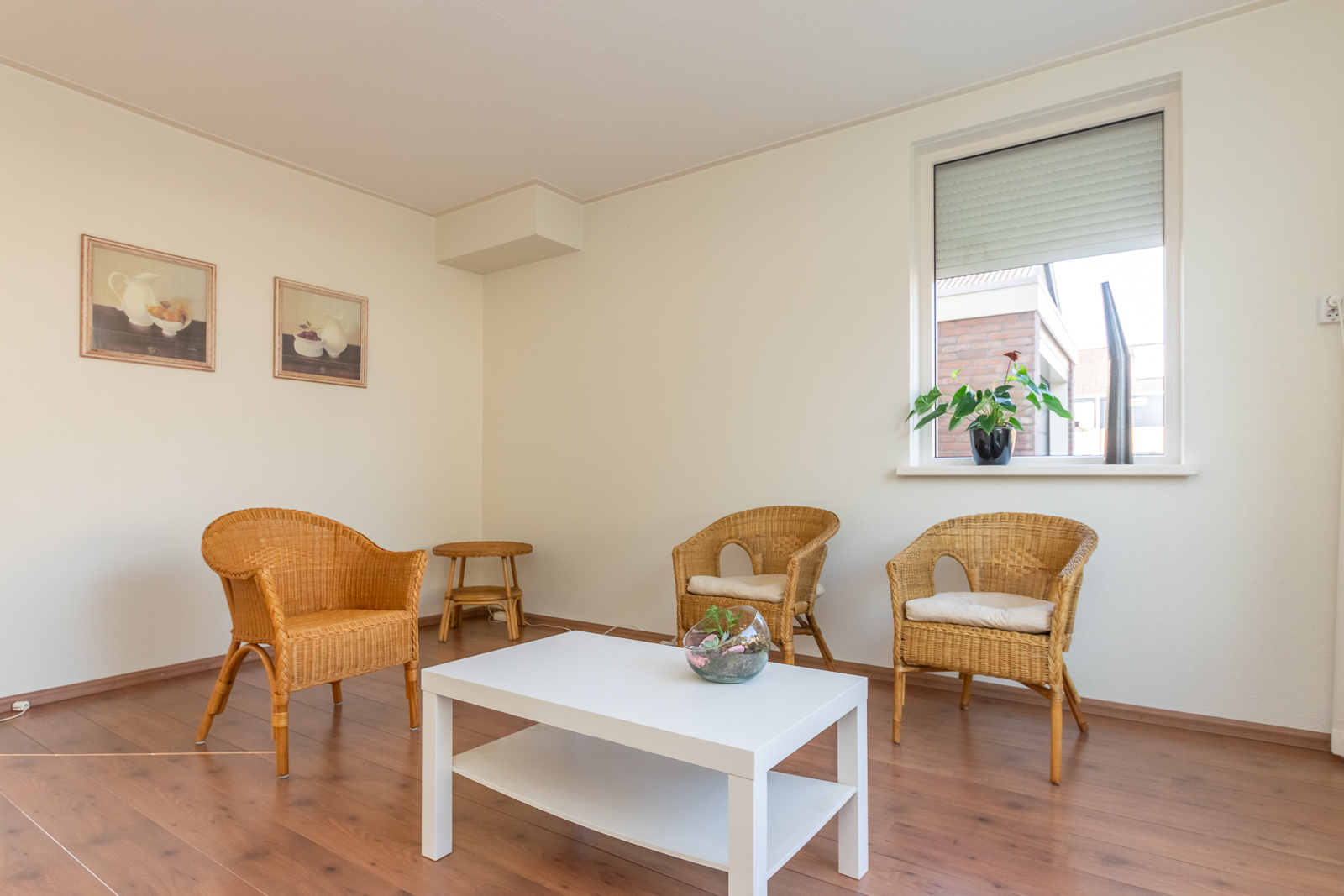 Woonkamer, halfopen keuken met enig inbouwapparatuur, bijkeuken met witgoedaansluiting en CV combiketel, hal en binnendoor naar de extra ruime garage van ca. 36m² met elektrische roldeur.