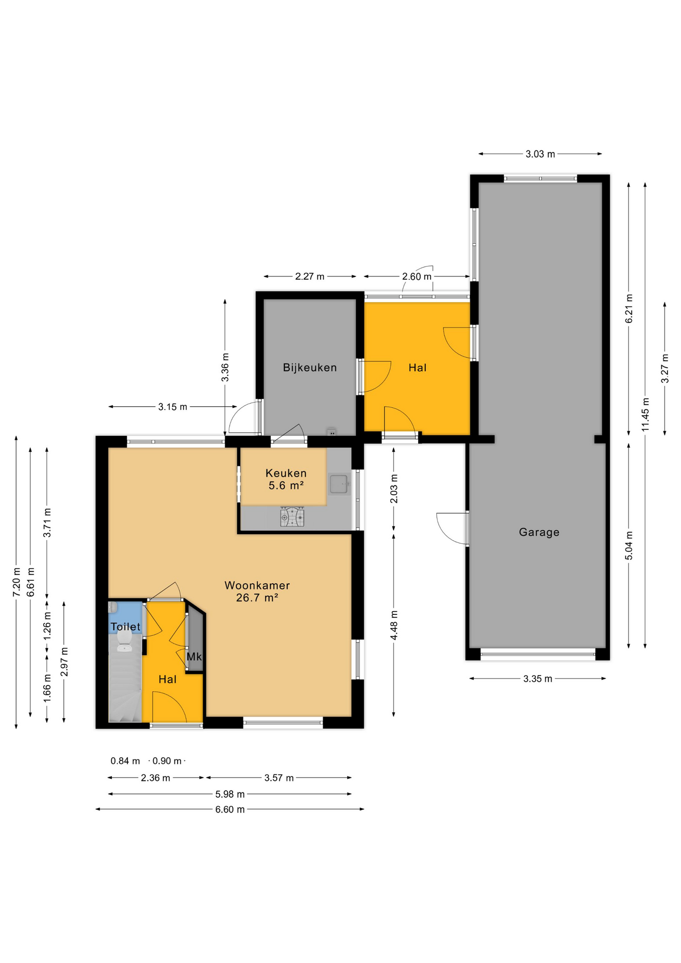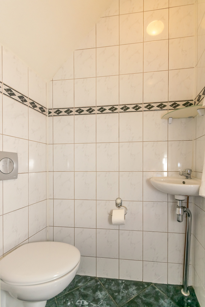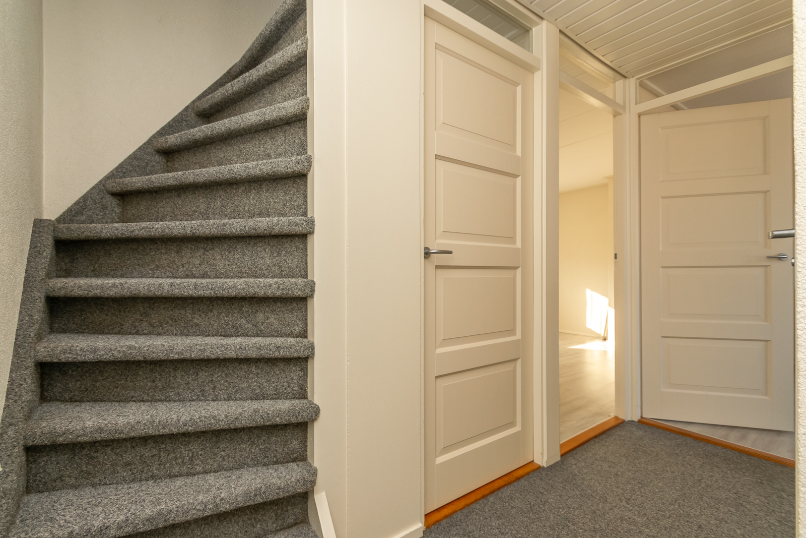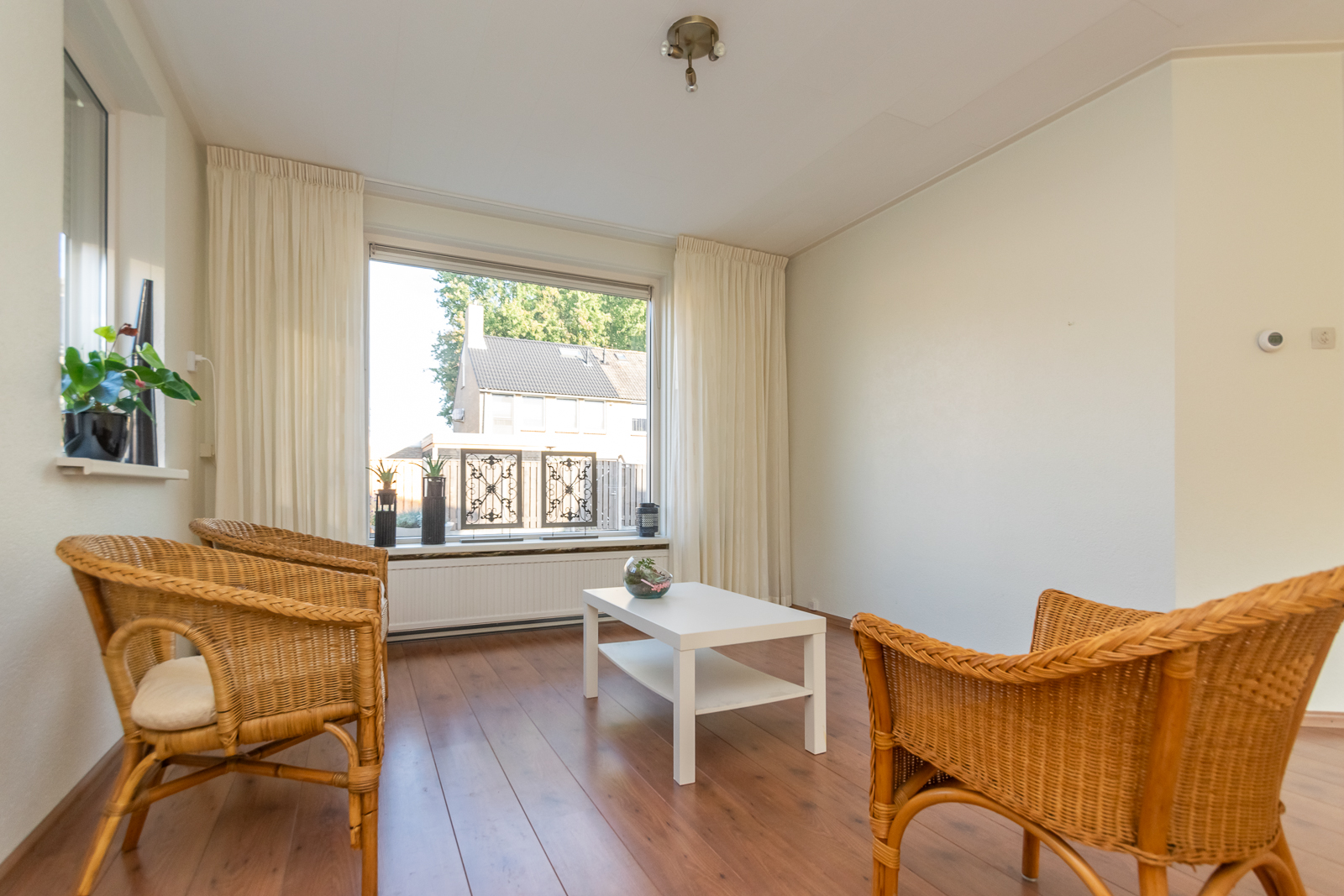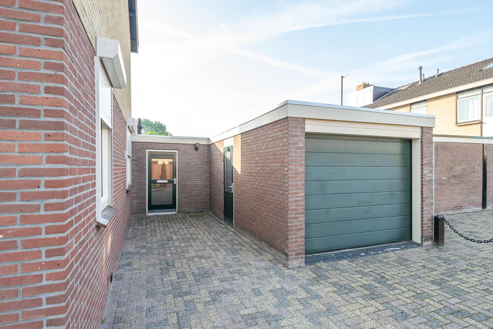 Woonkamer, halfopen keuken met enig inbouwapparatuur, bijkeuken met witgoedaansluiting en CV combiketel, hal en binnendoor naar de extra ruime garage van ca. 36m² met elektrische roldeur.