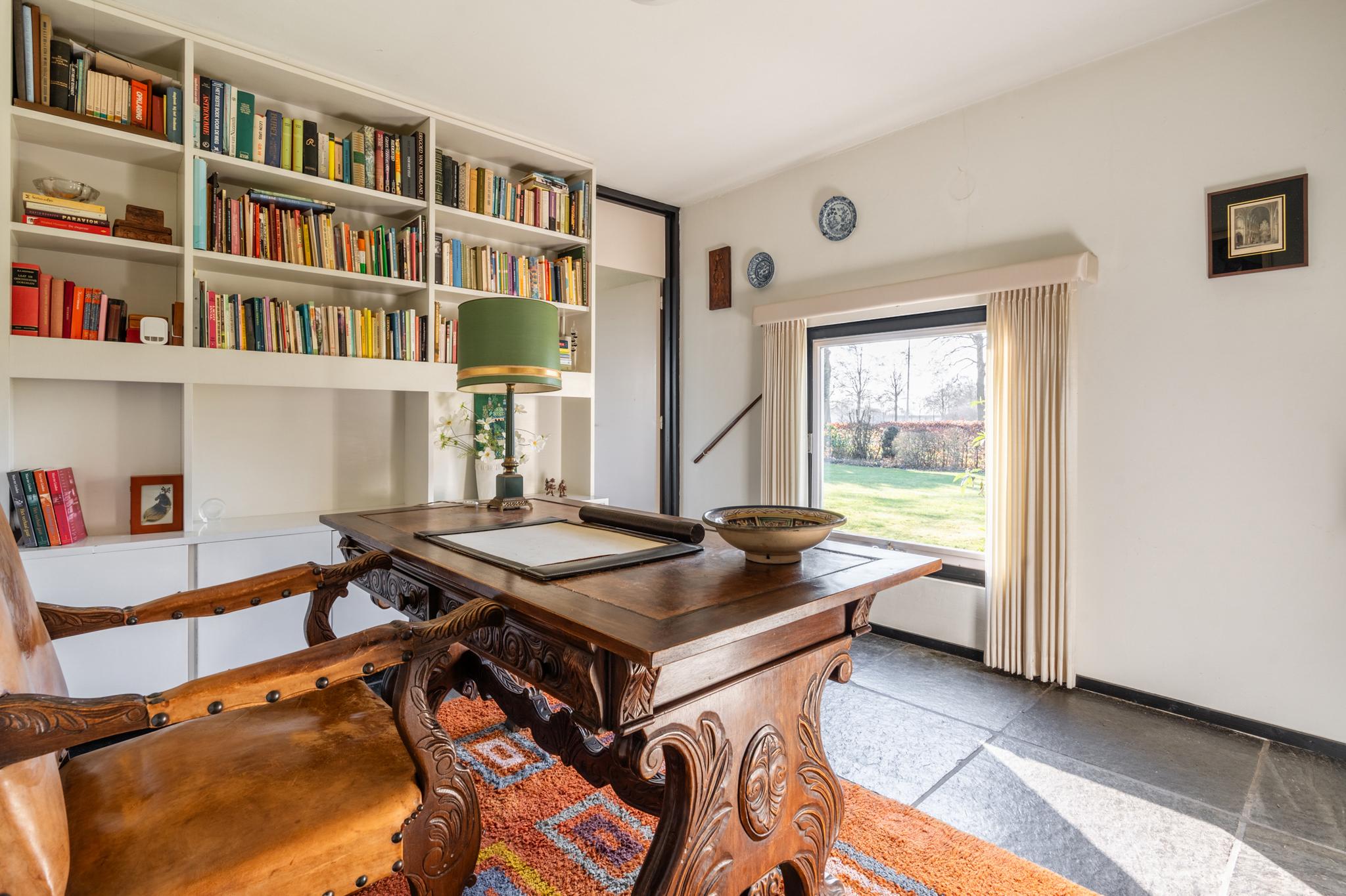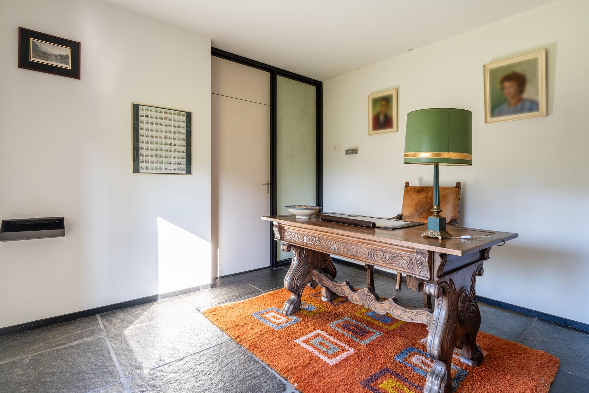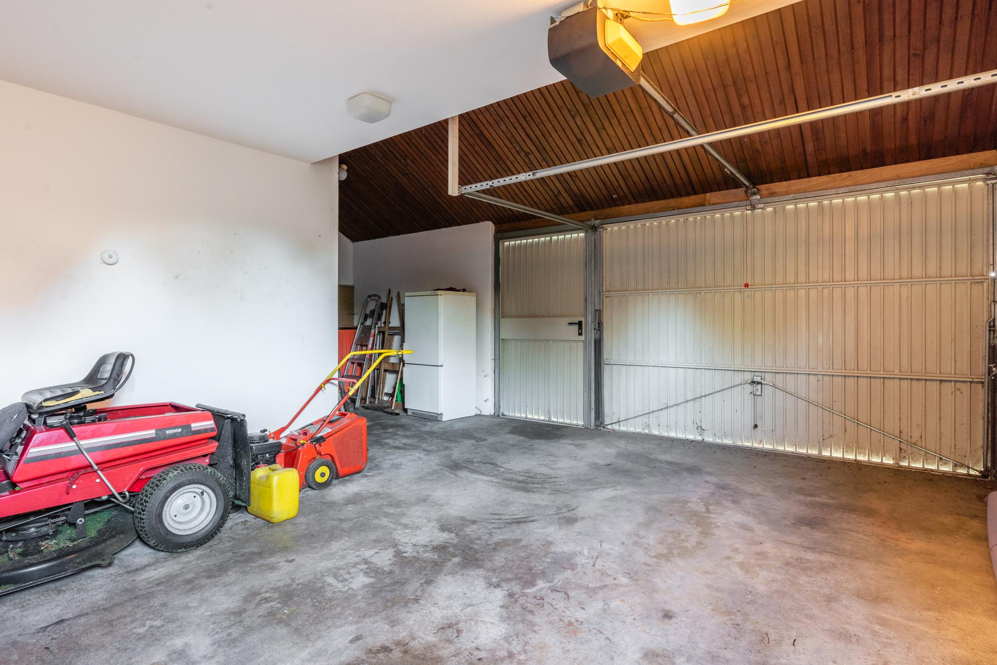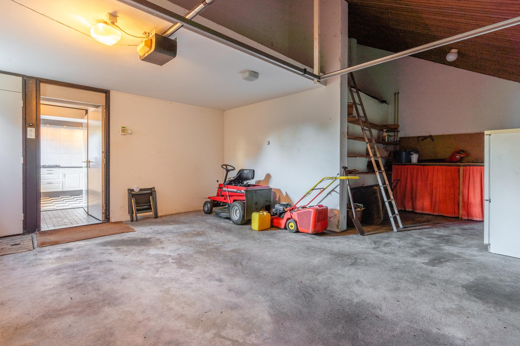 Indeling: Entree met direct zicht op de tuin, toilet, trapopgang en doorgang naar woonkamer met open haard. Tussen woonkamer en entree vindt u een kantoor. De dichte keuken met diverse inbouwapparatuur heeft een doorgang naar bijkeuken, CV berging en garage. De garage heeft een elektrische garagedeur. De ruime slaapkamer heeft toegang tot de tuin. Er zijn veel inbouwkasten aanwezig en de badkamer beschikt over een toilet, douche en wastafel.