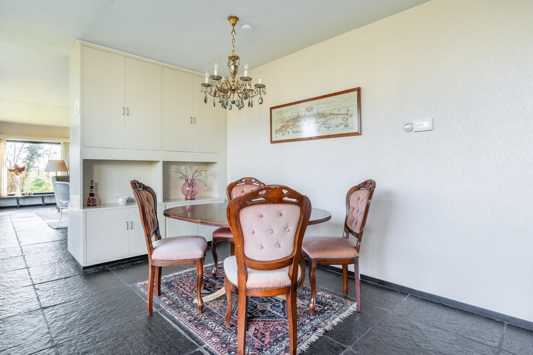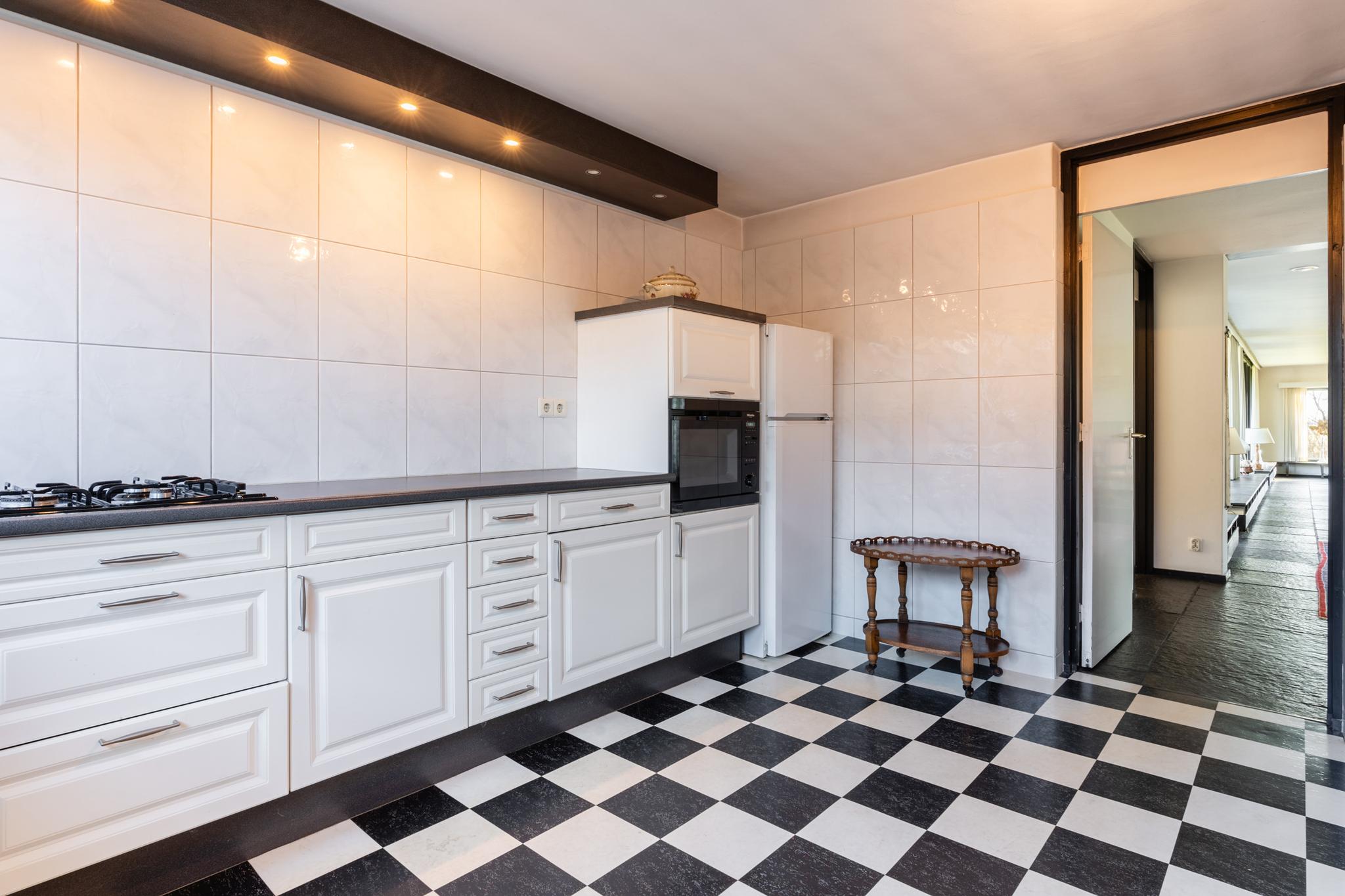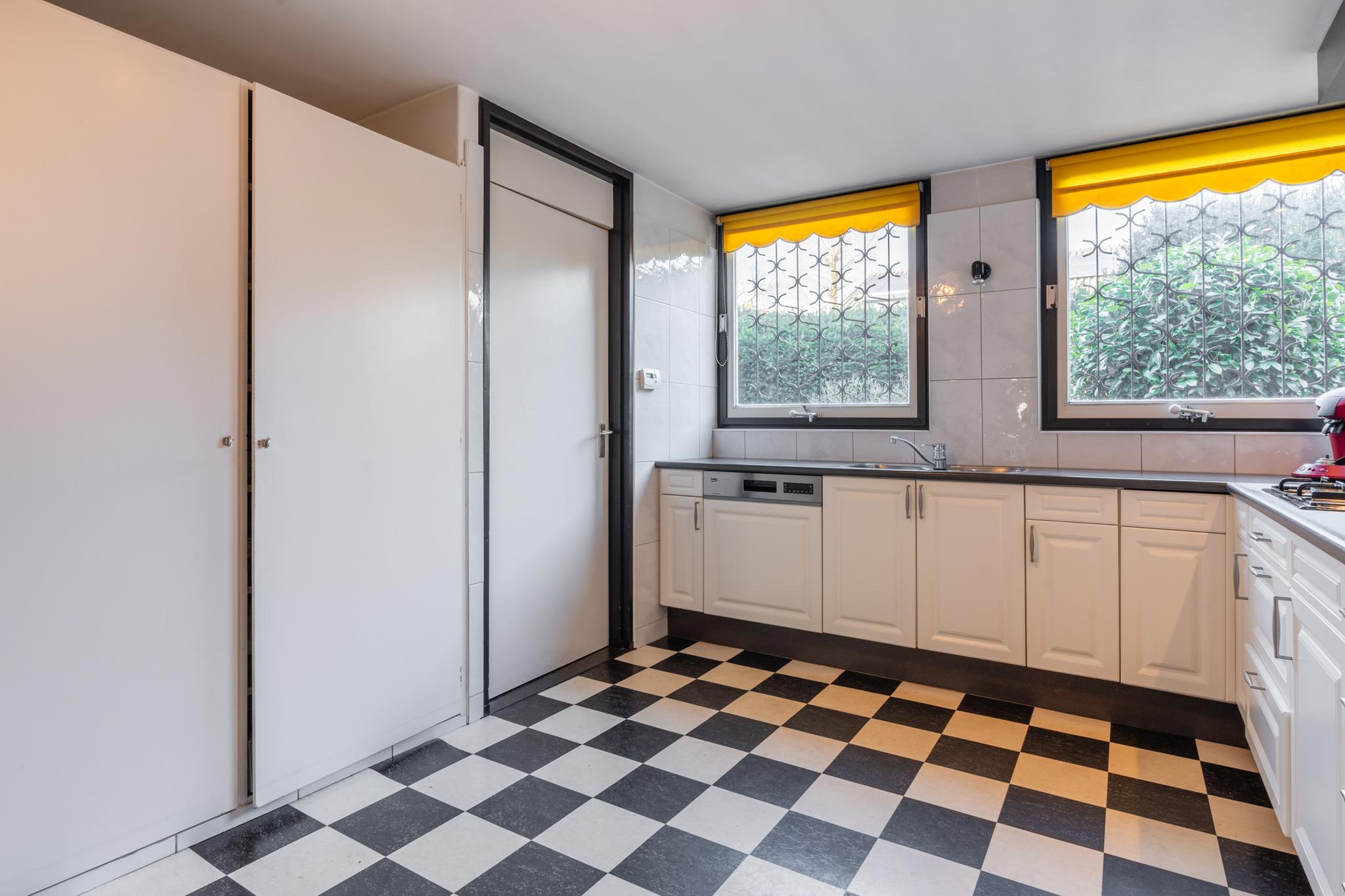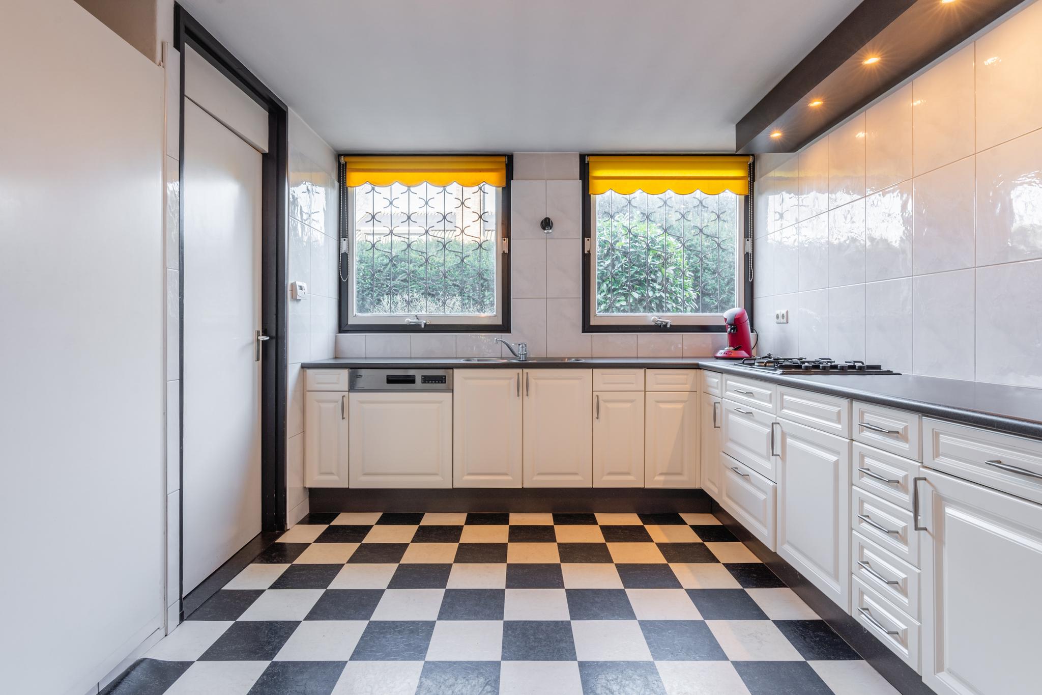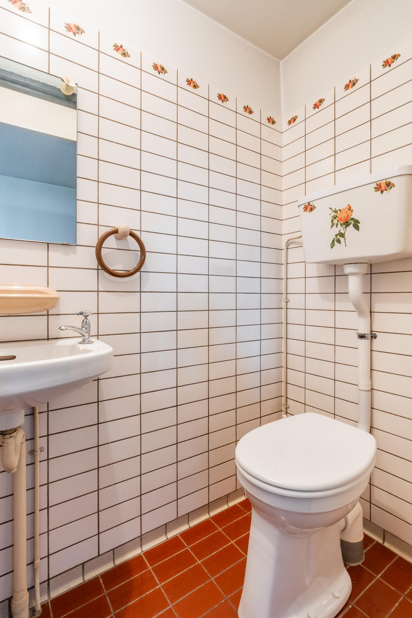 Indeling: Entree met direct zicht op de tuin, toilet, trapopgang en doorgang naar woonkamer met open haard. Tussen woonkamer en entree vindt u een kantoor. De dichte keuken met diverse inbouwapparatuur heeft een doorgang naar bijkeuken, CV berging en garage. De garage heeft een elektrische garagedeur. De ruime slaapkamer heeft toegang tot de tuin. Er zijn veel inbouwkasten aanwezig en de badkamer beschikt over een toilet, douche en wastafel.