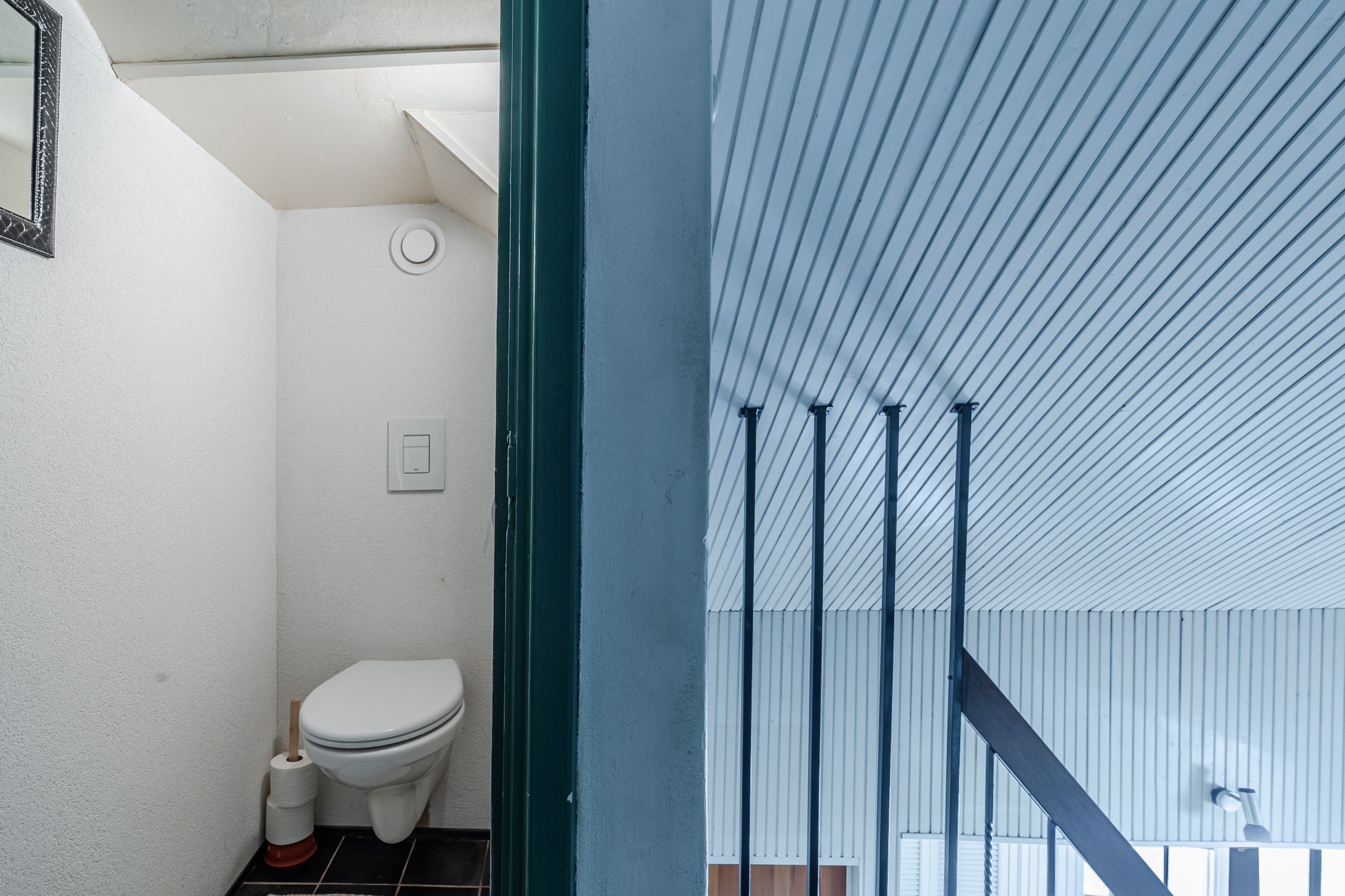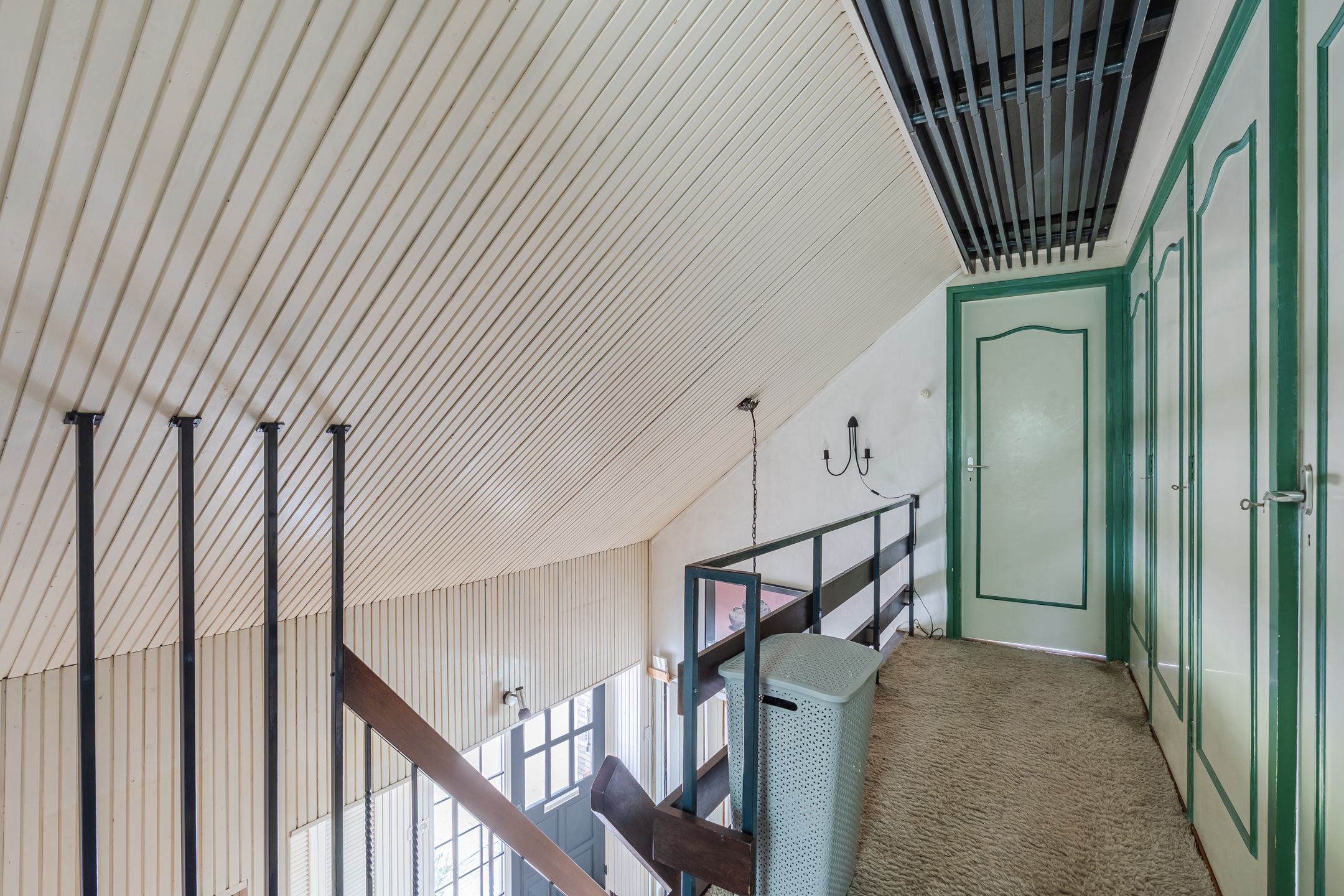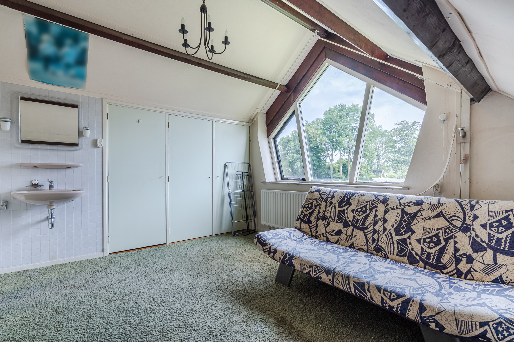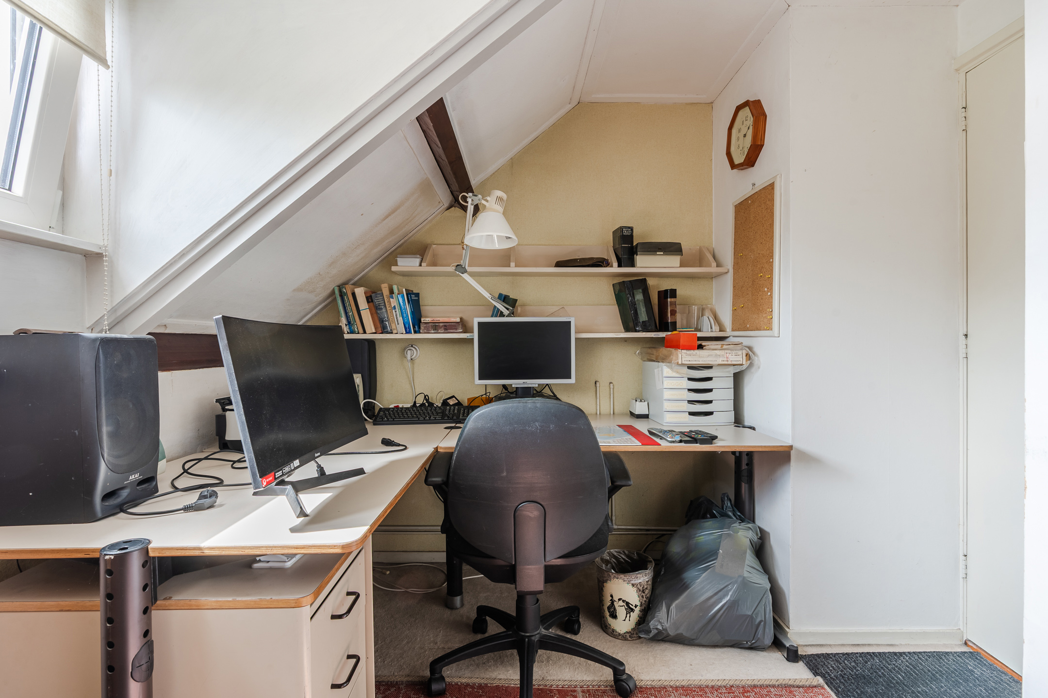 Overloop met 4 vaste kasten en een toilet (sanibroyeur), 3 slaapkamers waarvan een met een dakkapel, badkamer met ligbad, douche en wastafel en een berging met CV-ketel.