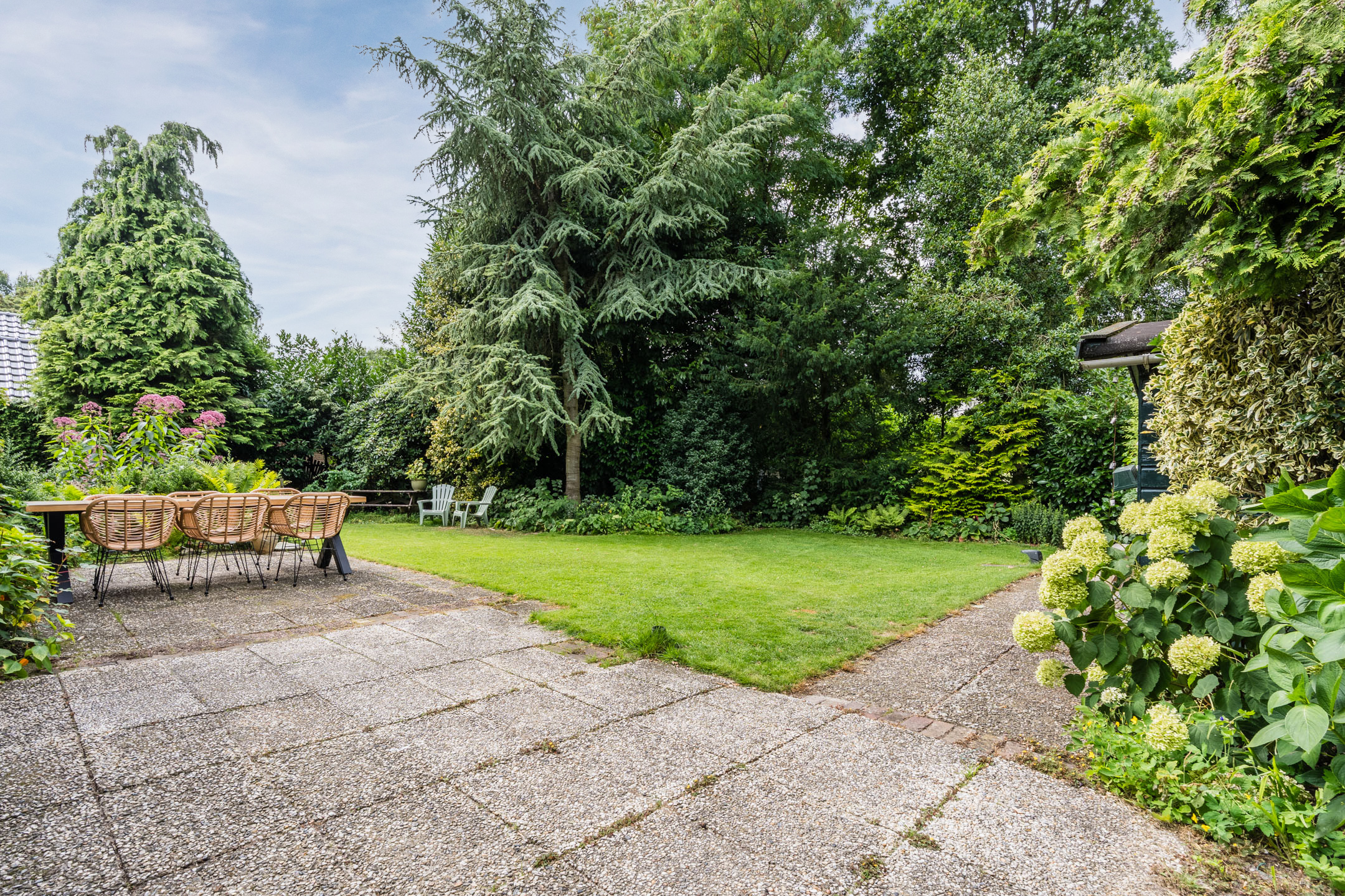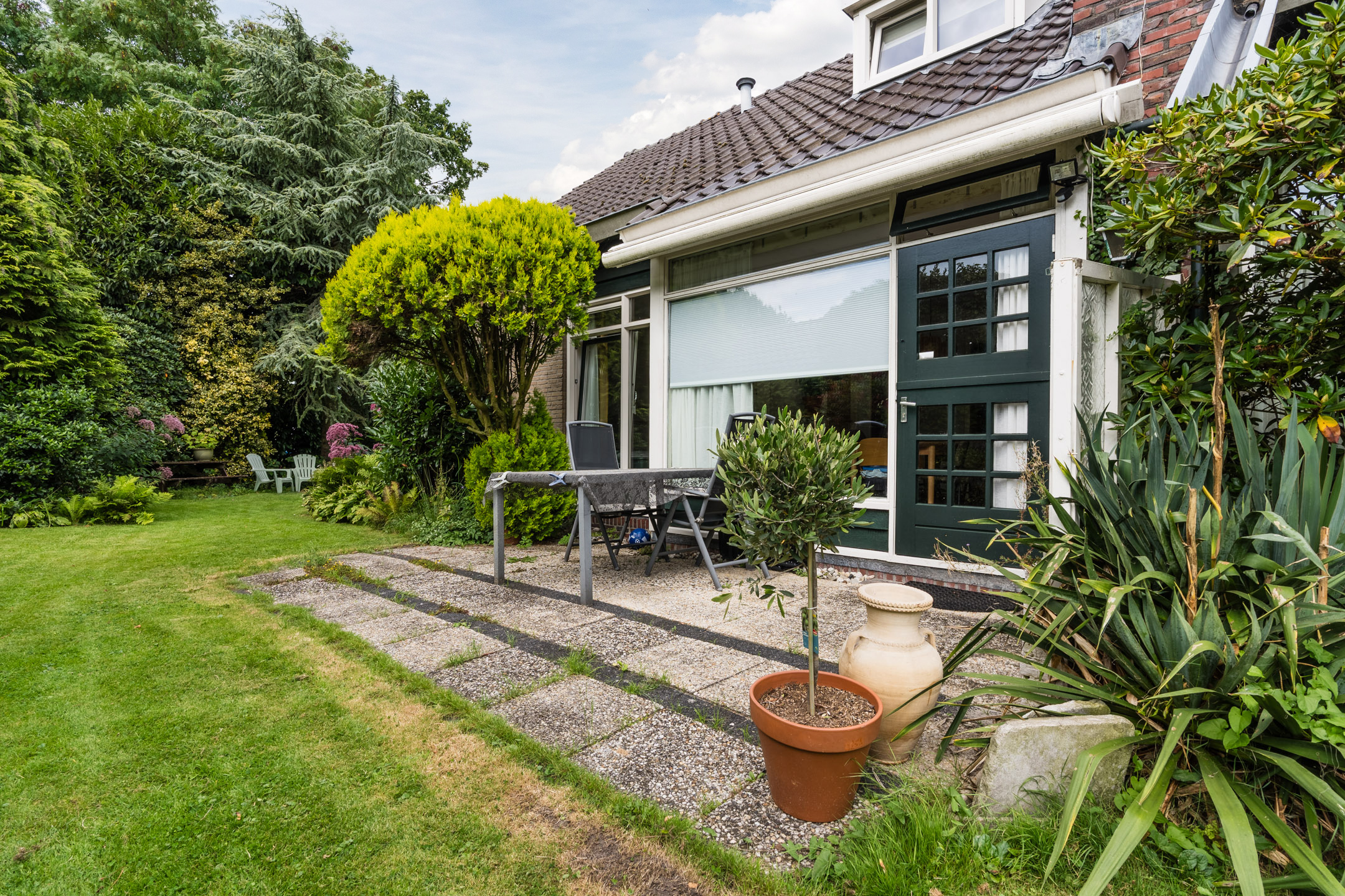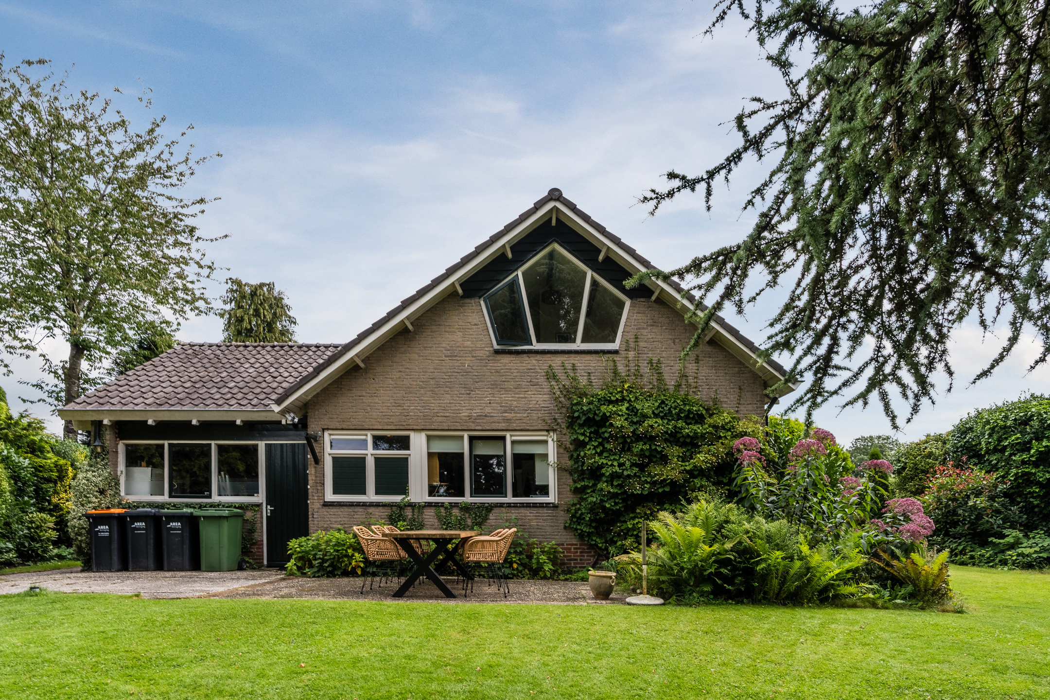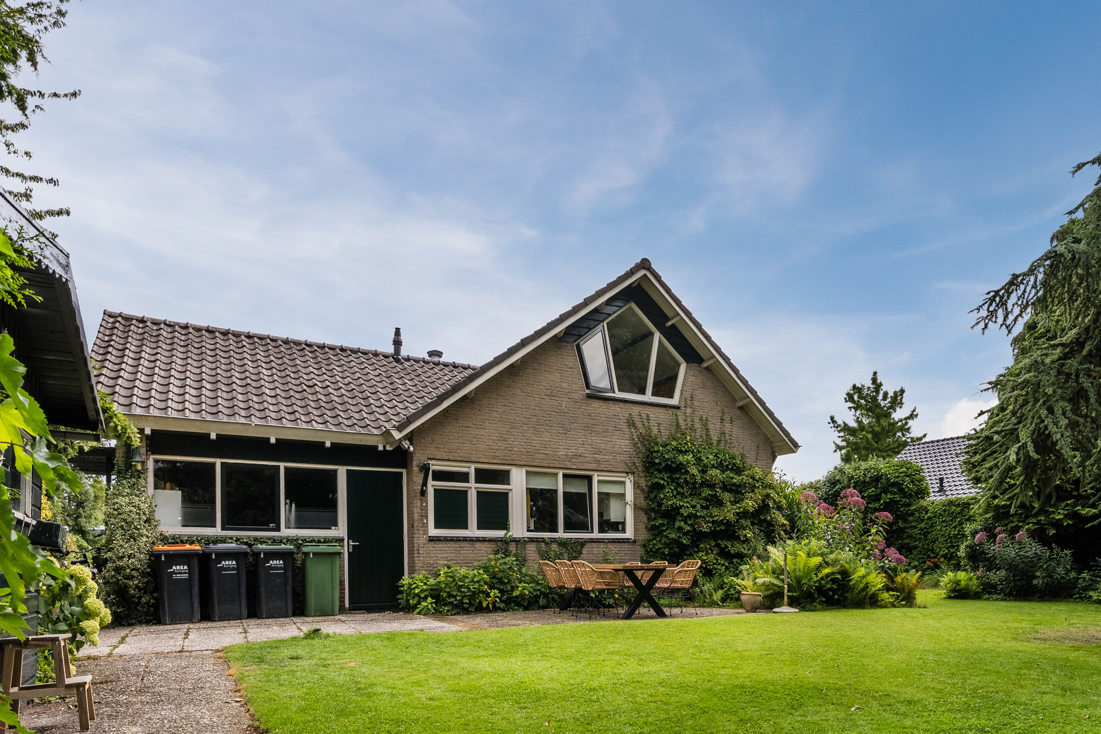 Vrijstaande bungalow op een groene locatie met een inpandige garage en een riante zonnige tuin rondom de woning!