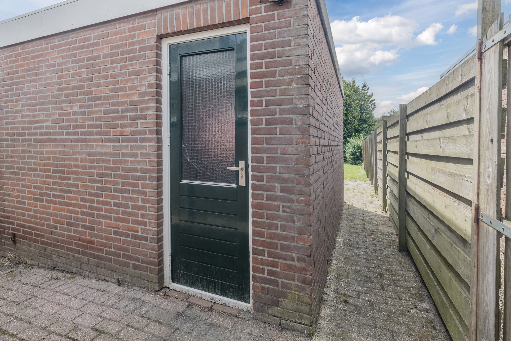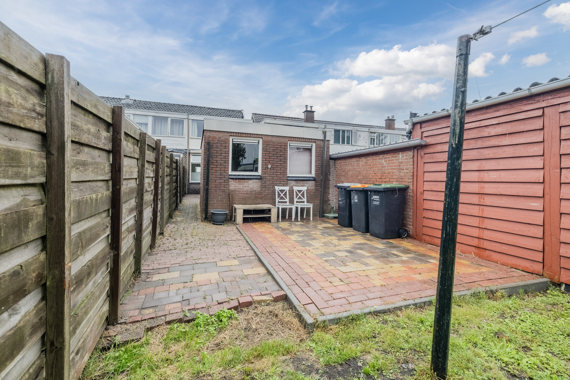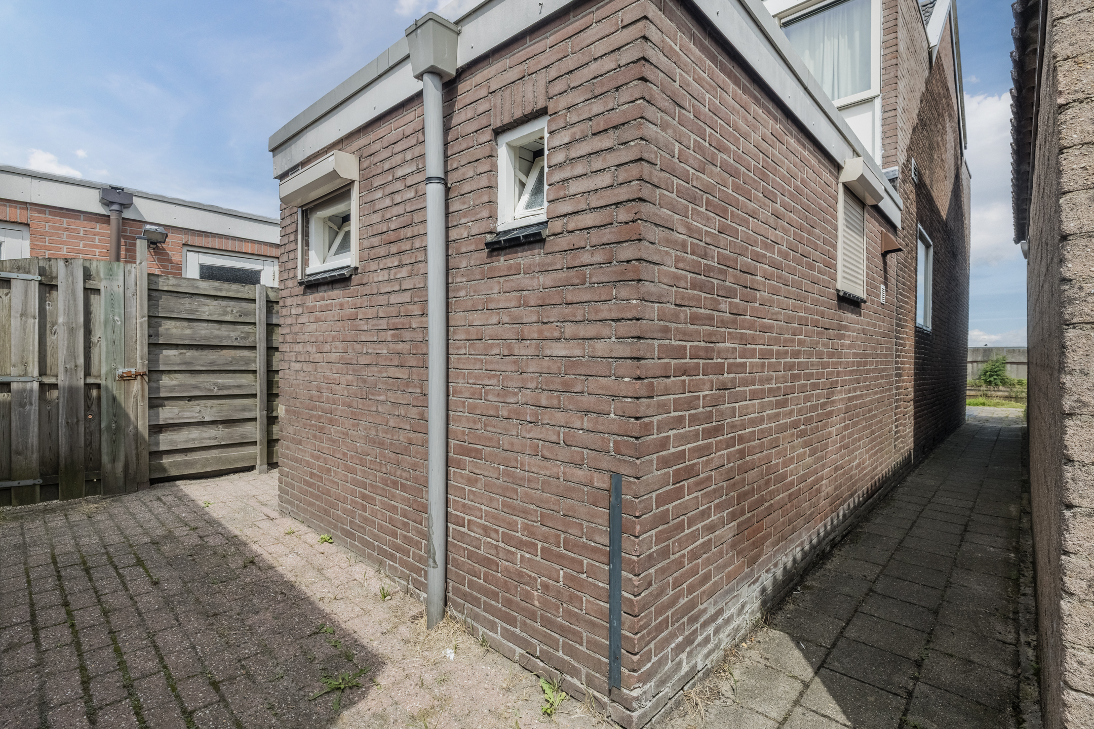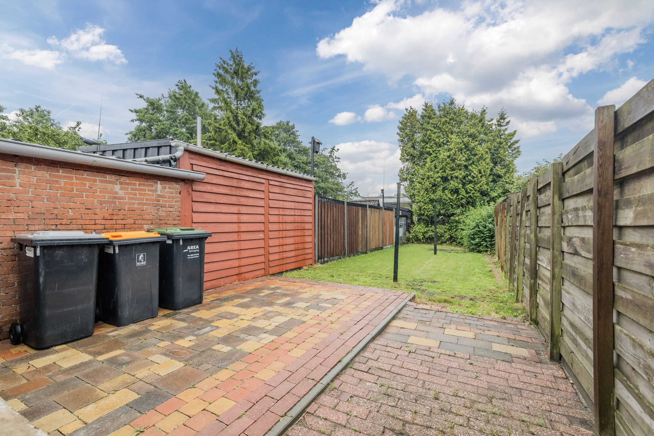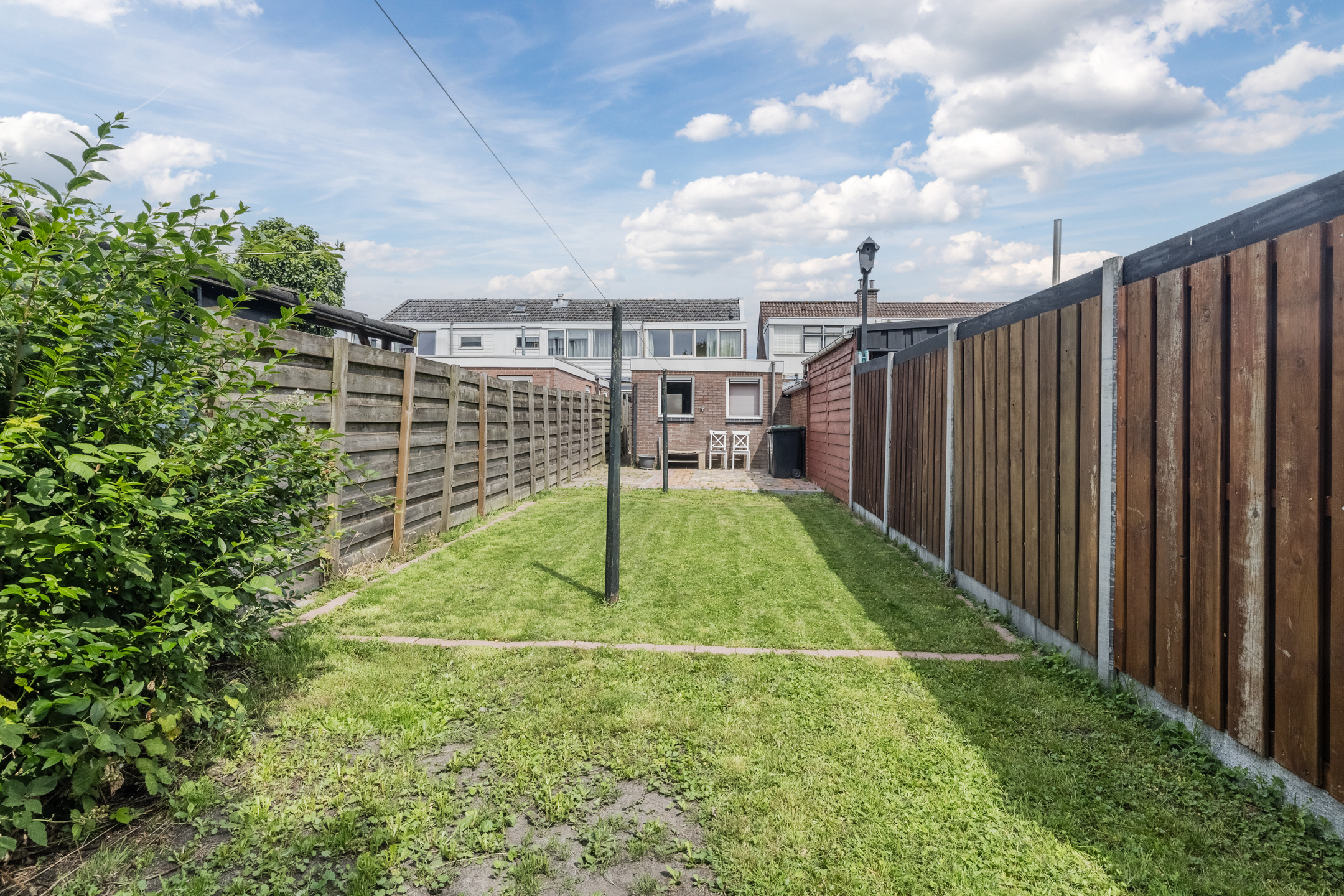 De diepe achtertuin is gelegen op het zuiden, voorzien van een achterom en een ruime stenen berging. Achter de woning geniet je van volop privacy én een groen, een zeldzame plus in deze prijsklasse.