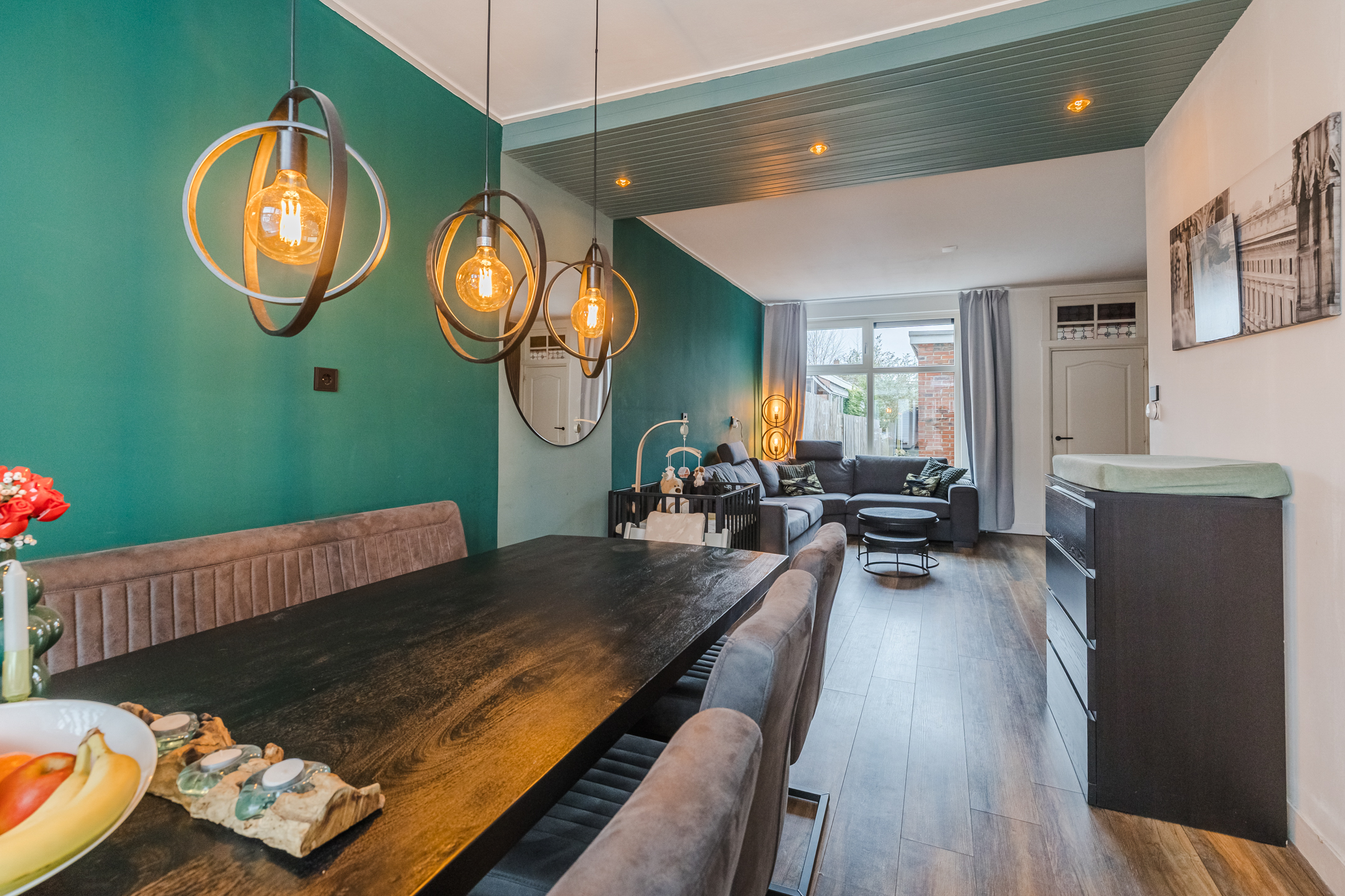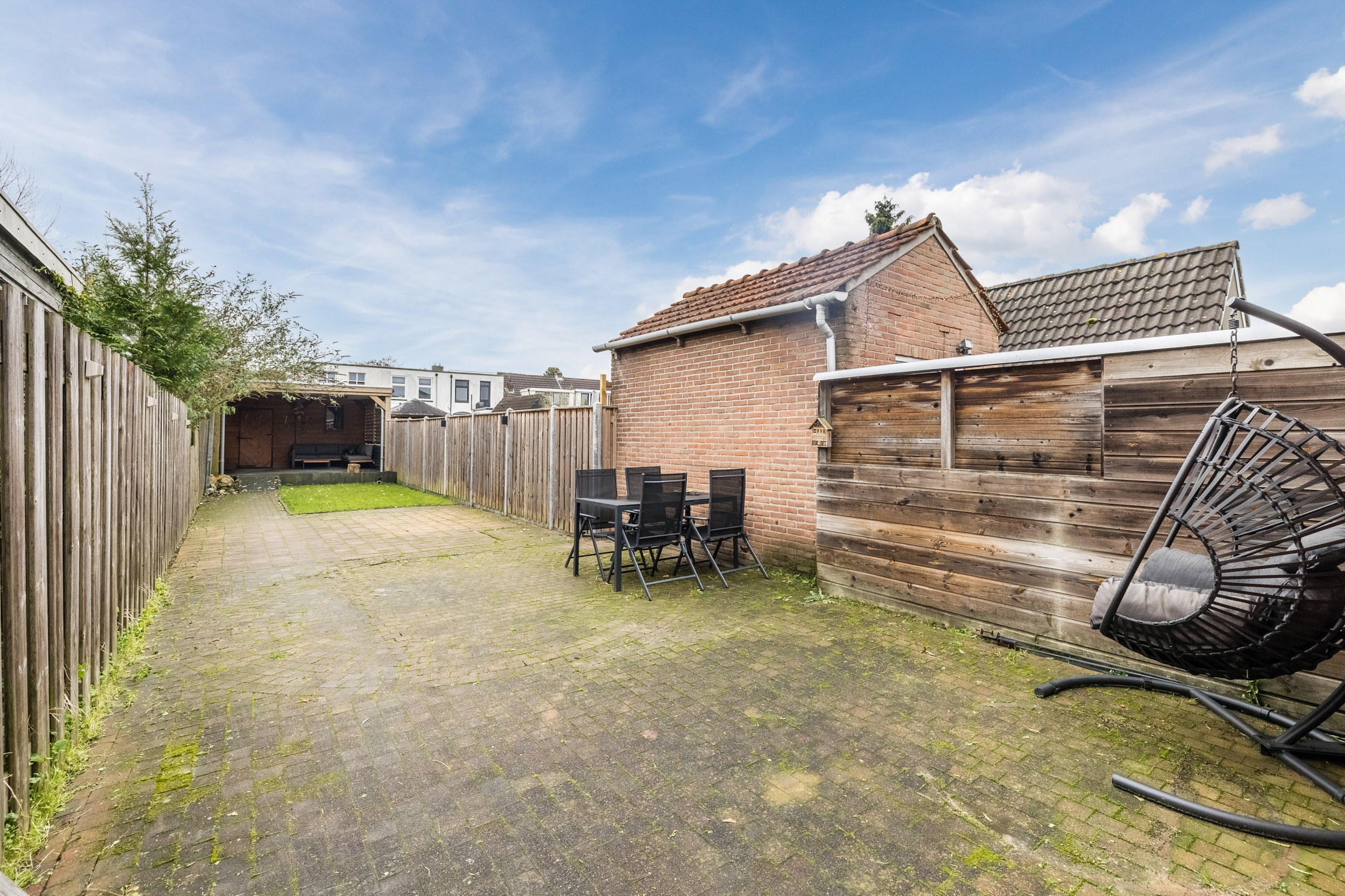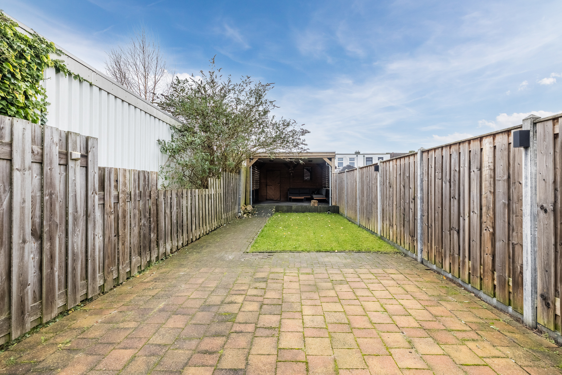 – 28 meter diepe tuin op het zuiden met veranda, achterom en schuur;