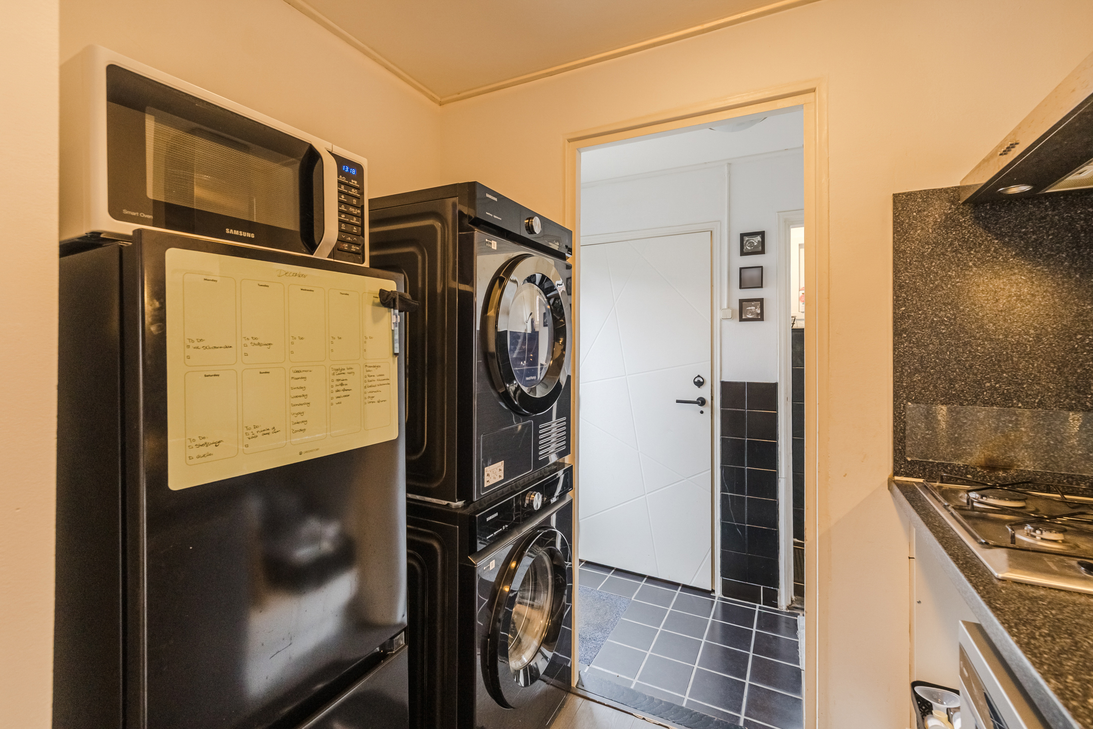 Te bereiken middels vaste trap waar je al je bergspullen kunt opbergen.