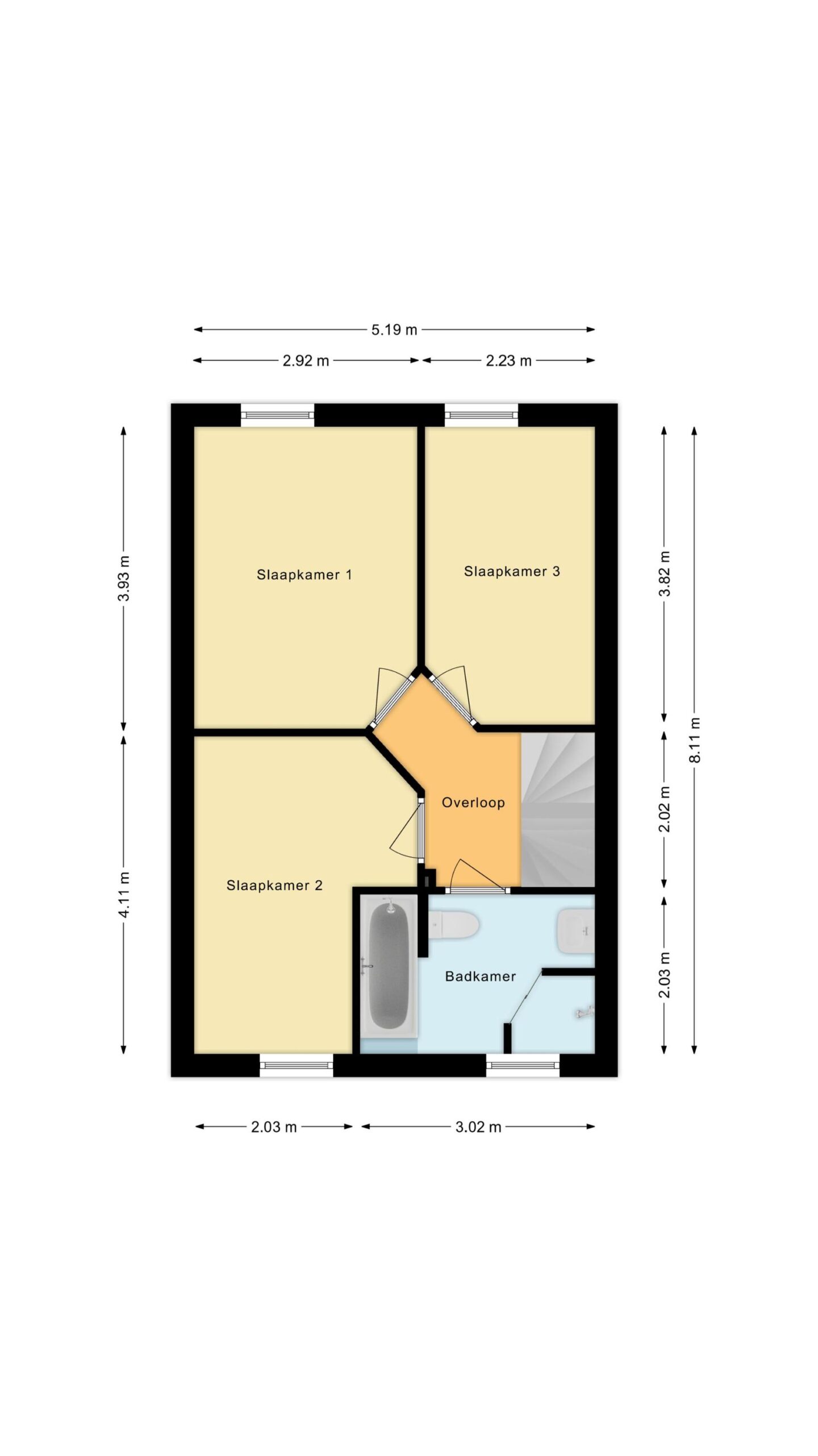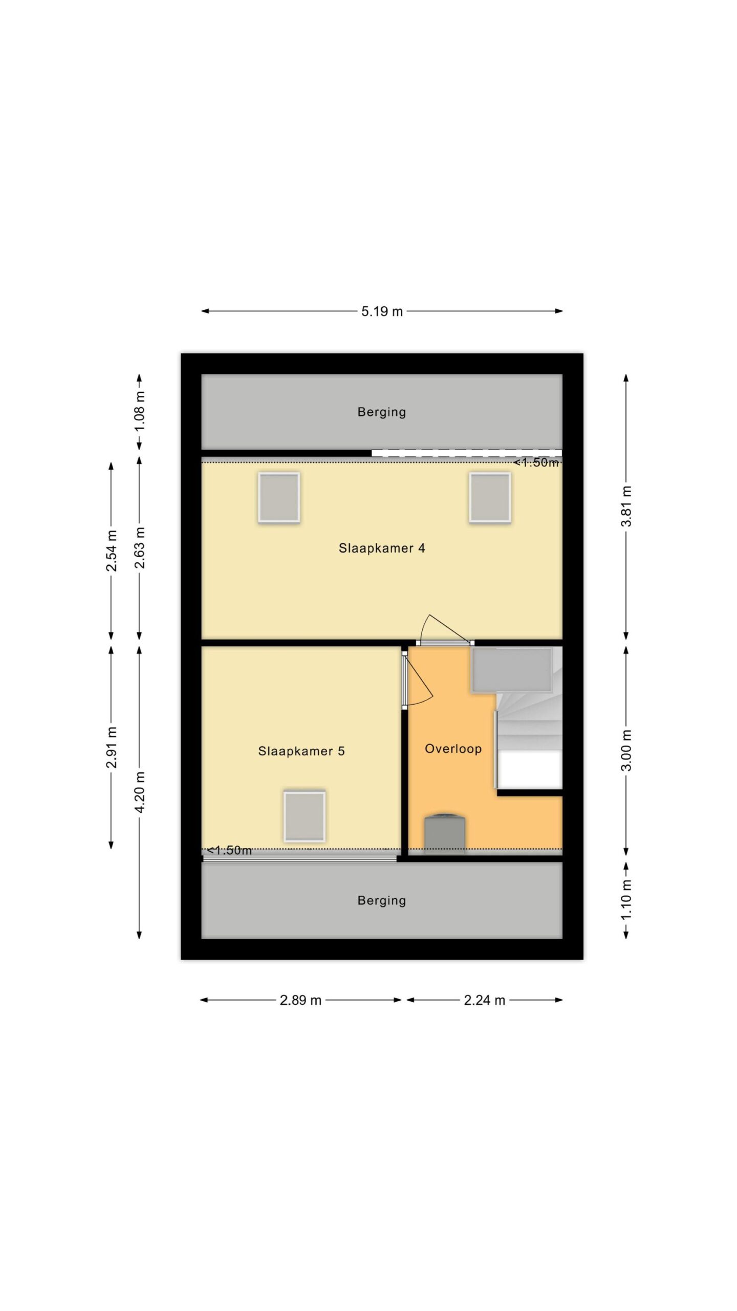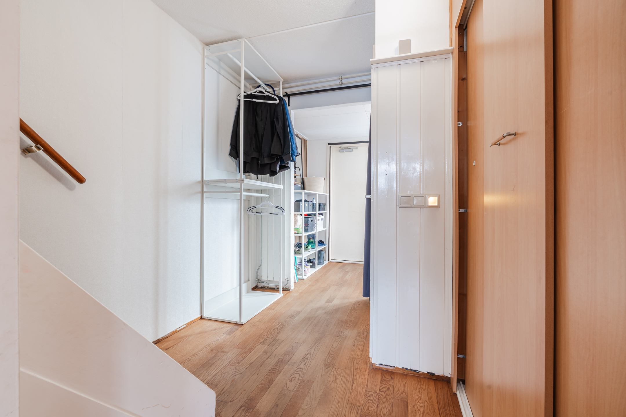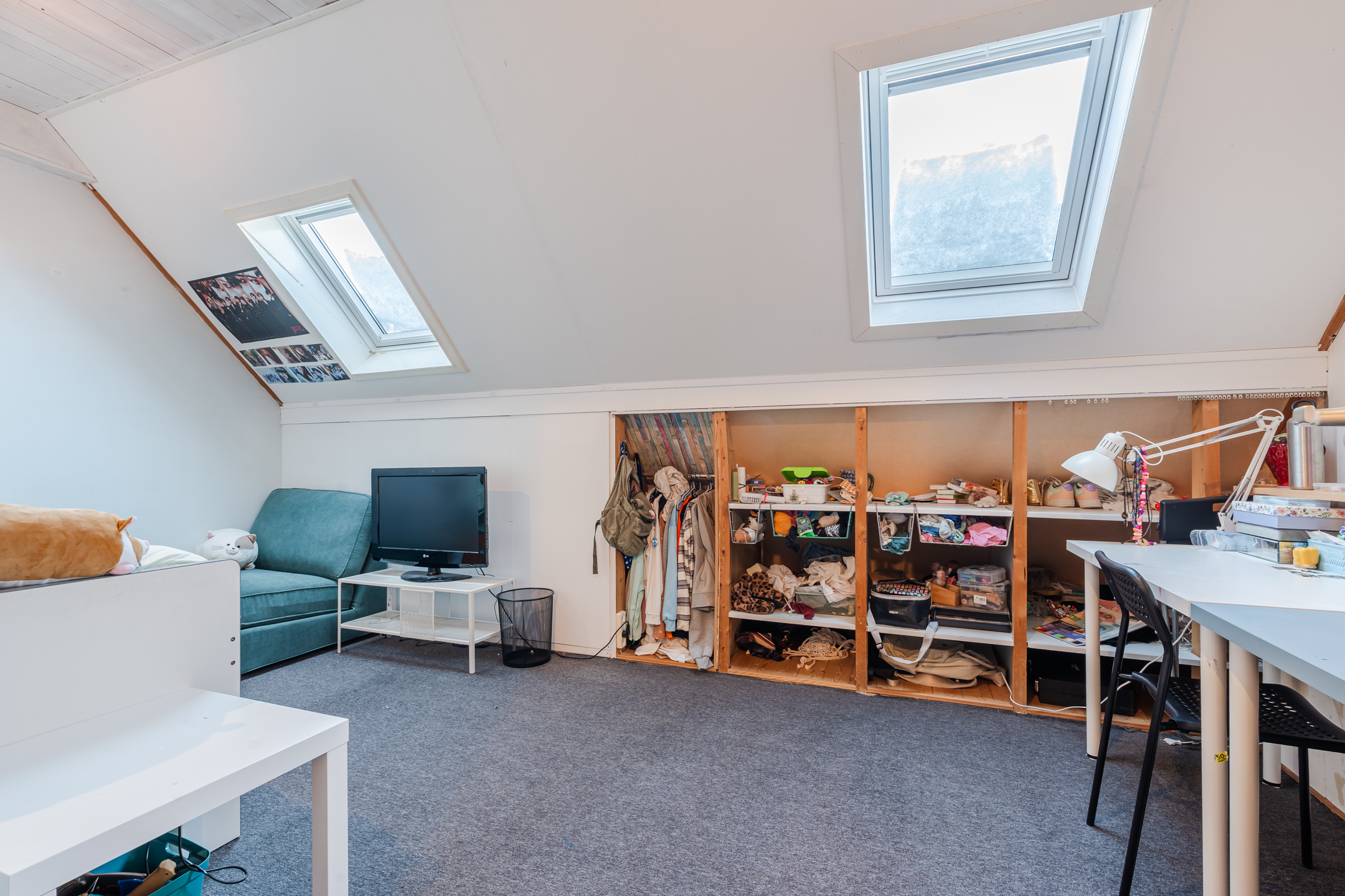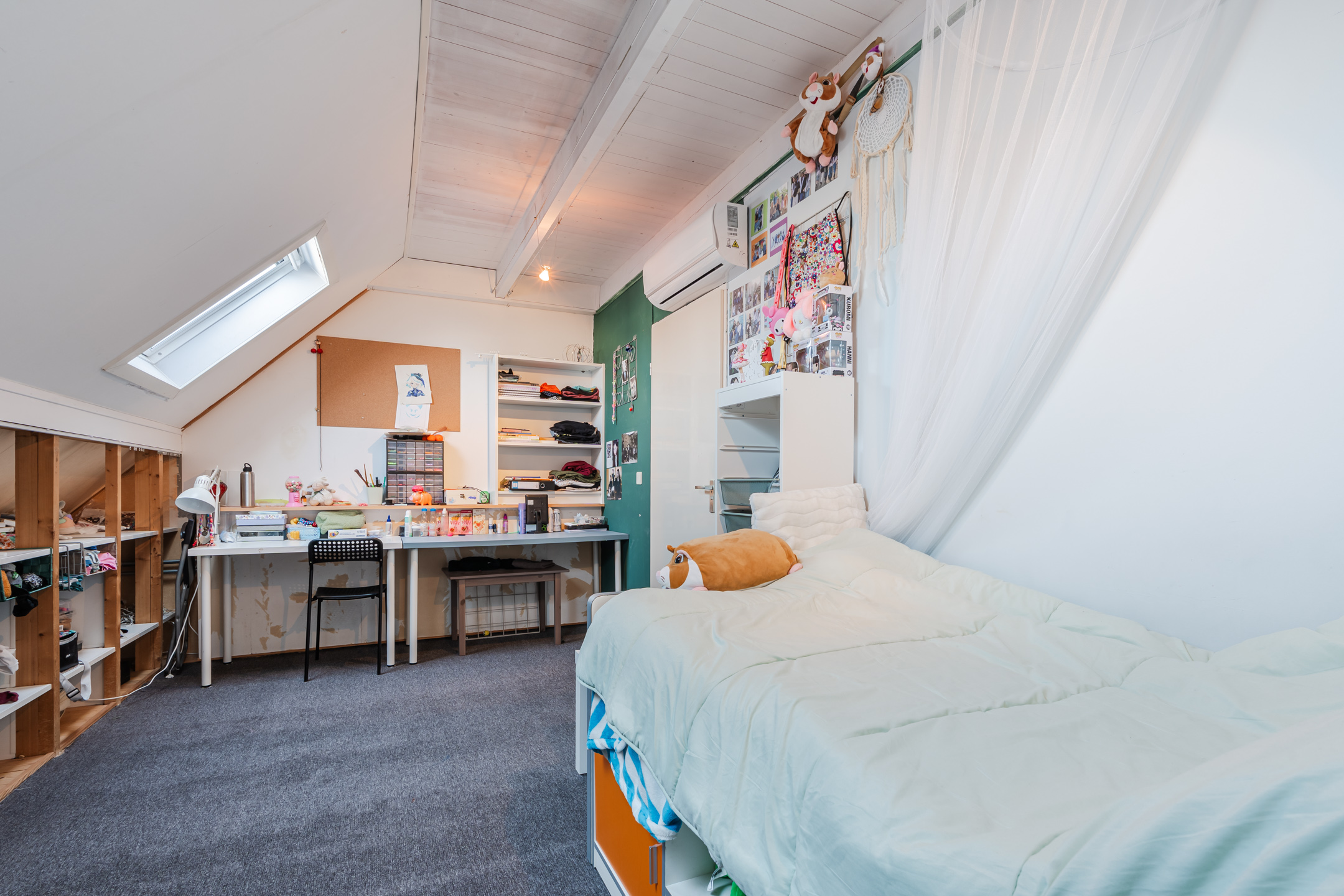 Overloop met nog eens twee slaapkamers, beide eveneens voorzien van airconditioning. Daarnaast is er toegang tot de vliering, perfect voor extra opslag.