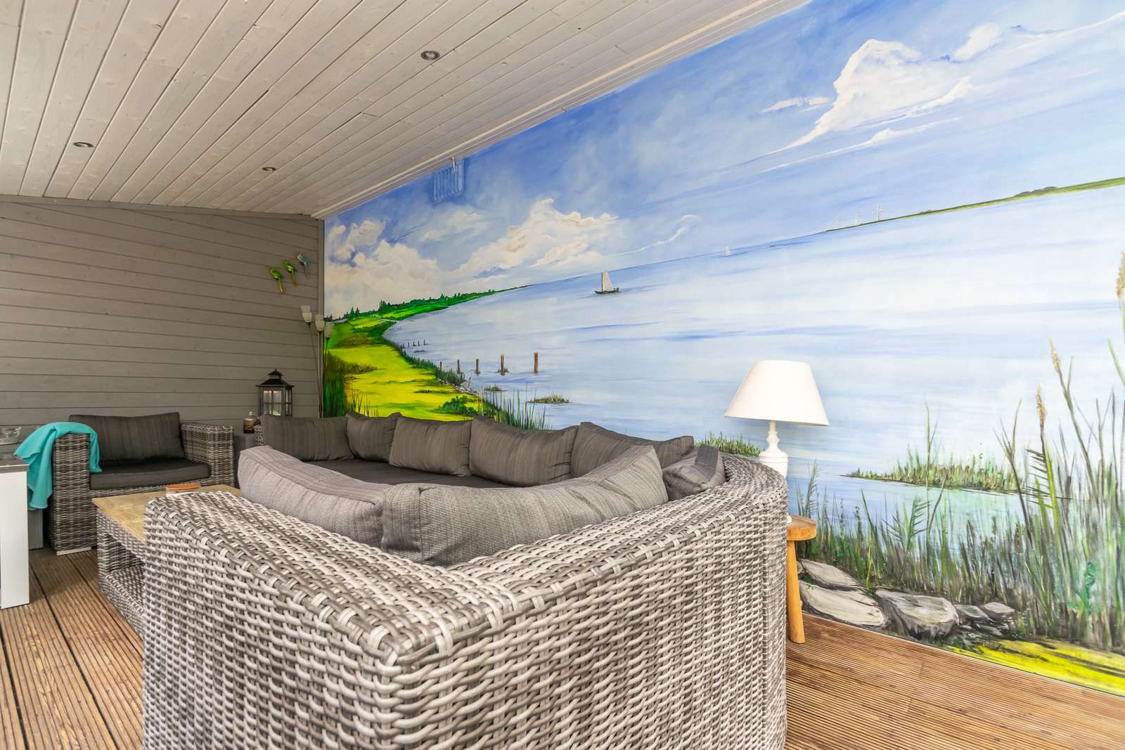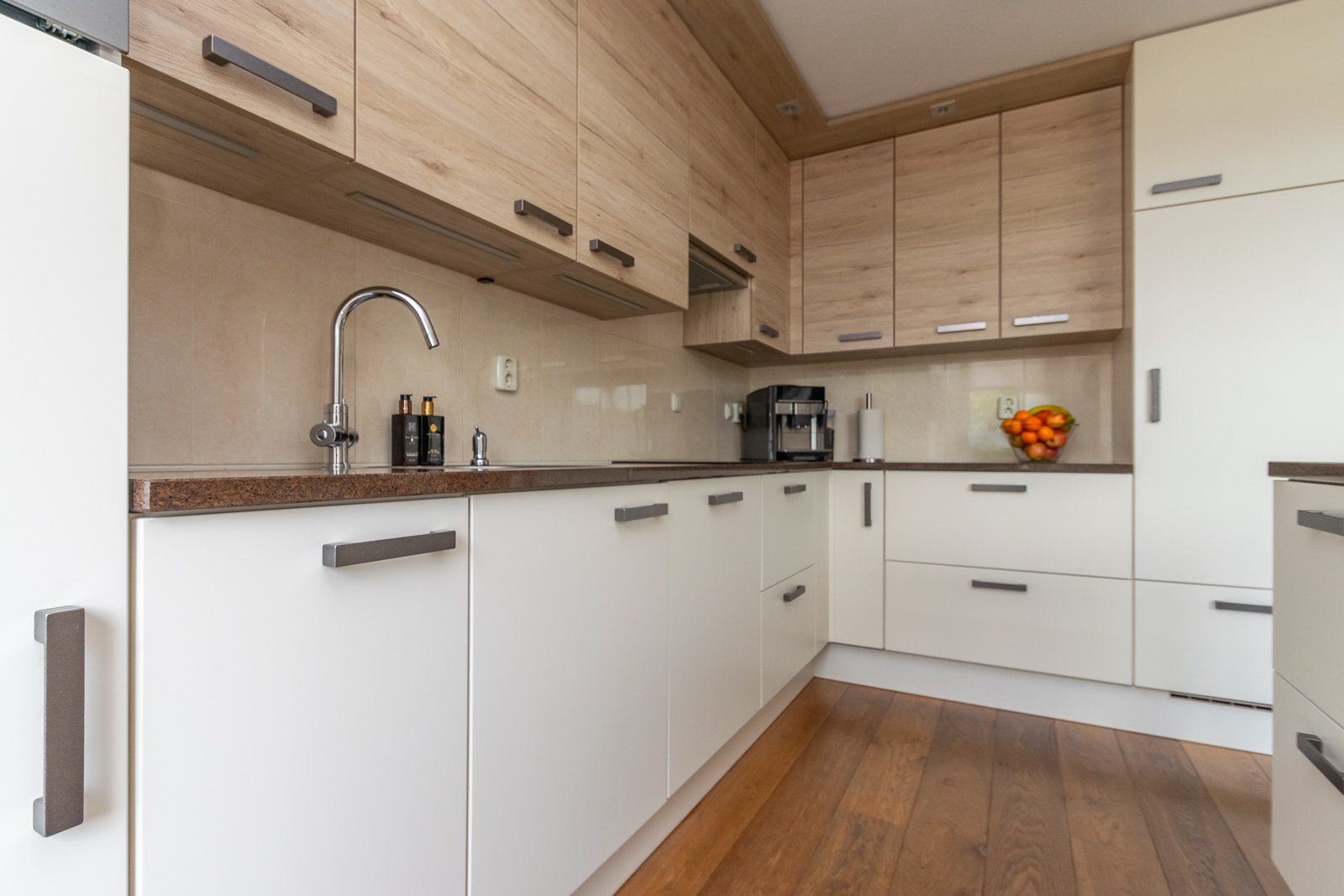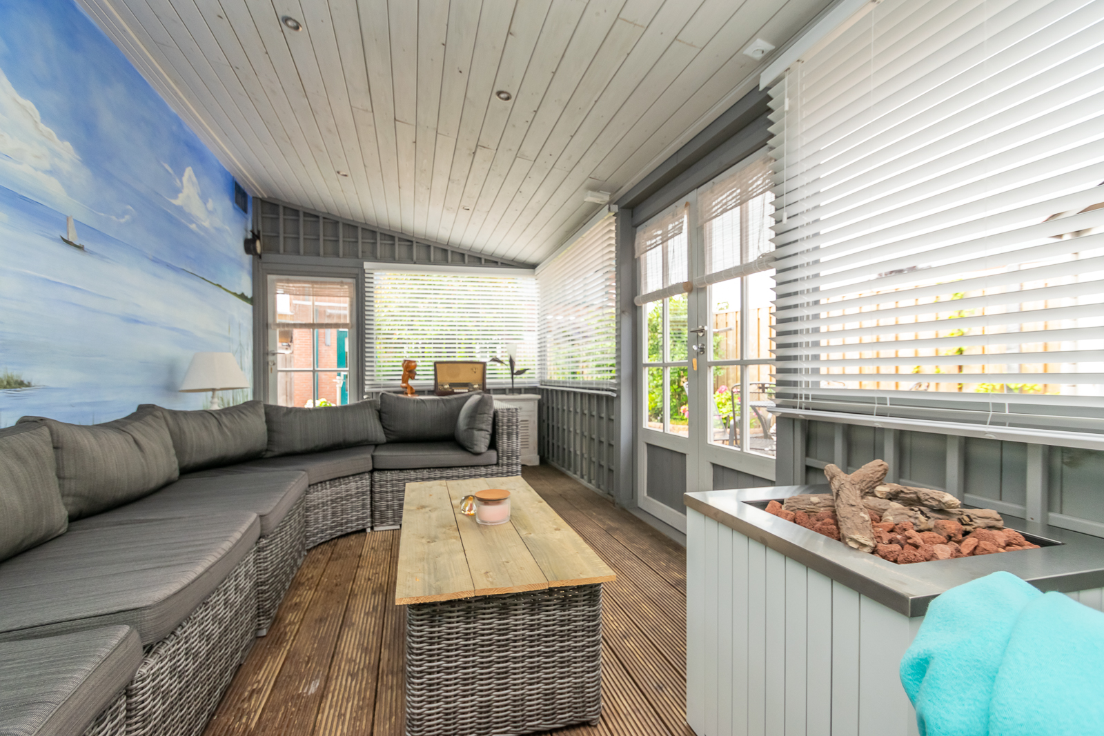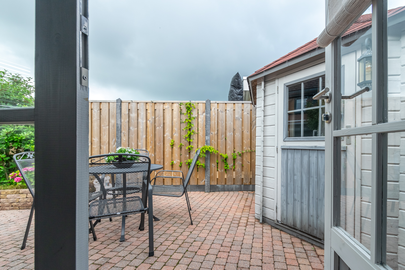 Entree met vernieuwd toilet (2021) en trapopgang naar de verdieping, ruime woonkamer met erker en een sfeervolle gaskachel en een uitgebouwde en complete leefkeuken met alle wenselijke inbouwapparatuur en dubbele tuindeur naar de zonnige tuin. De woonkamer heeft aan de voorzijde screens en bij het terras aan de keukenzijde een groot uitvalscherm.