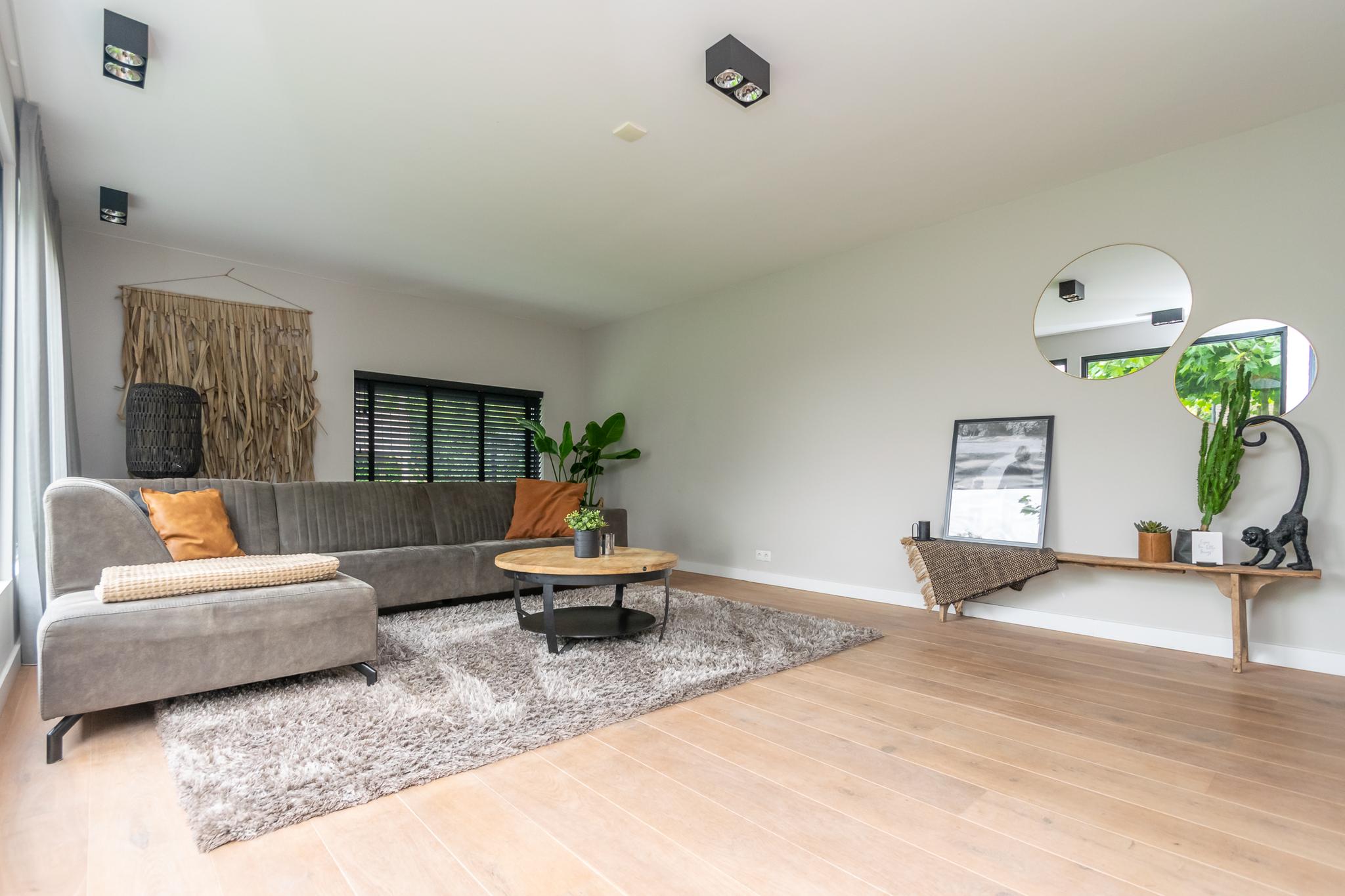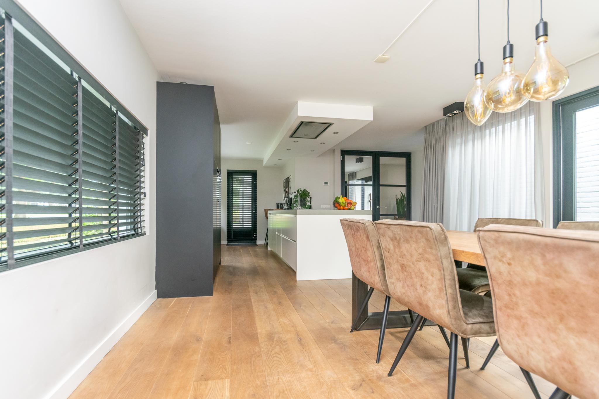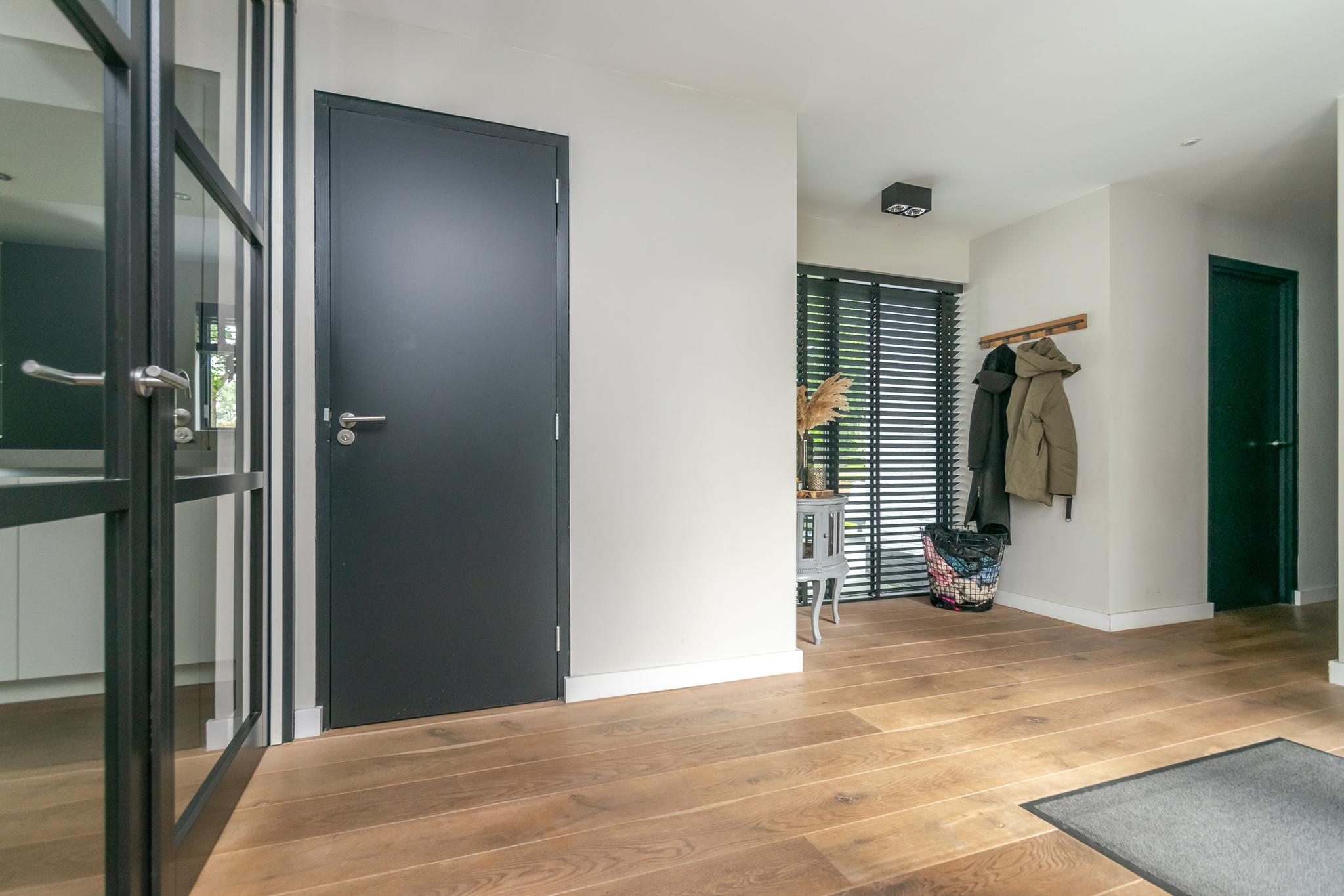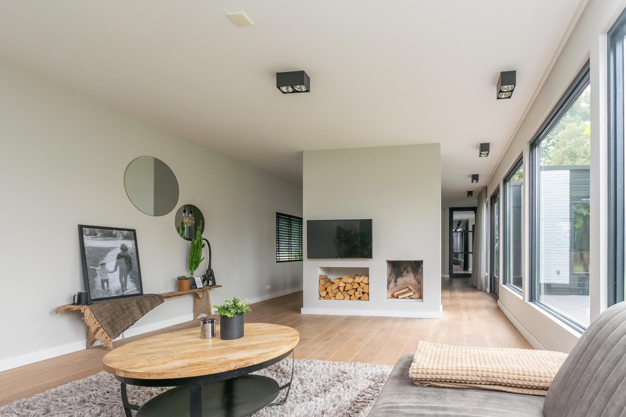 Entree met toilet, woonkamer met sfeervolle haard en een open keuken met dubbele deuren naar de tuin en alle wenselijke inbouwapparatuur, ouderslaapkamer met een walk-in closet met kastenwand en suitebadkamer met toilet, inloopdouche, ligbad en badkamermeubel, 4 slaapkamers waarvan 2 met een walk-in closet en een 2e badkamer met een inloopdouche, badkamermeubel en de voorbereiding voor een toilet en een bijkeuken/berging met meterkast, CV-ketel en witgoedaansluitingen. De woonkamer en keuken zijn voorzien van vloerverwarming en een houtenvloer (toplaag), de wanden zijn glad gestuct.