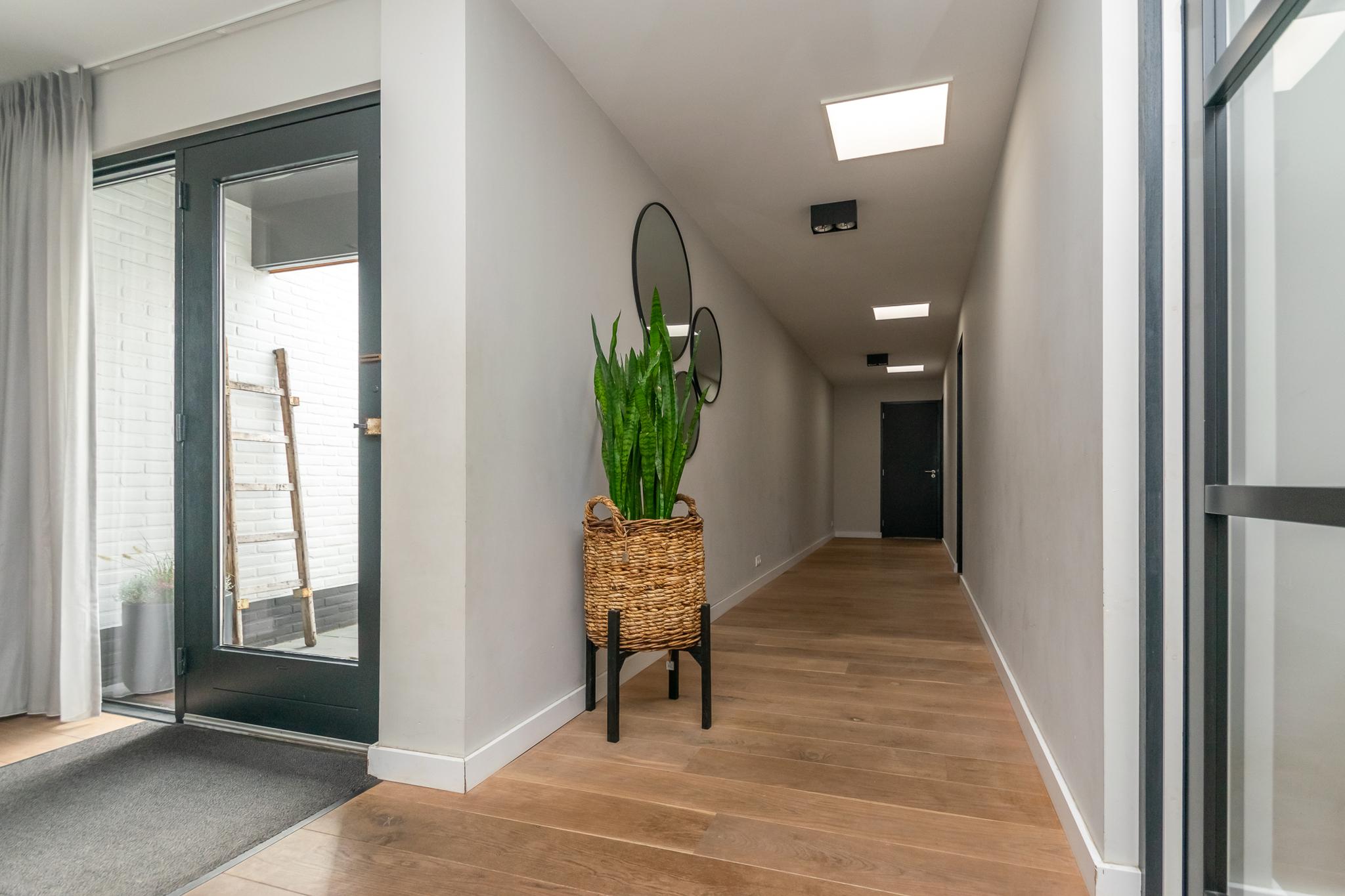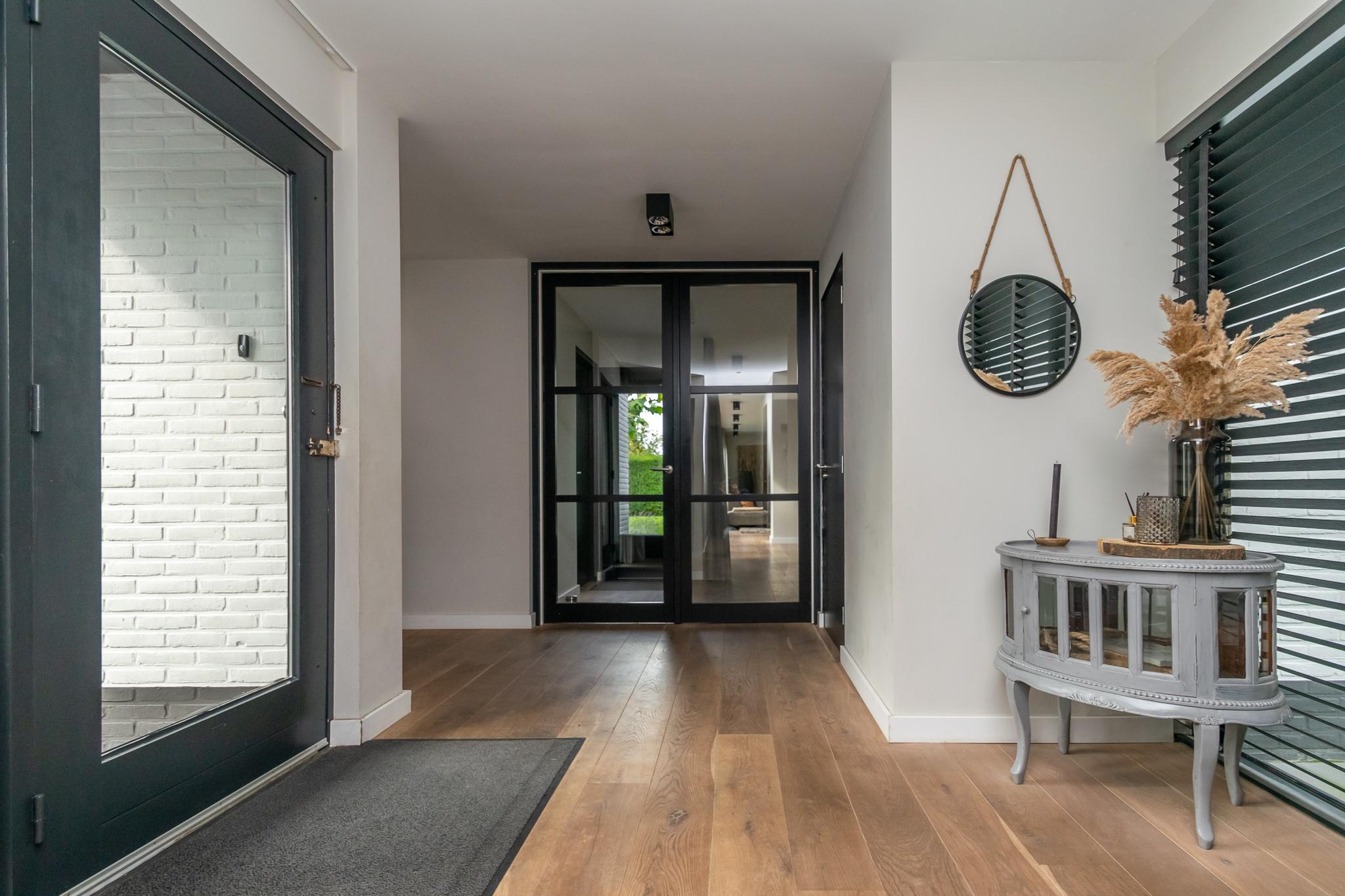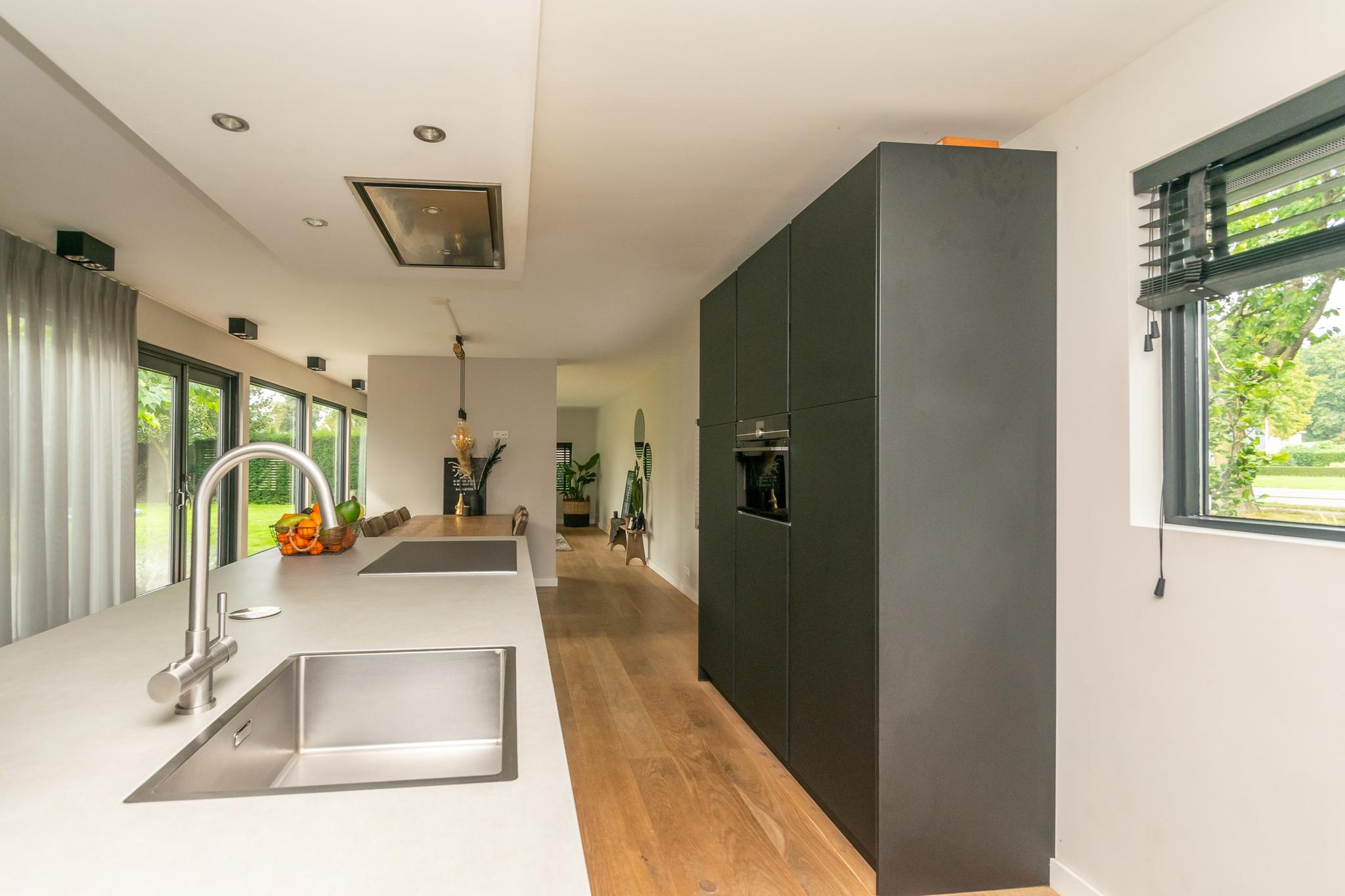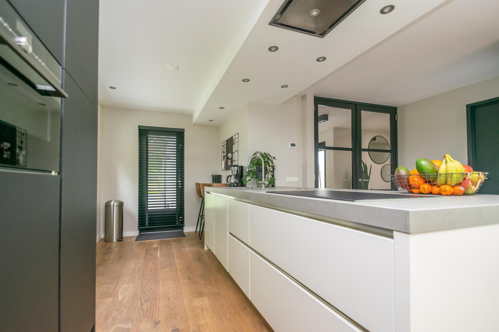 Entree met toilet, woonkamer met sfeervolle haard en een open keuken met dubbele deuren naar de tuin en alle wenselijke inbouwapparatuur, ouderslaapkamer met een walk-in closet met kastenwand en suitebadkamer met toilet, inloopdouche, ligbad en badkamermeubel, 4 slaapkamers waarvan 2 met een walk-in closet en een 2e badkamer met een inloopdouche, badkamermeubel en de voorbereiding voor een toilet en een bijkeuken/berging met meterkast, CV-ketel en witgoedaansluitingen. De woonkamer en keuken zijn voorzien van vloerverwarming en een houtenvloer (toplaag), de wanden zijn glad gestuct.