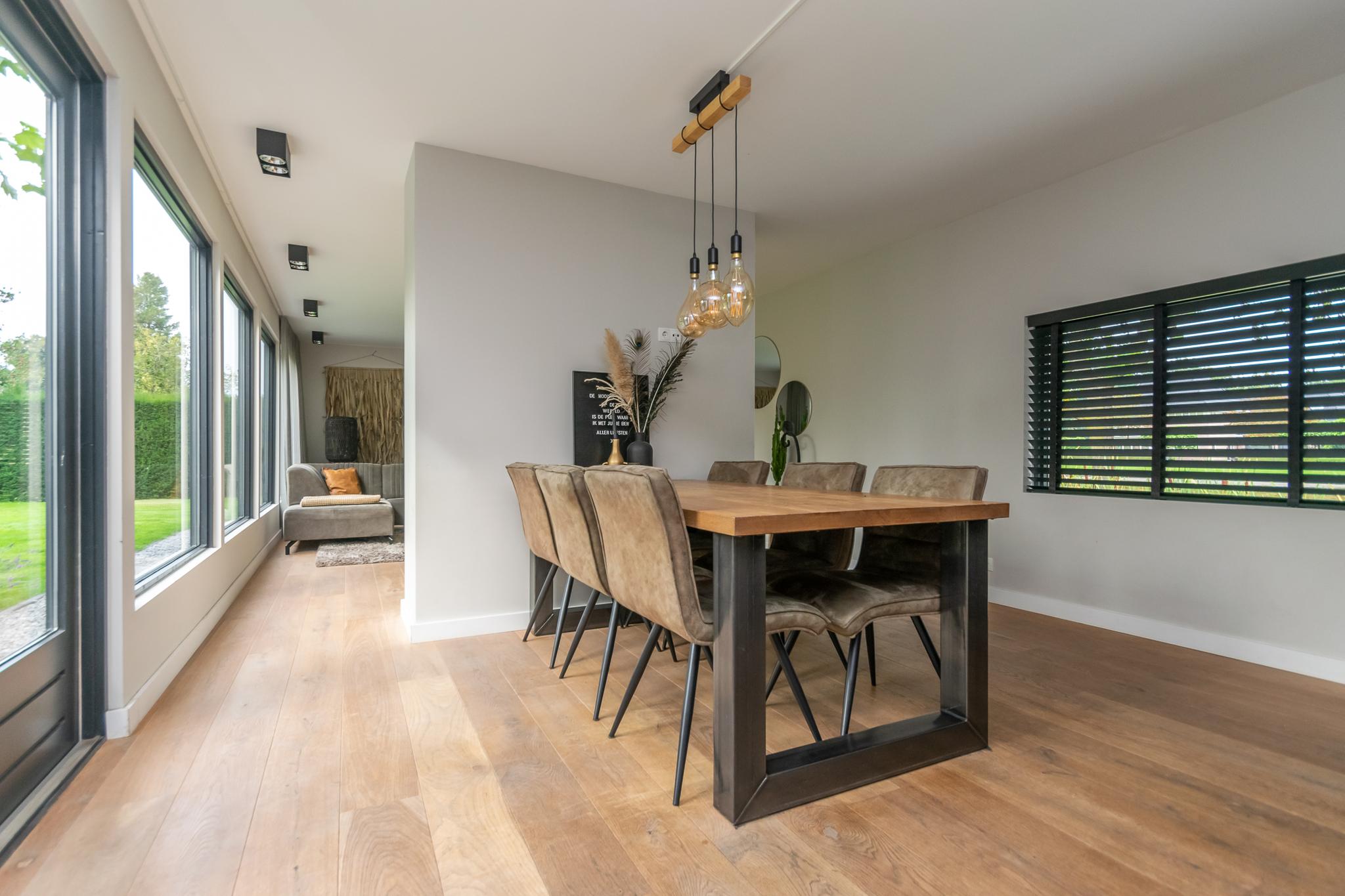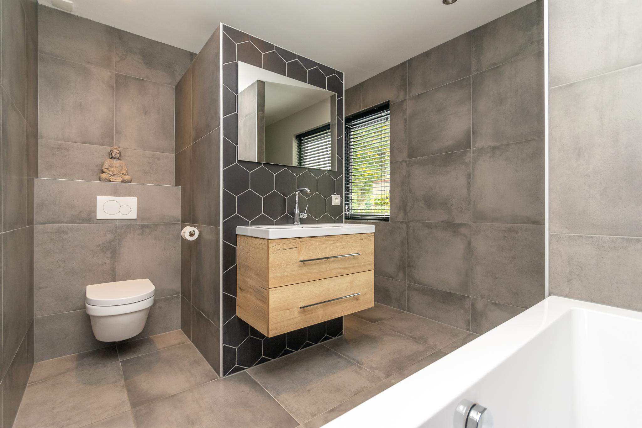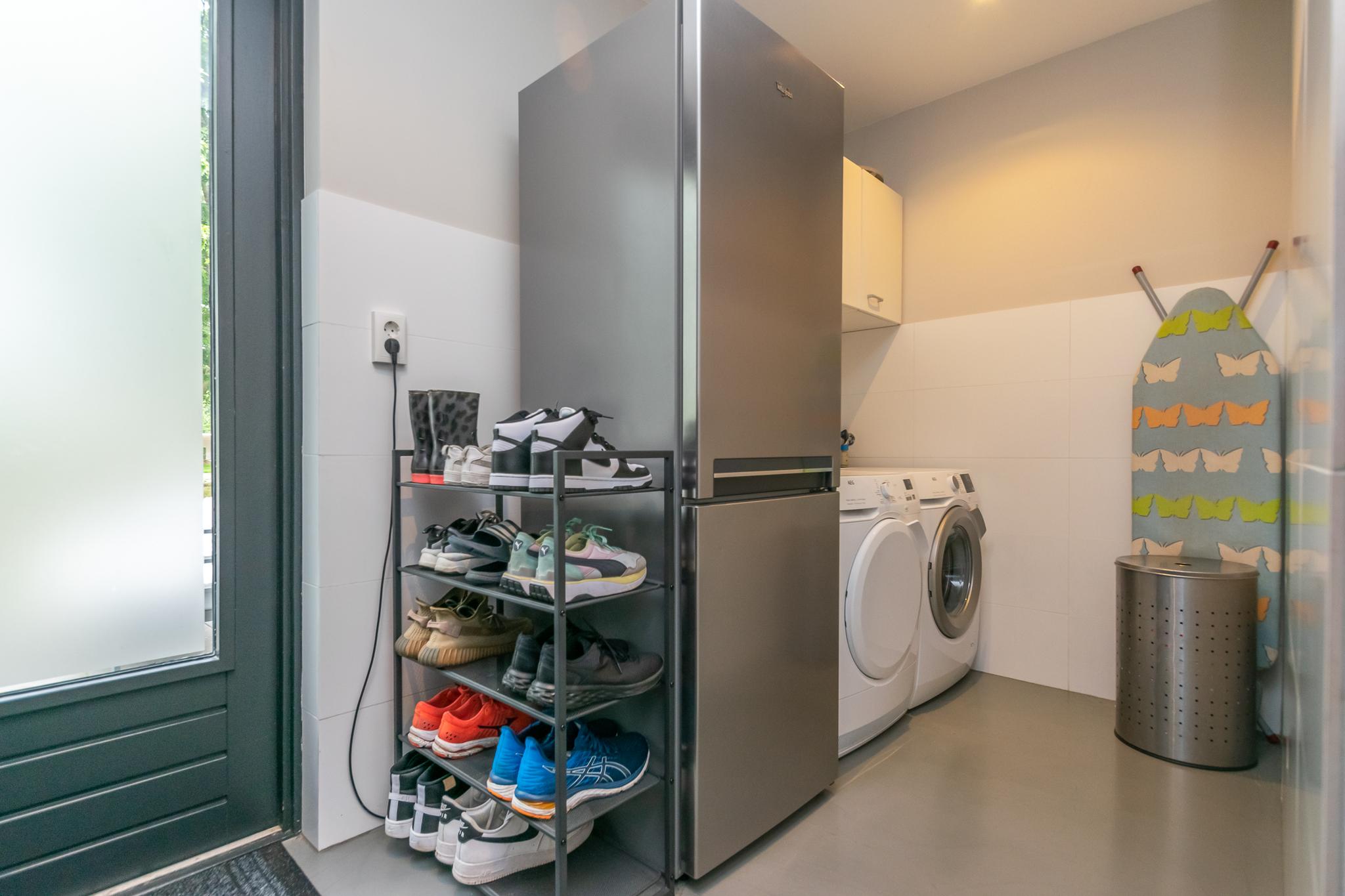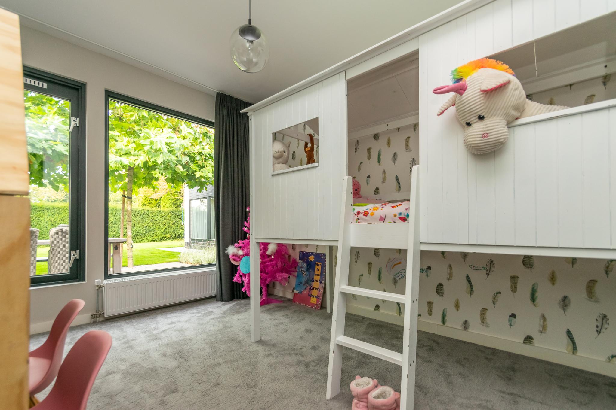 Entree met toilet, woonkamer met sfeervolle haard en een open keuken met dubbele deuren naar de tuin en alle wenselijke inbouwapparatuur, ouderslaapkamer met een walk-in closet met kastenwand en suitebadkamer met toilet, inloopdouche, ligbad en badkamermeubel, 4 slaapkamers waarvan 2 met een walk-in closet en een 2e badkamer met een inloopdouche, badkamermeubel en de voorbereiding voor een toilet en een bijkeuken/berging met meterkast, CV-ketel en witgoedaansluitingen. De woonkamer en keuken zijn voorzien van vloerverwarming en een houtenvloer (toplaag), de wanden zijn glad gestuct.