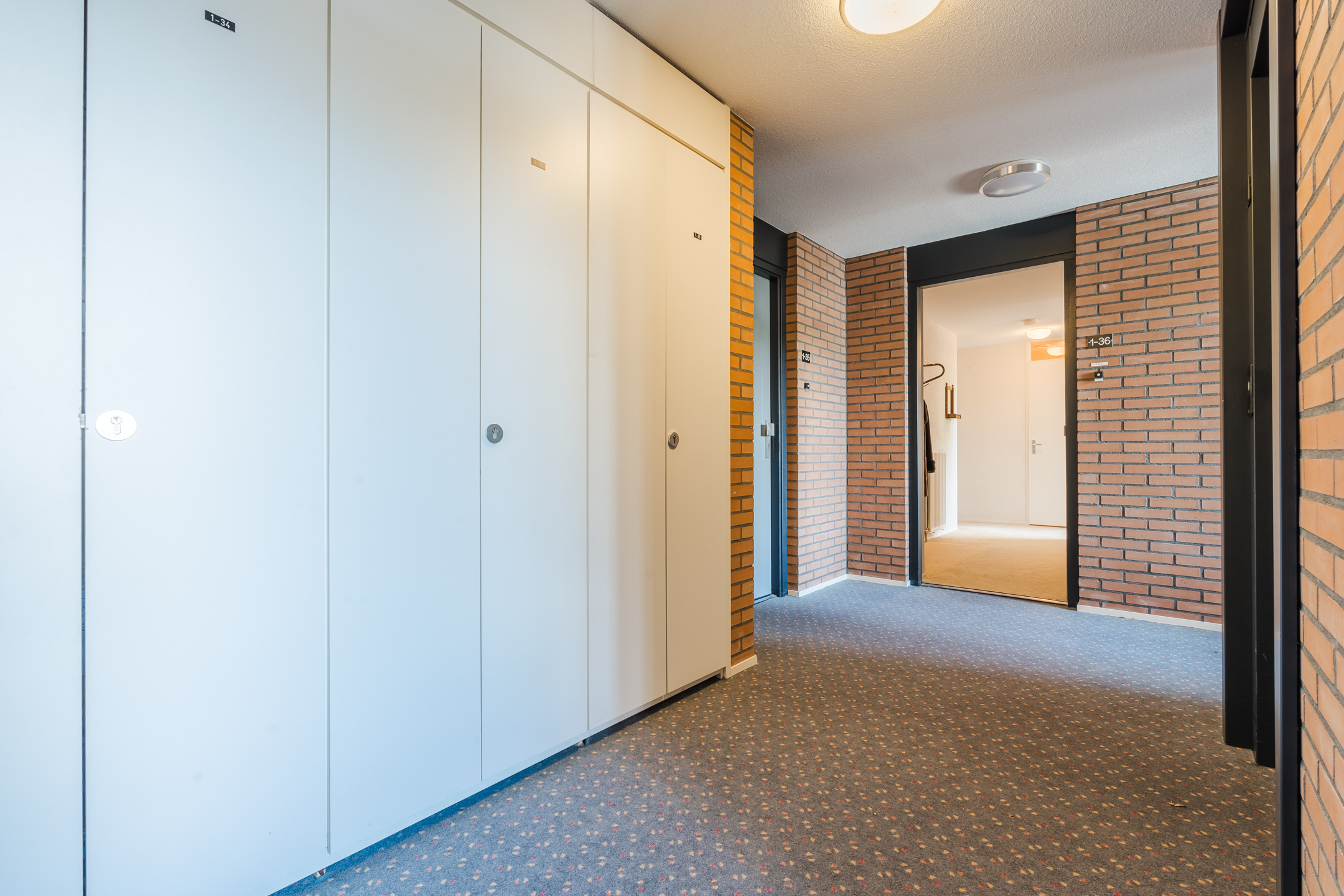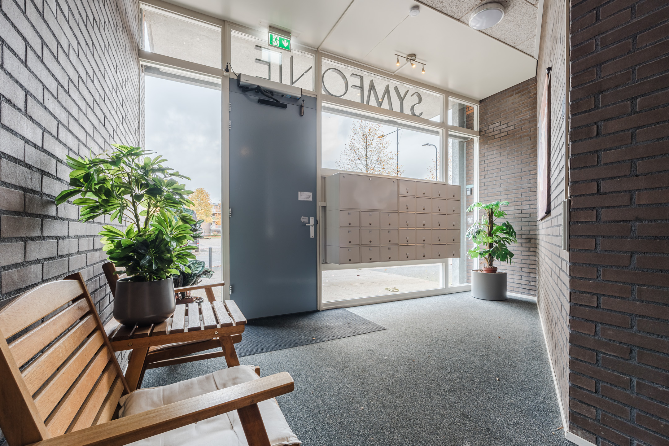 Centrale entree met intercomsysteem, brievenbussen, toegang tot de parkeerplaatsen en bergingen. Het appartementencomplex beschikt over een ruime lift en een trapopgang naar de verdiepingen.