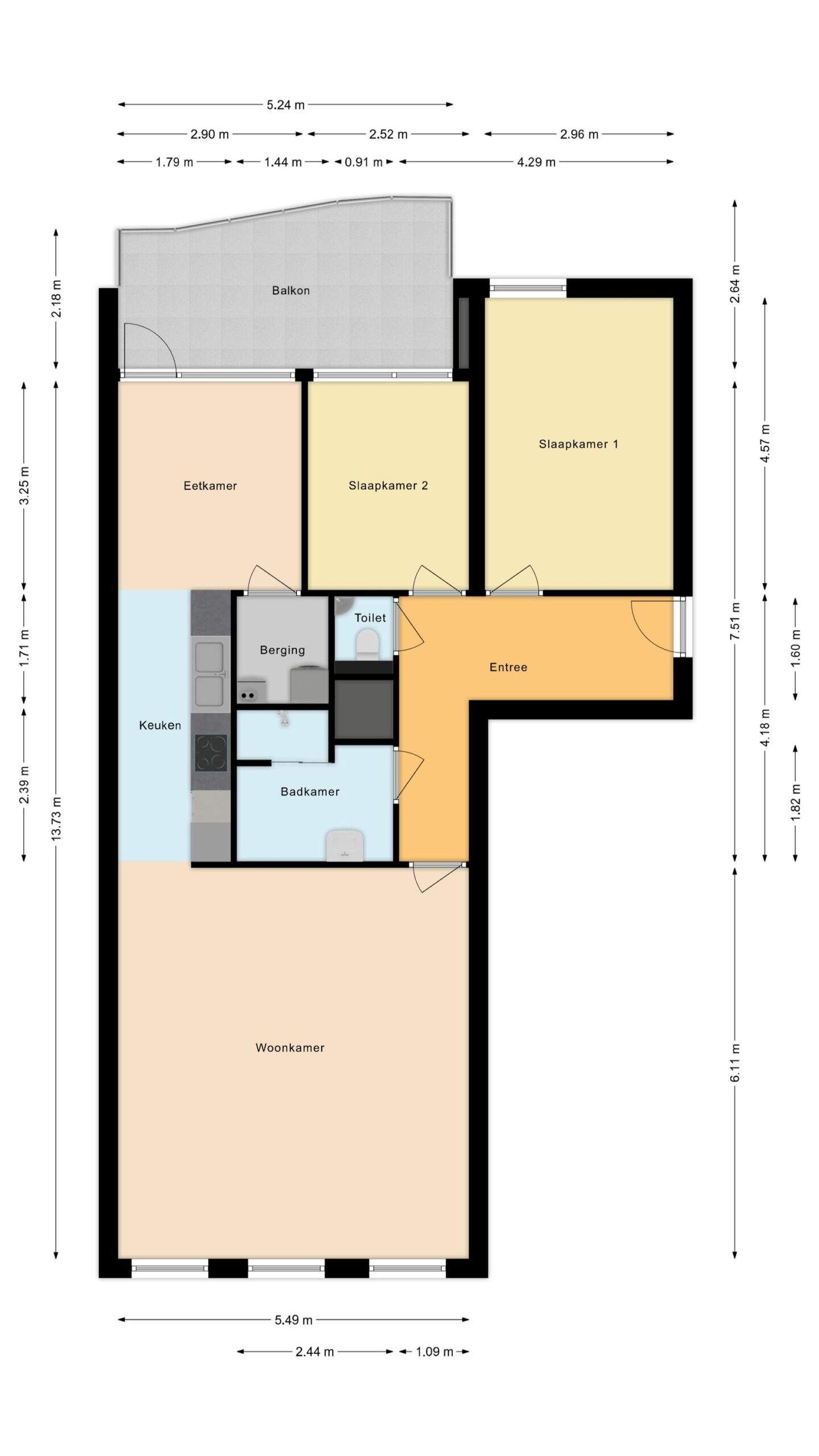 Entree met toilet, 2 slaapkamers, badkamer met een royale douche (inclusief betegelde zitbank) en een fraai wastafelmeubel. Ruime en lichte woonkamer met een halfopen keuken voorzien van een 4-pits keramische kookplaat, afzuigkap, vaatwasser, combimagnetron, koelkast en een diepvries. Doorloop naar de eetkamer, die grenst aan een groot balkon gelegen op het zuidwesten. Daarnaast is er een bijkeuken met de cv-opstelling, de mechanische ventilatie (2024) en ruimte voor de plaatsing van een wasmachine en wasdroger. In het naastgelegen gebouw, grenzend aan een door en hek afgesloten parkeerplaats bevindt zich een ruime droge bergruimte voor fietsen en andere benodigdheden.