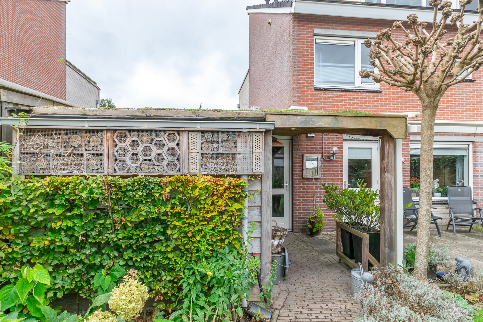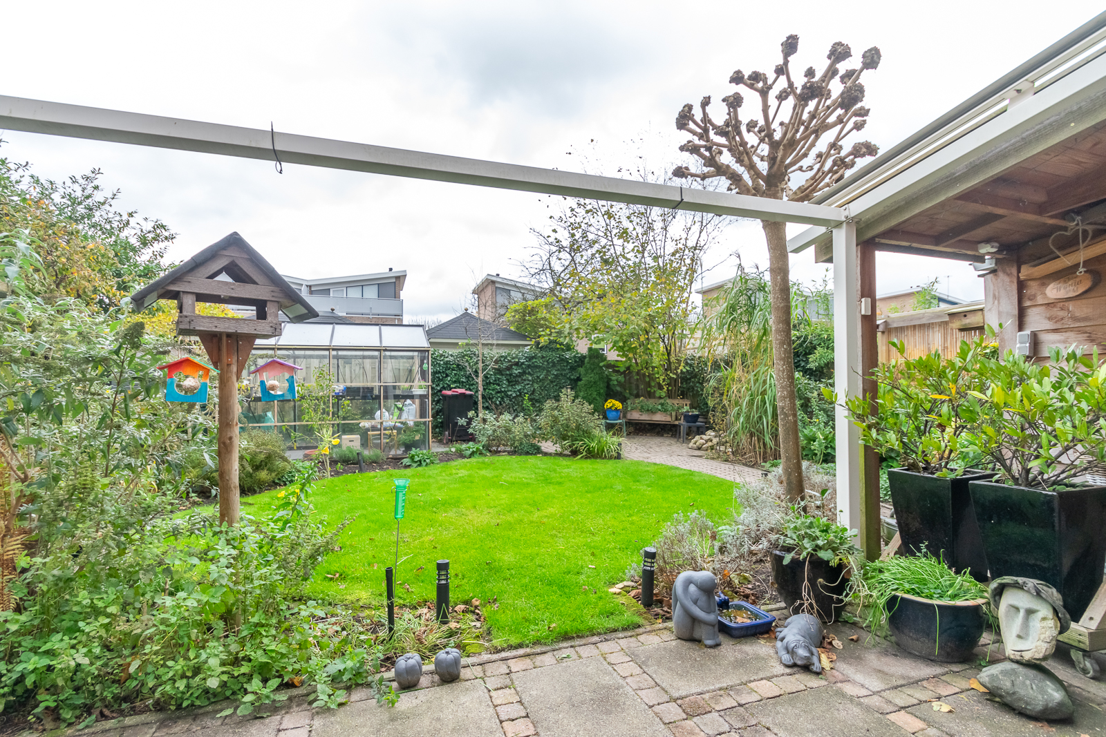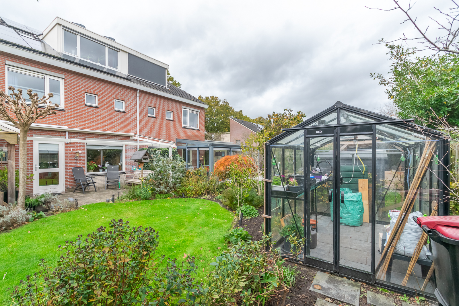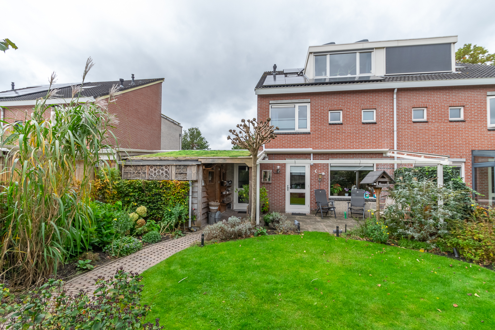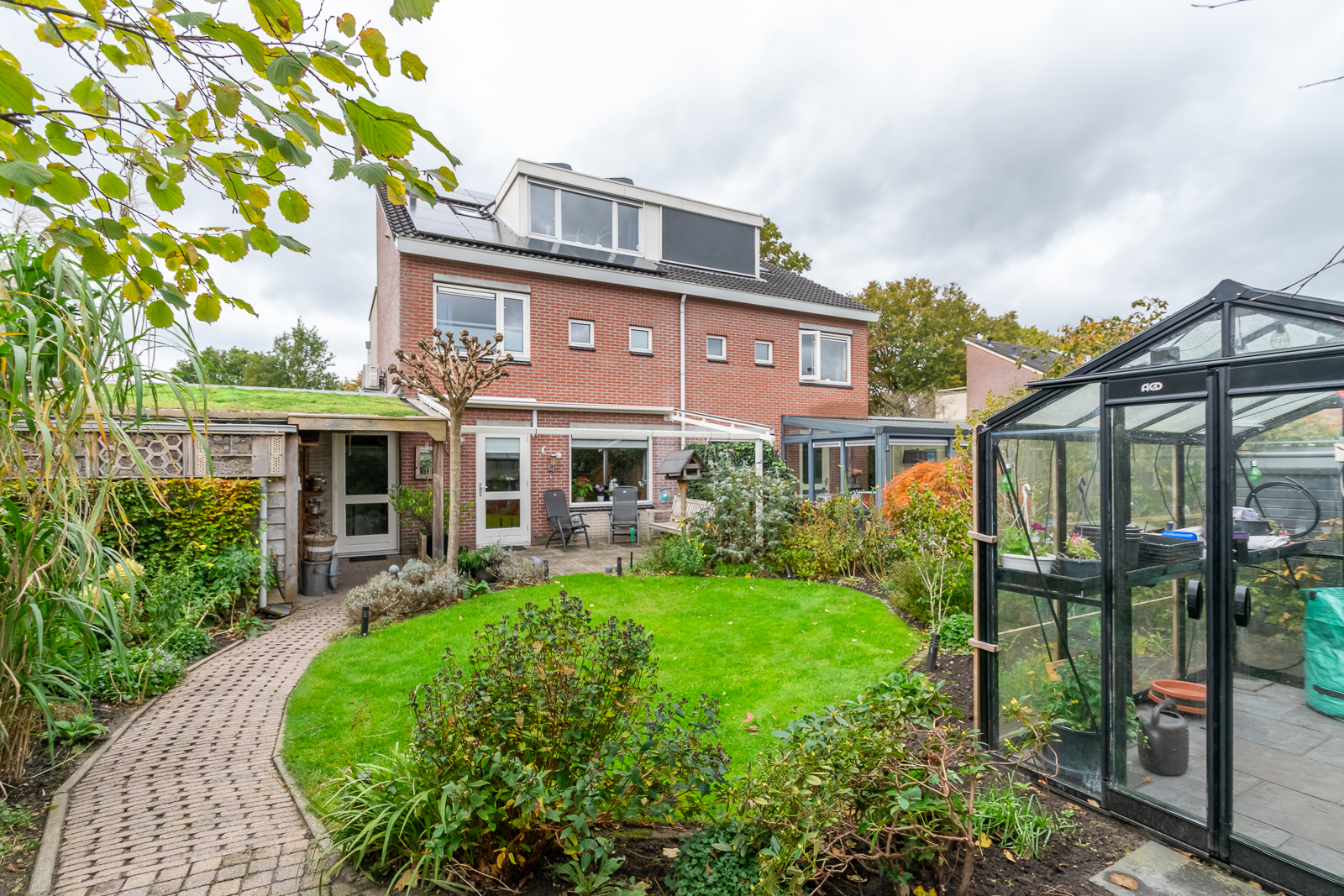 Zeer ruime en energiezuinige half vrijstaande woning met 4 slaapkamers, dakterras, garage en ruime carport. Deze woning heeft 20 kleine zonnepanelen met een opbrengst van ca. 3.400 kWh per jaar en staat in een kindvriendelijke en ruim opgezette woonwijk, nabij scholen, speelplaatsen, winkelcentrum en op enkele fietsminuten van het centrum. De fraai aangelegde tuin met tuinhuisje met cedumdak, kas (ter overname) en een elektrisch uitvalscherm op een frame bij het terras.