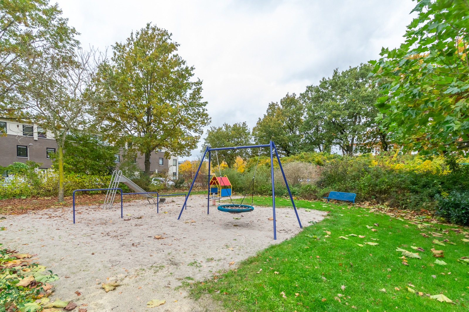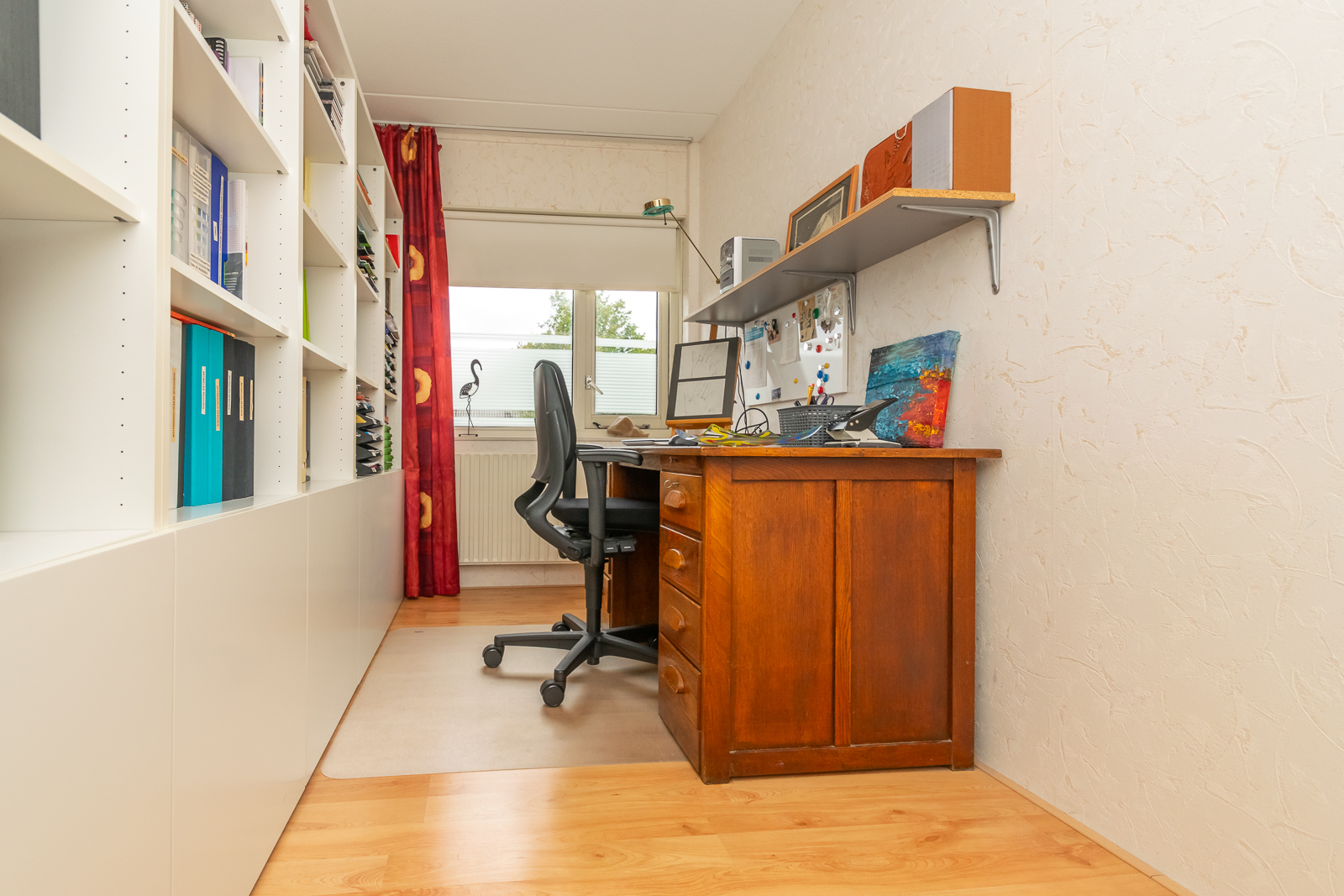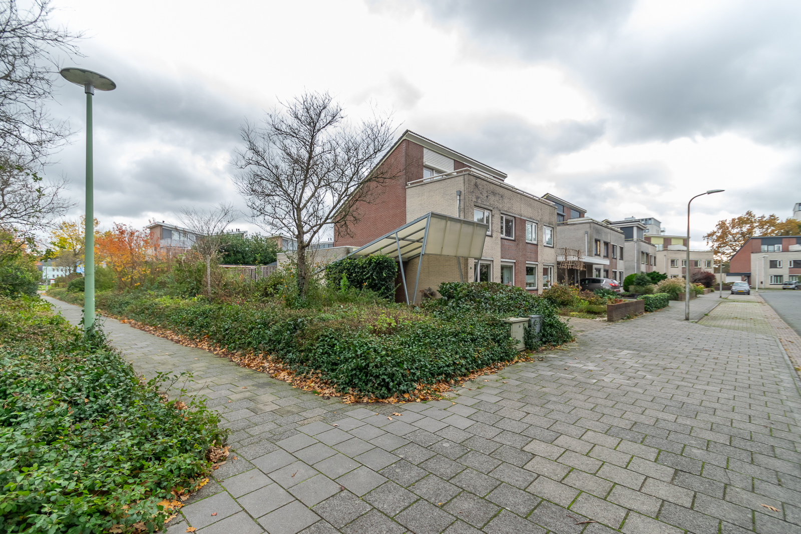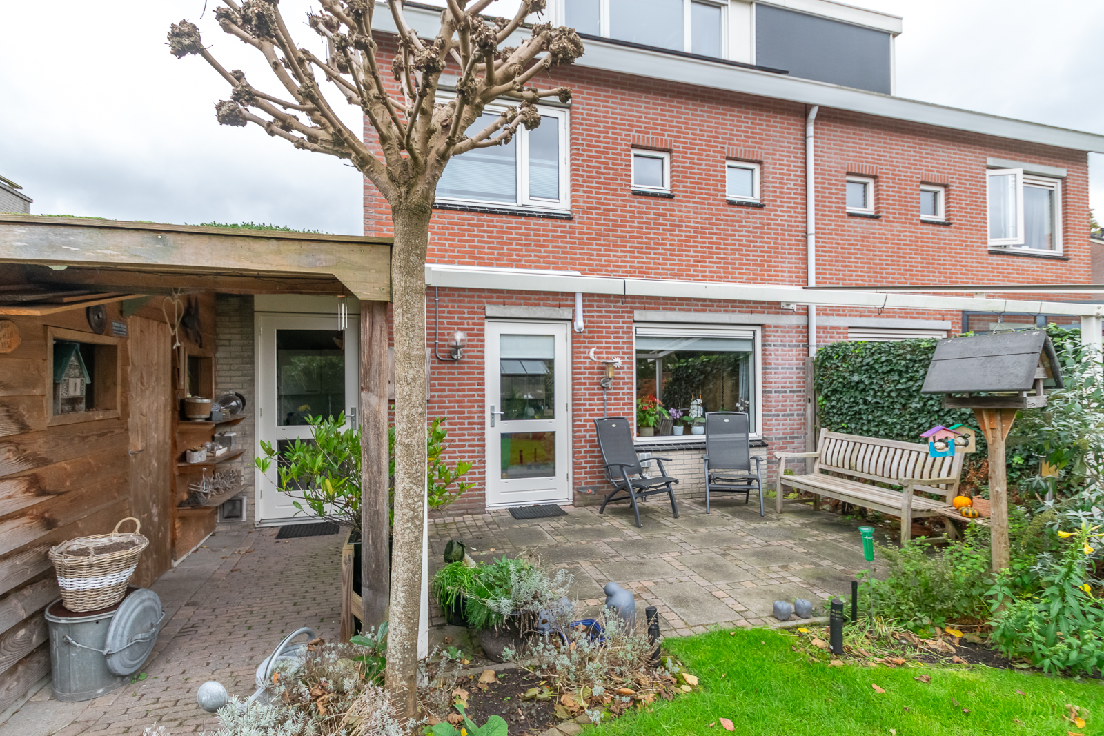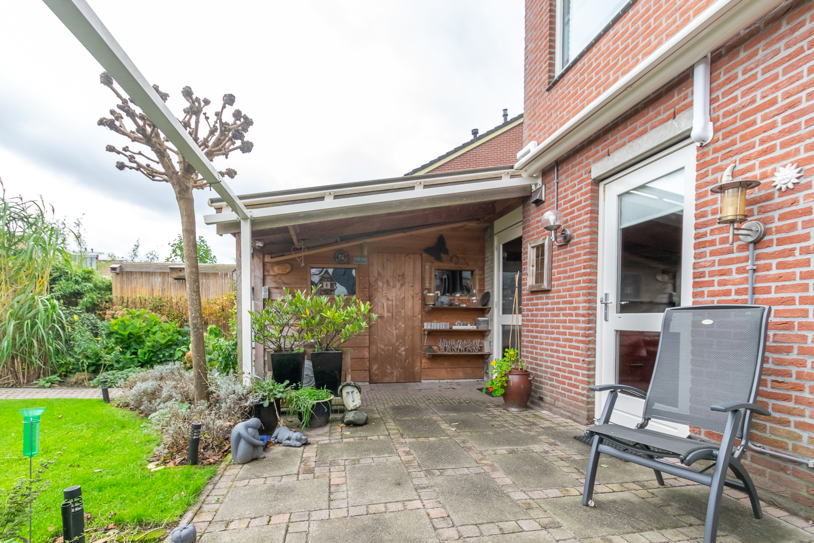 Zeer ruime en energiezuinige half vrijstaande woning met 4 slaapkamers, dakterras, garage en ruime carport. Deze woning heeft 20 kleine zonnepanelen met een opbrengst van ca. 3.400 kWh per jaar en staat in een kindvriendelijke en ruim opgezette woonwijk, nabij scholen, speelplaatsen, winkelcentrum en op enkele fietsminuten van het centrum. De fraai aangelegde tuin met tuinhuisje met cedumdak, kas (ter overname) en een elektrisch uitvalscherm op een frame bij het terras.