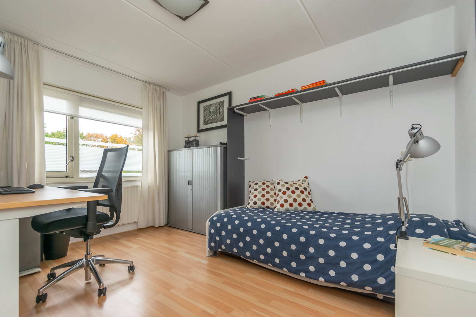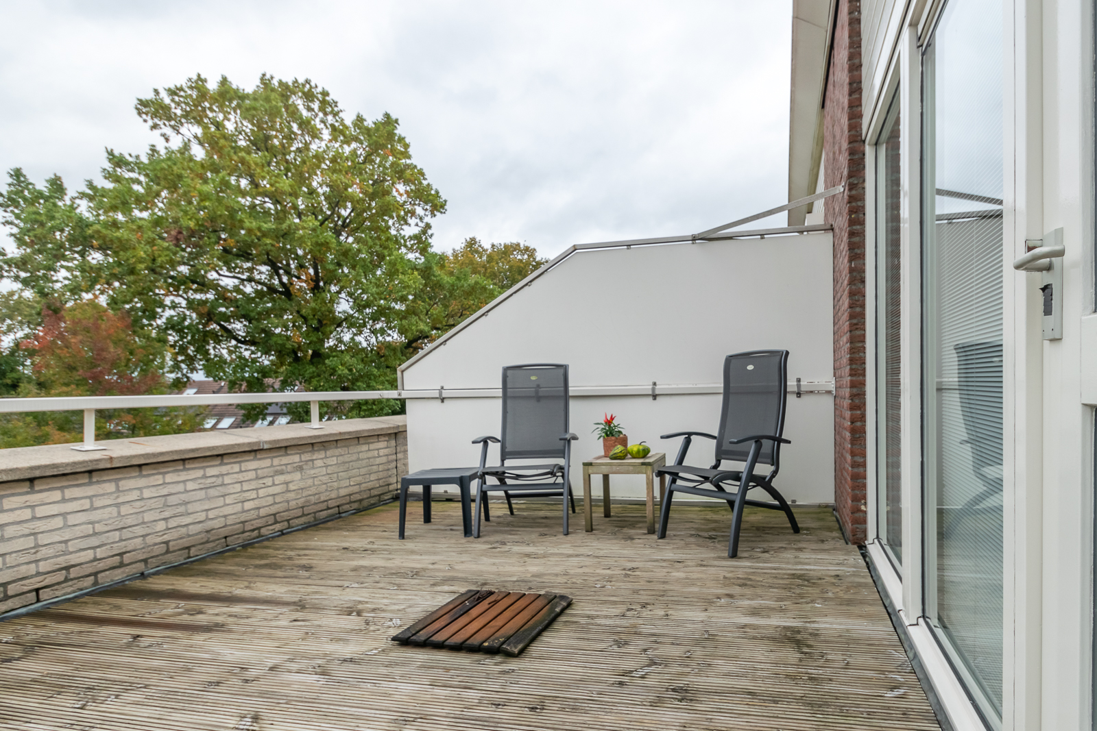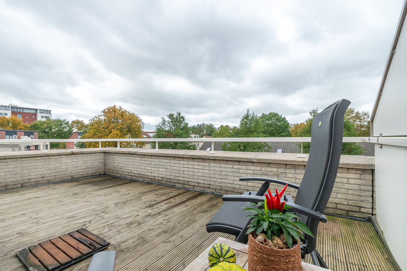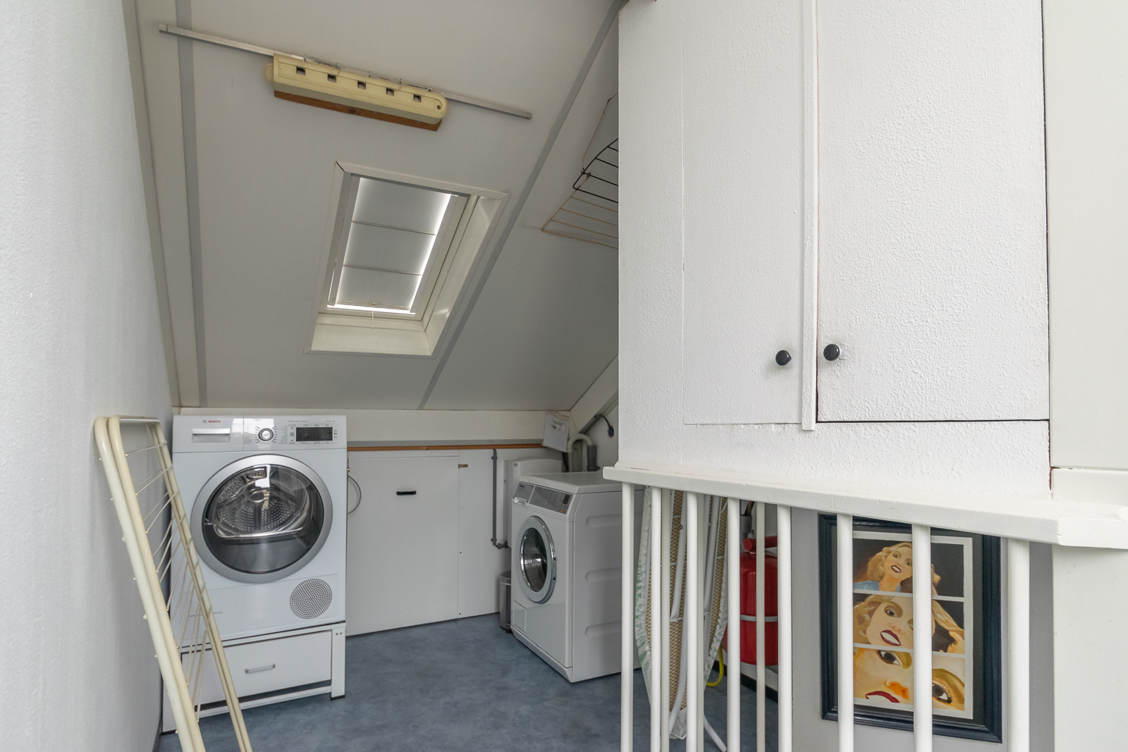 Bereikbaar met een vaste trap, overloop met witgoedaansluitingen en CV-opstelling, ruime 4e slaapkamer met kunststof dakkapel met screen en een dakterras op het westen.
