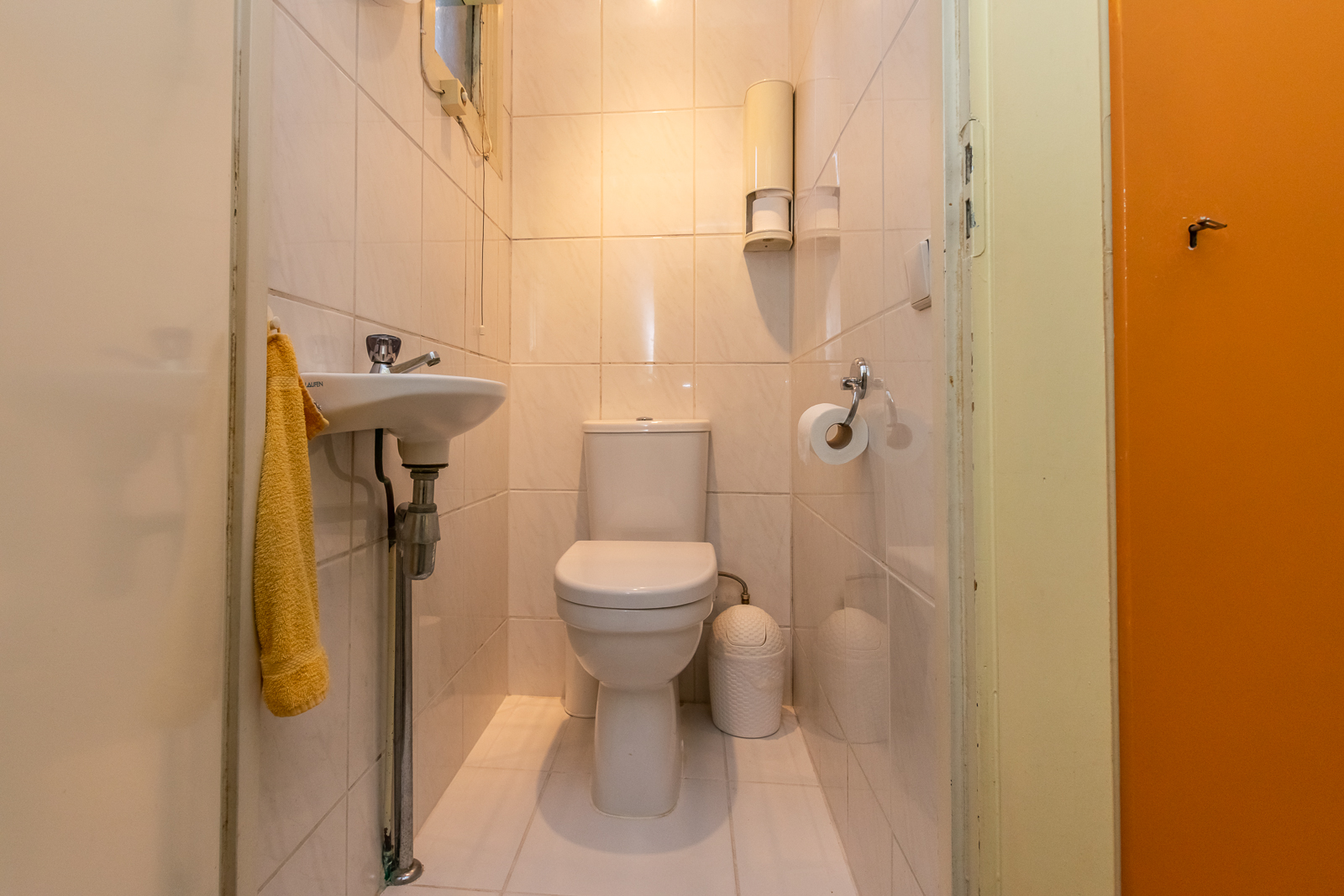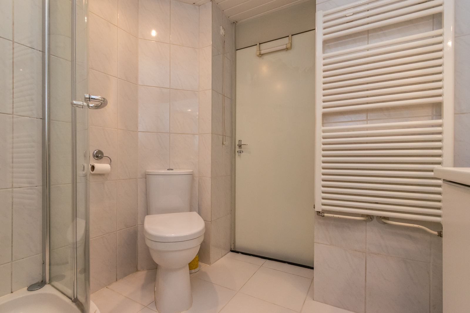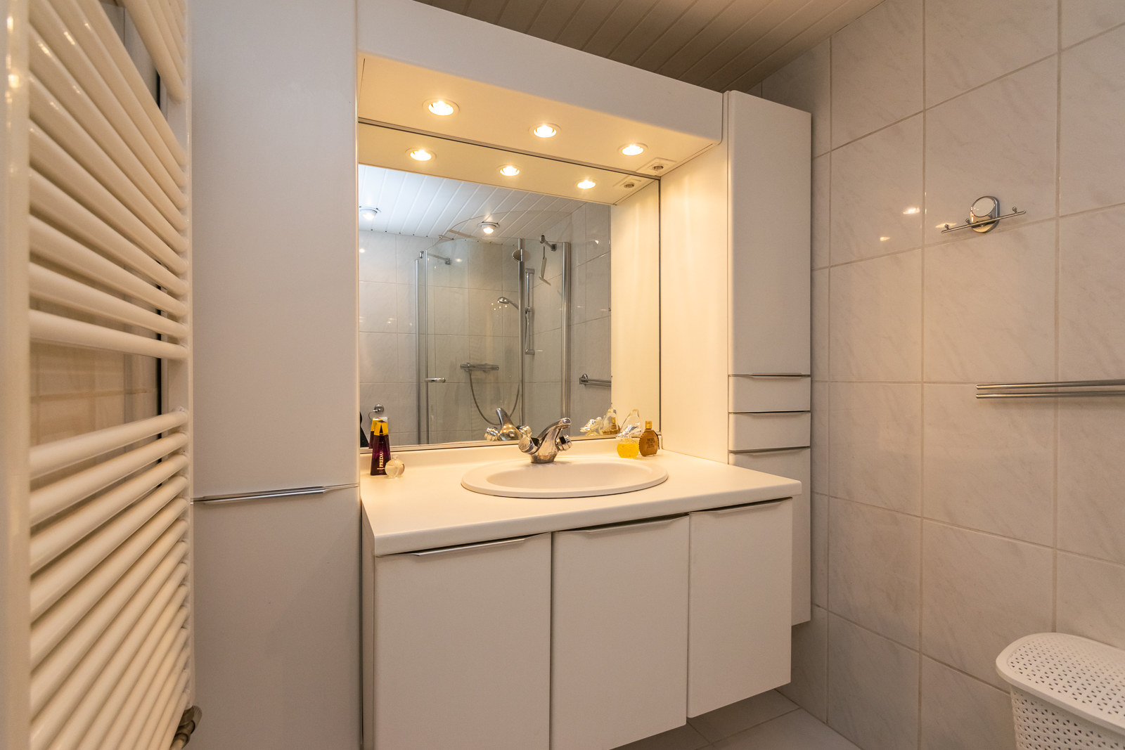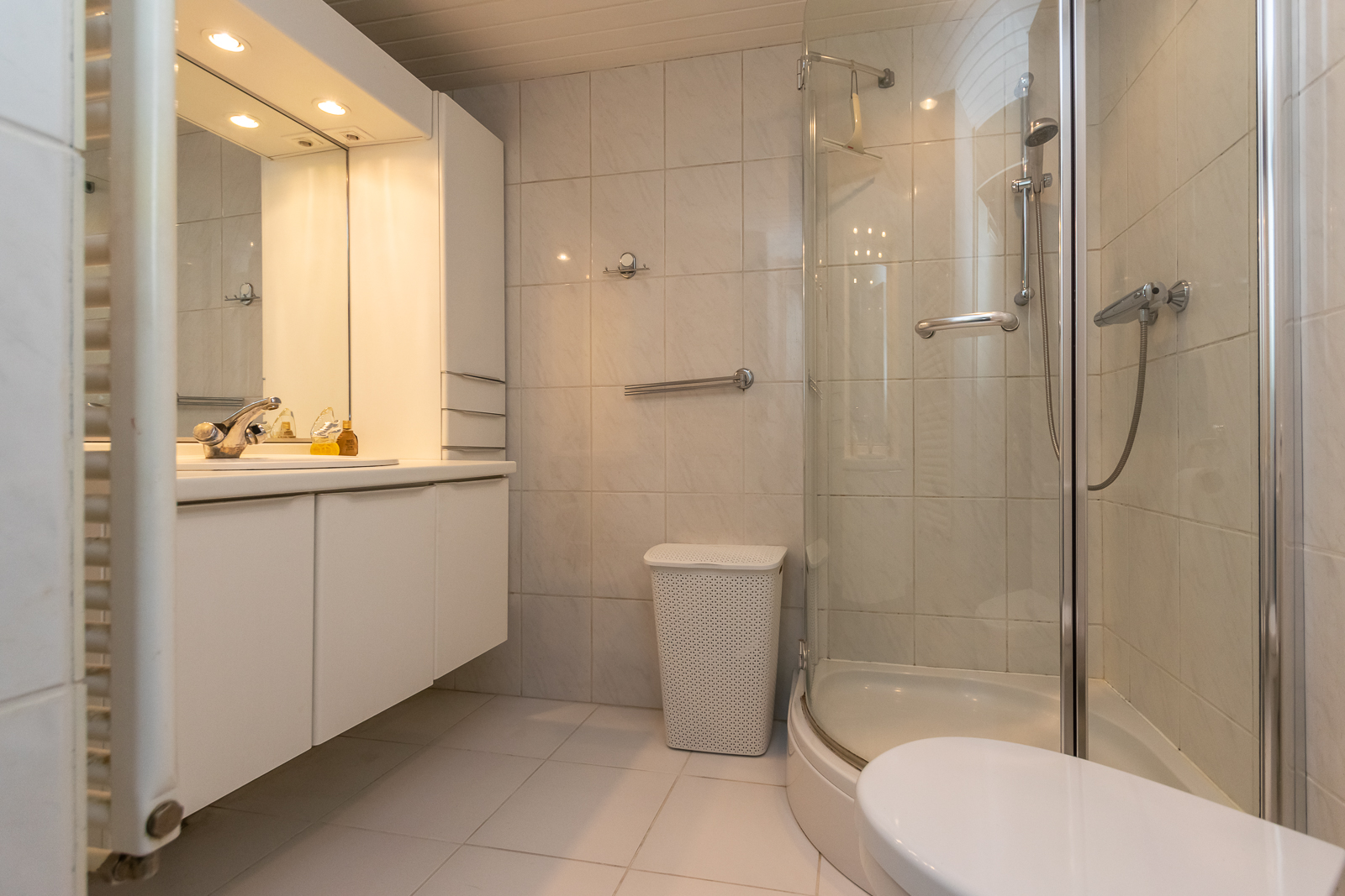 Overloop met een hobbyhoek, 2 slaapkamers waarvan 1 met een dakkapel, bergkast en een grote badkamer met douche, toilet en een wastafelmeubel.