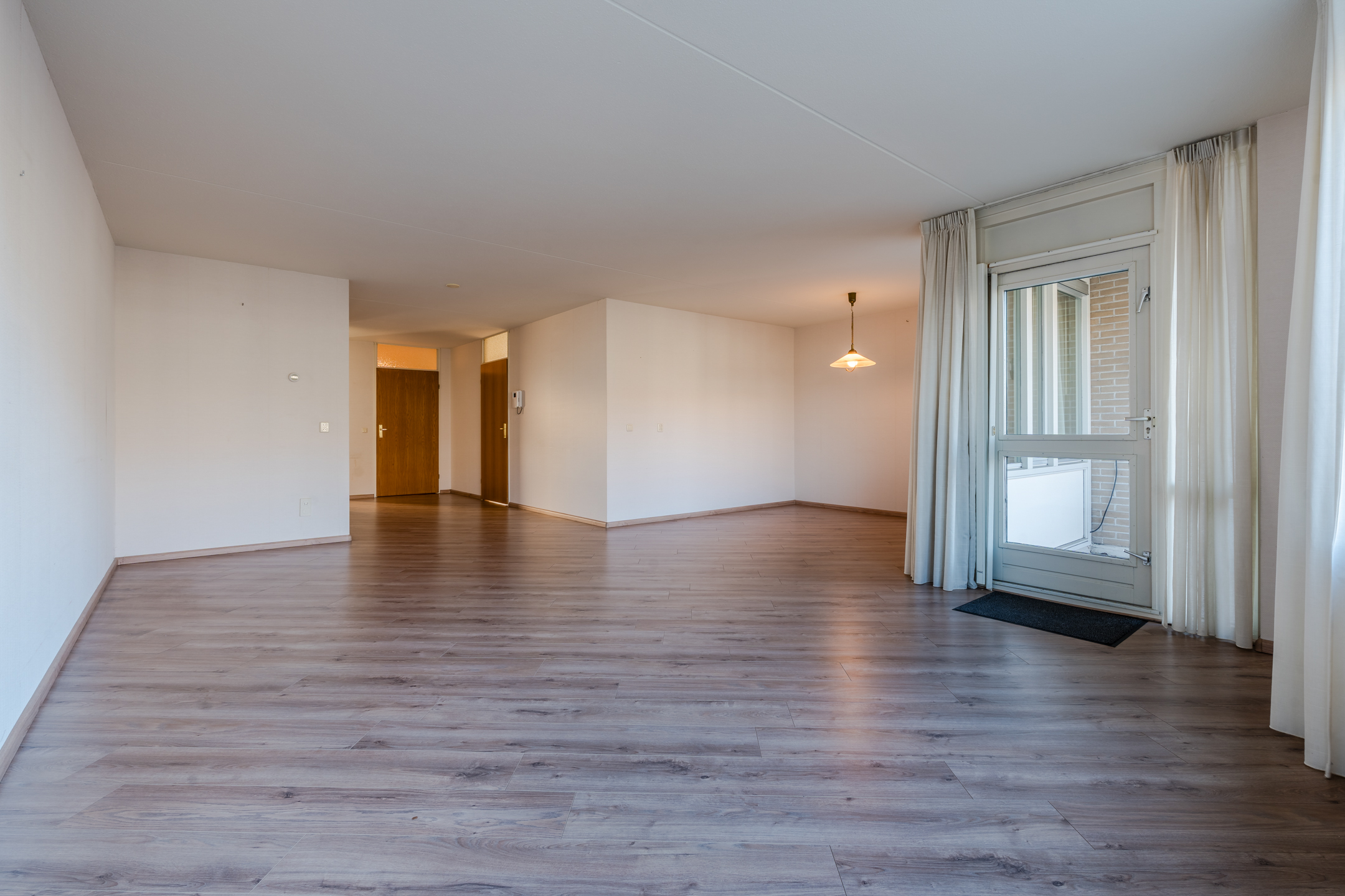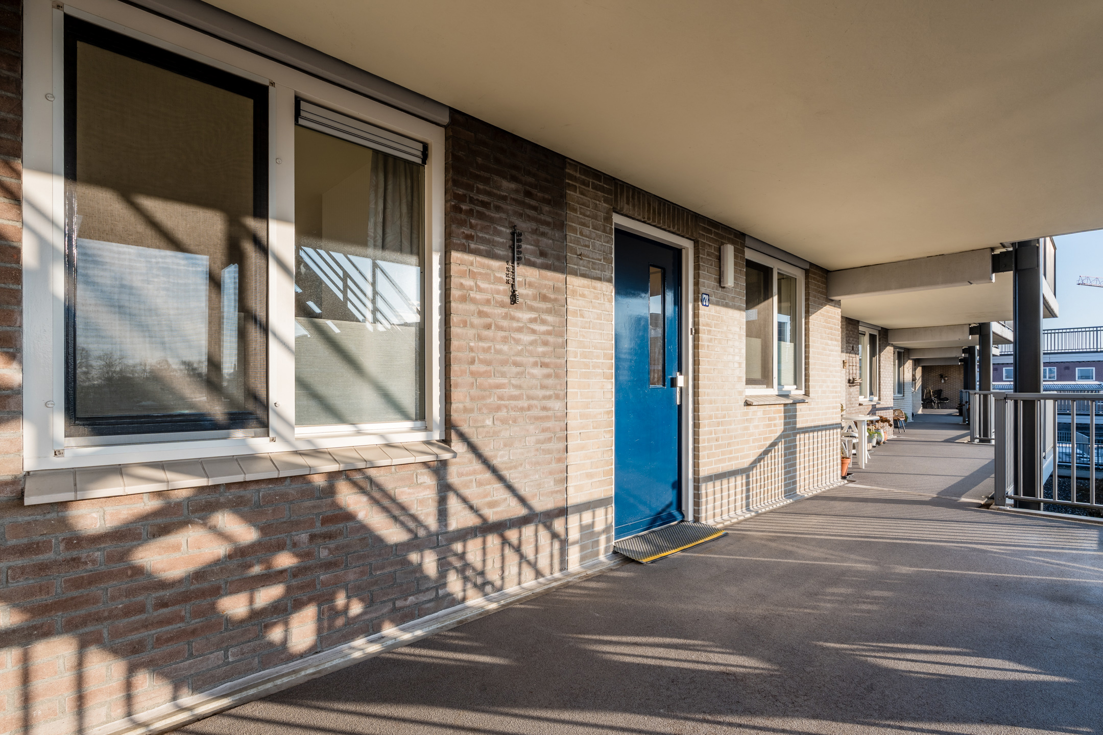 Entree met toilet en meterkast, woonkamer met zicht op de Schutstraat en toegang tot het balkon waar je heerlijk kan genieten van de avondzon, half open keuken met 4 pits gaskookplaat, koelkast en een doorgang naar de bijkeuken met CV-ketel en witgoedaansluitingen. Het appartement heeft één slaapkamer die grenst aan de badkamer met toilet, douche en badkamermeubel. Het appartement is voorzien van een laminaat, de galerij is aan de aan de zuidzijde gelegen waar je heerlijk kan genieten van de vroege voorjaarszon.