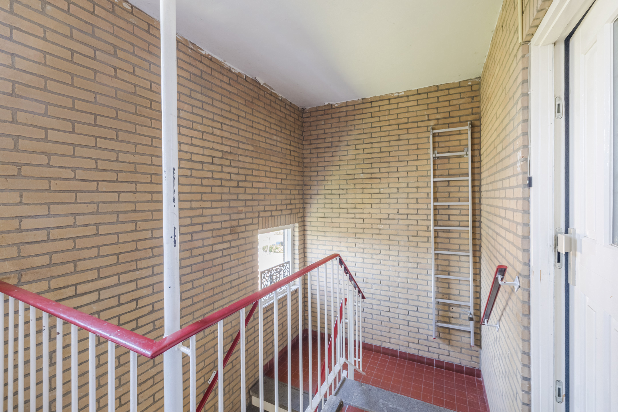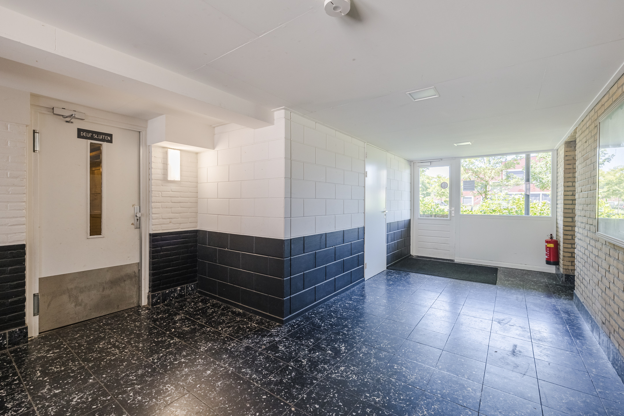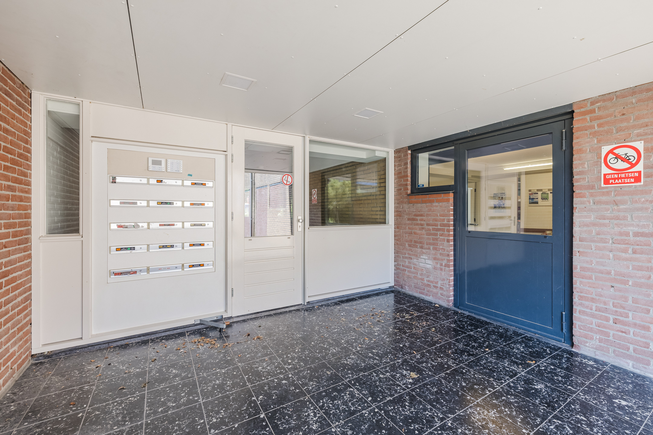 Gezamenlijke entree met intercominstallatie, brievenbus, trapopgang en lift.