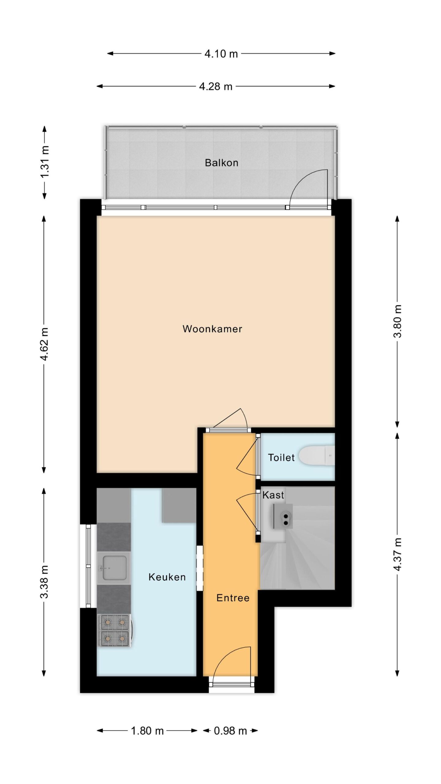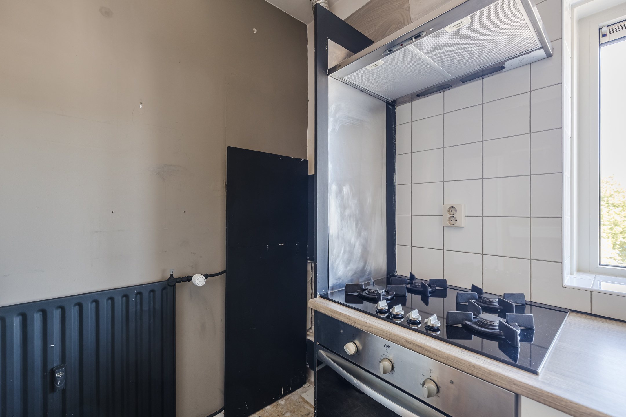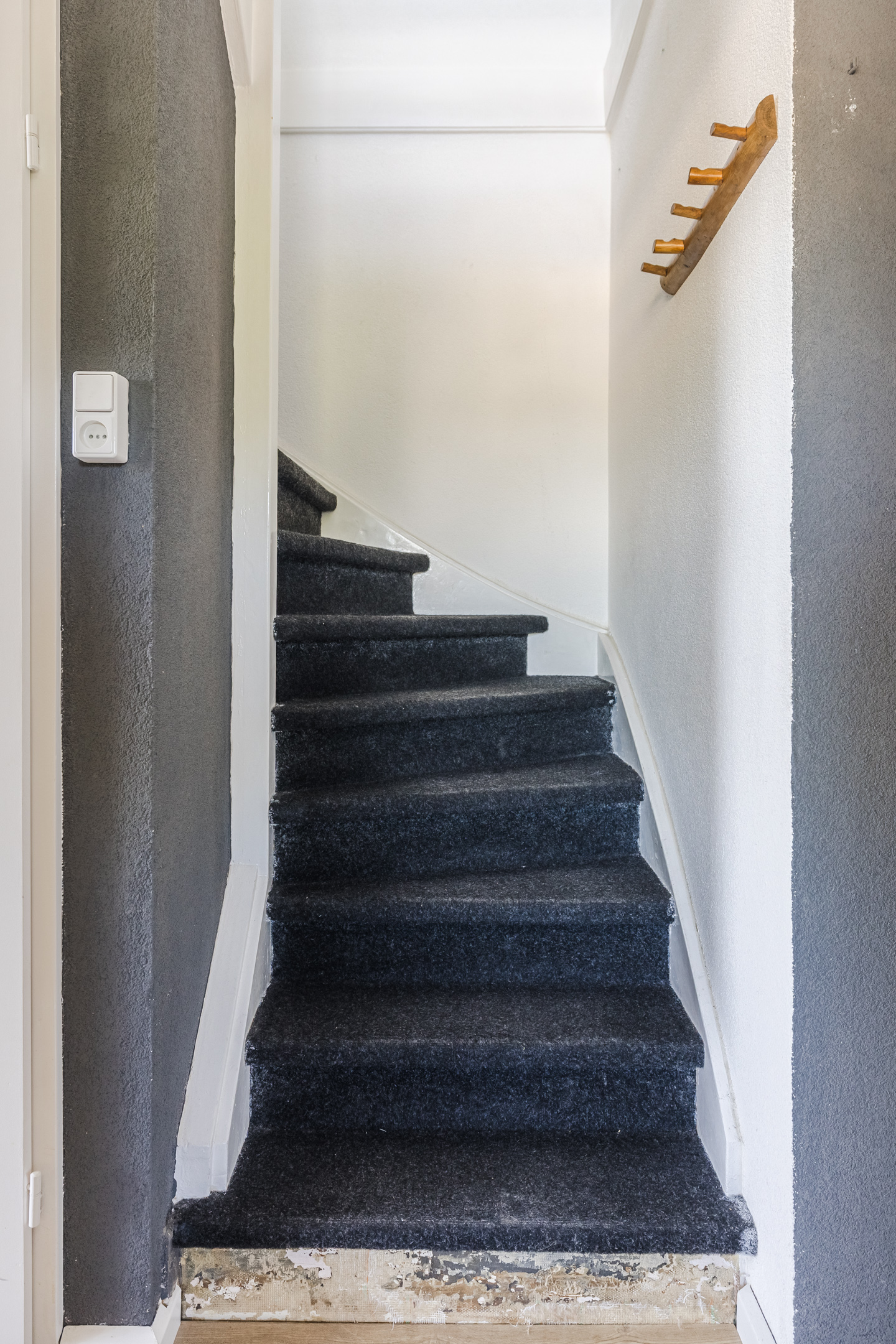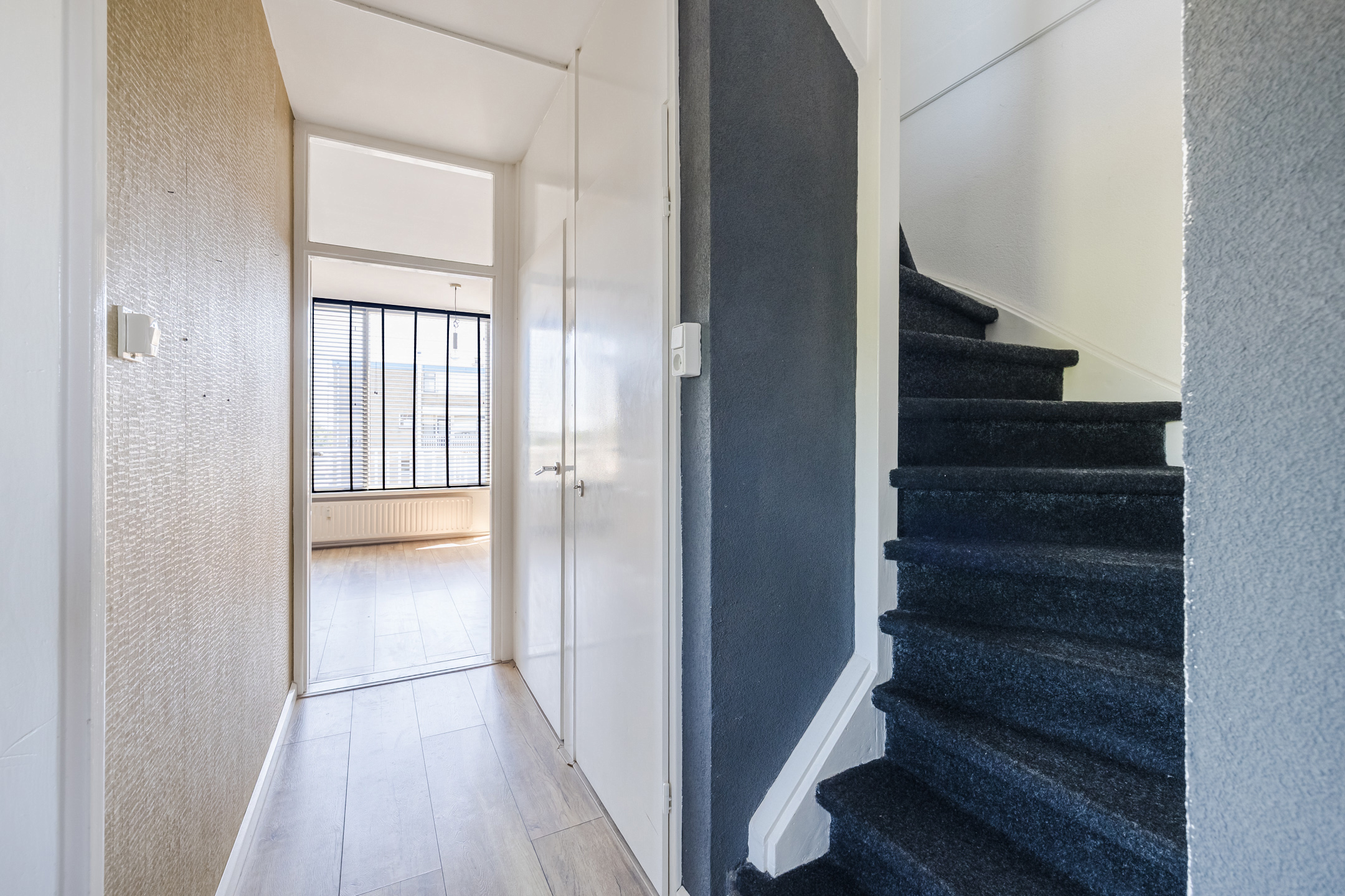 Entree, meterkast, trapopgang, trapkast, toilet en gesloten keuken voorzien van enig inbouwapparatuur.