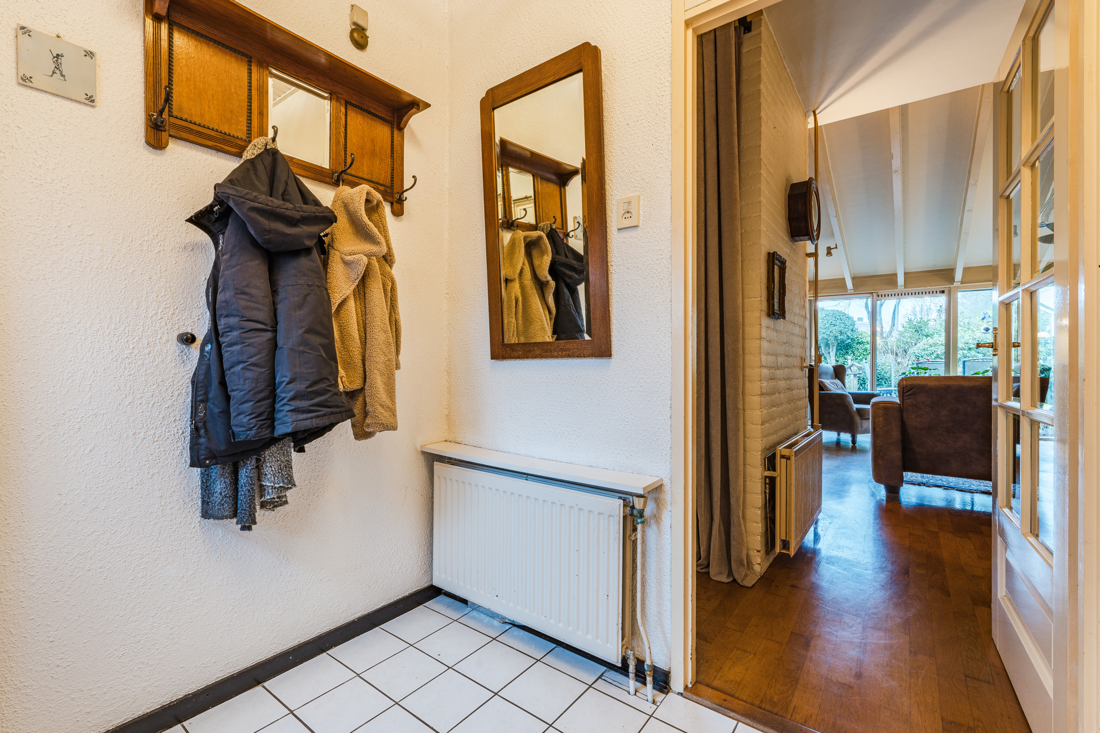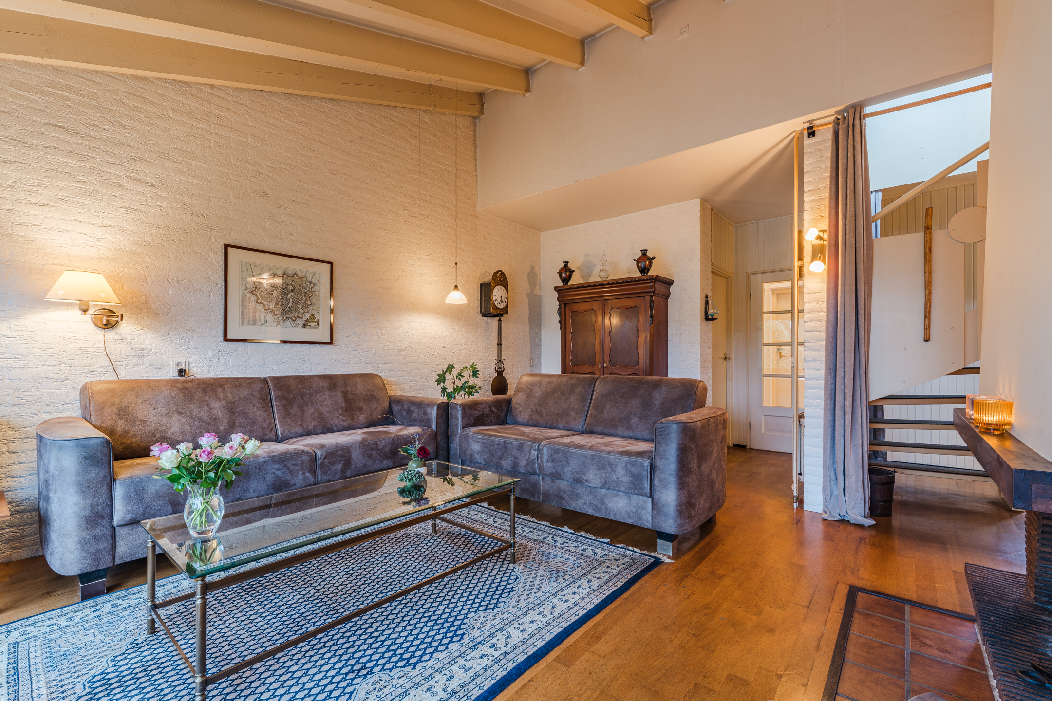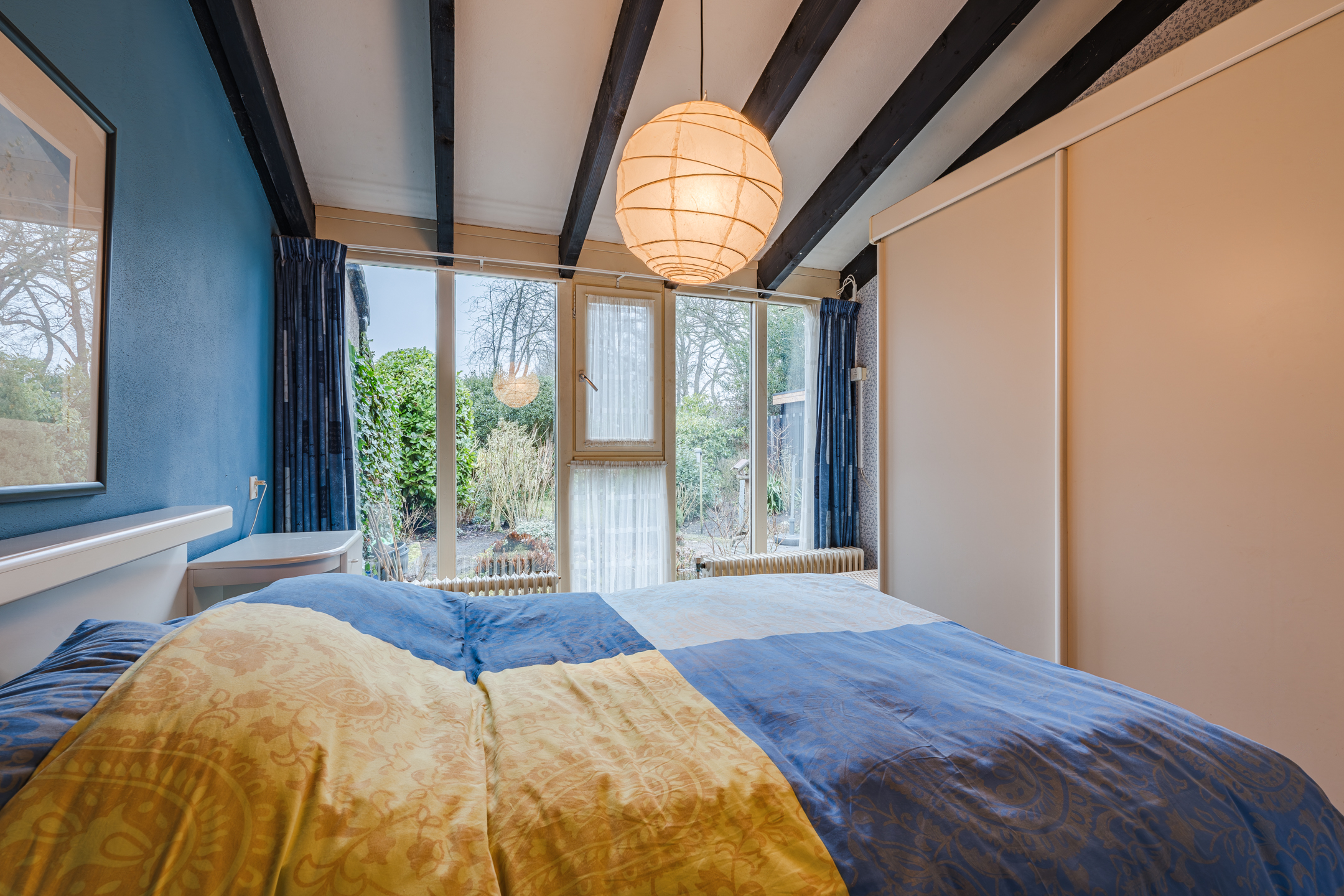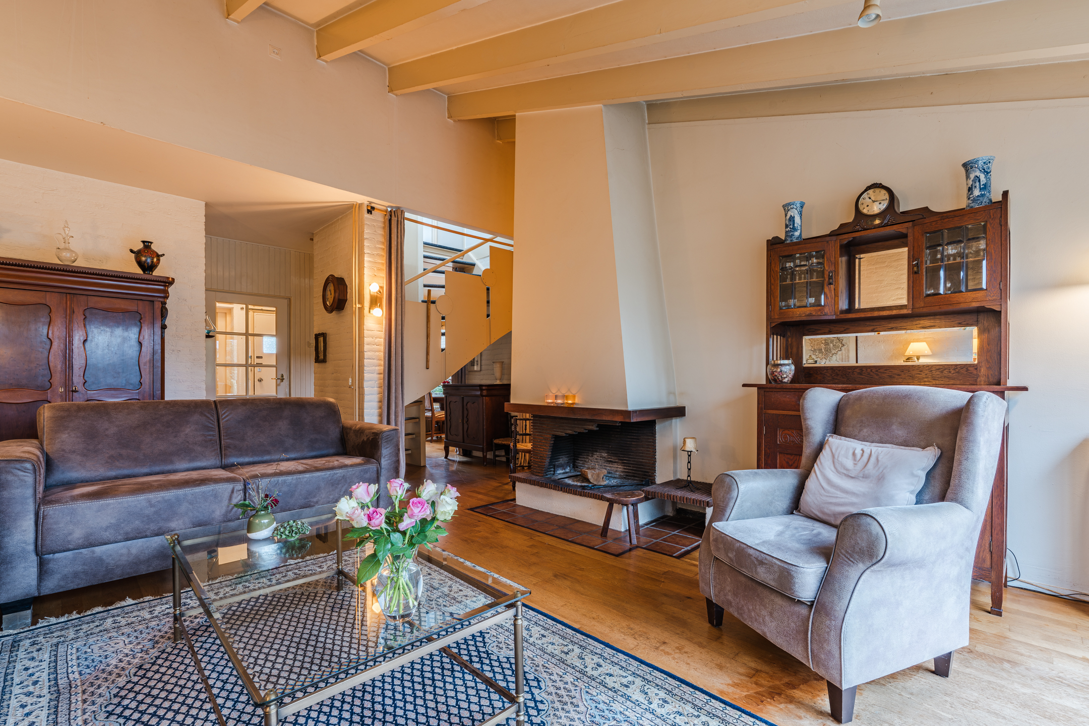 Entree/hal, royale slaapkamer, toilet, meterkast, bijkeuken met een aansluiting voor was- en droogapparatuur en de cv-ketel, tuingerichte sfeervolle woonkamer met karakteristieke balken, een open haard en een aluminium schuifpui. De woonkamer staat in verbinding met de halfopen keuken, voorzien van enige inbouwapparatuur en biedt toegang naar de 2e slaapkamer met uitzicht op de prachtig aangelegde tuin.