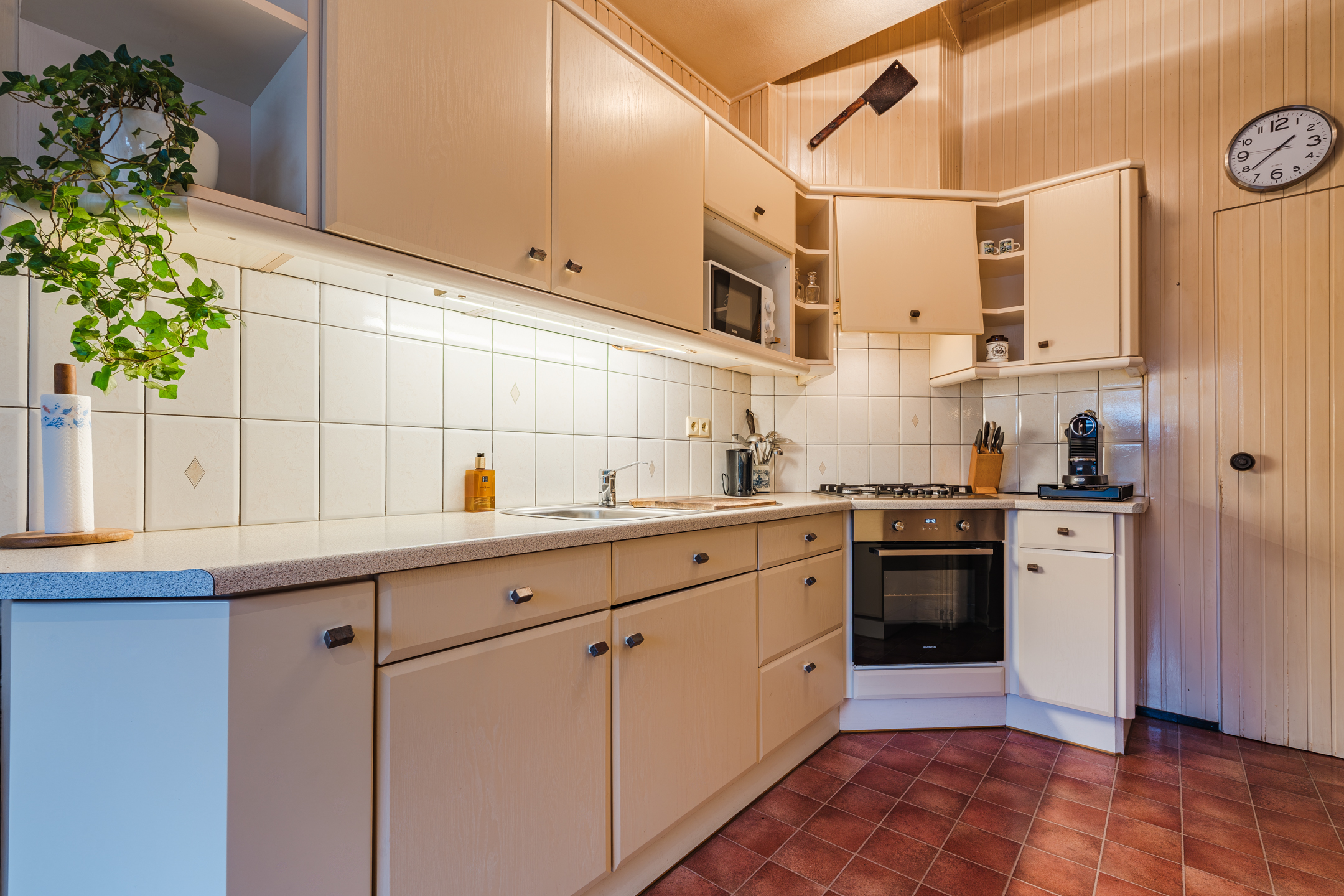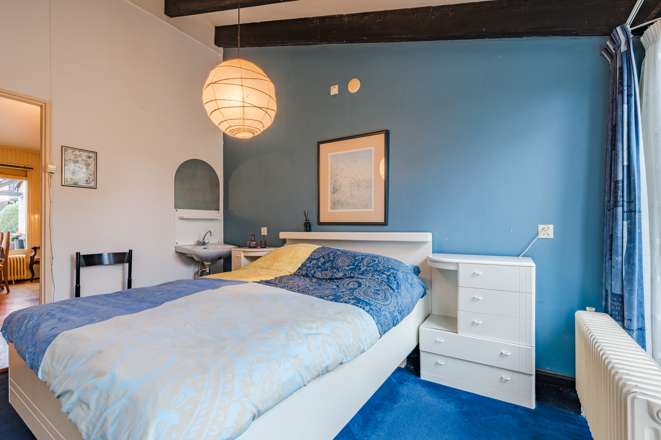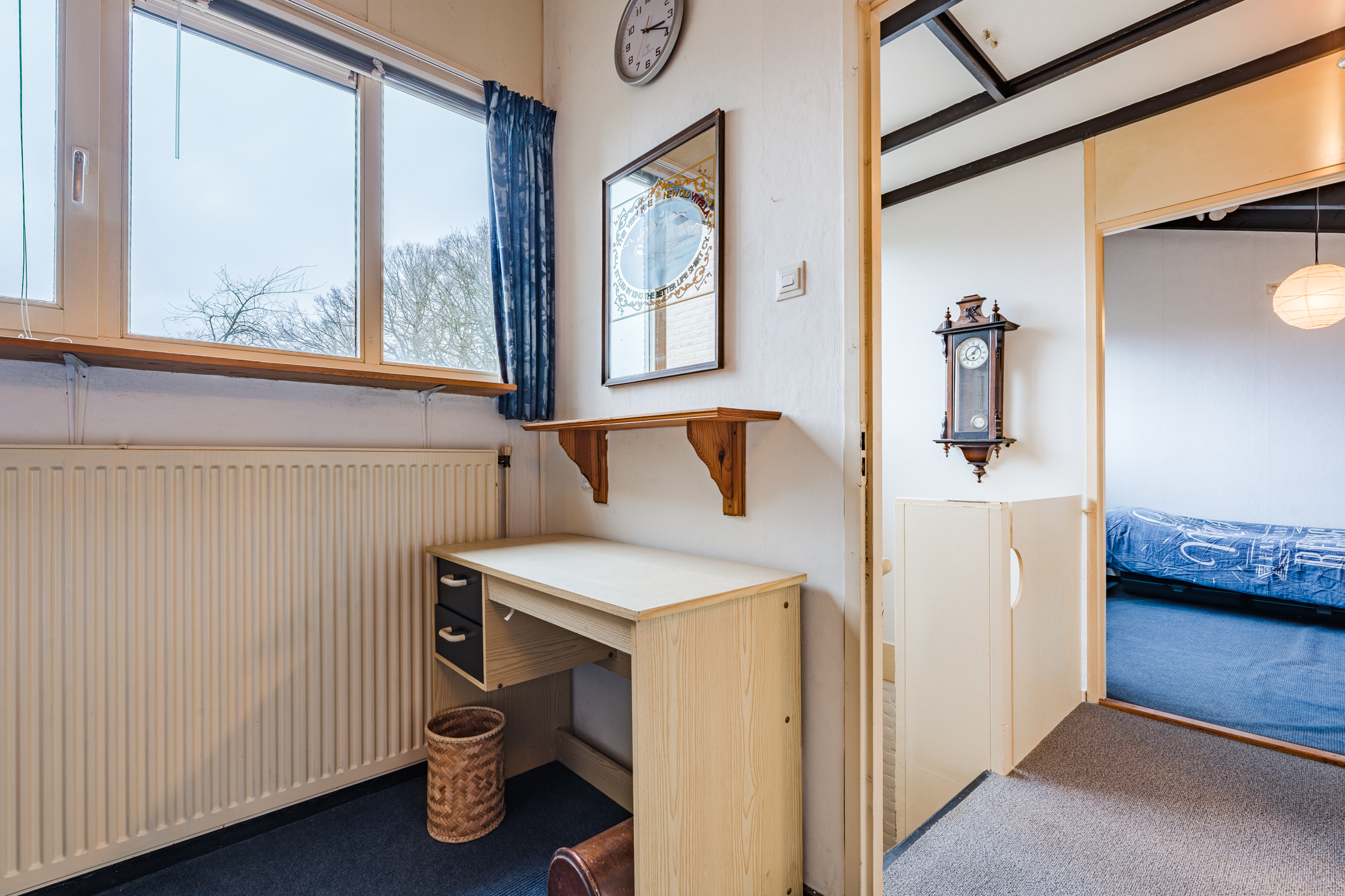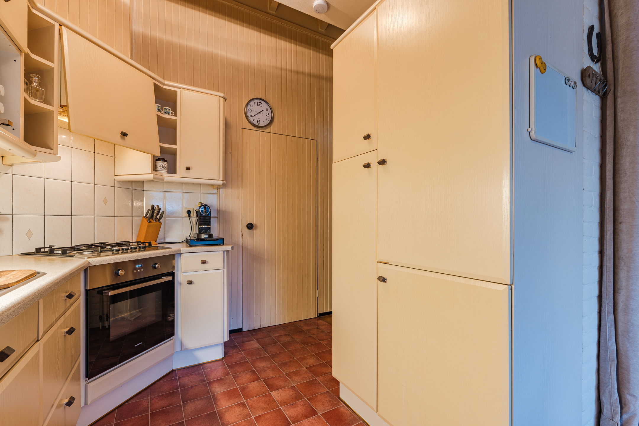 Entree/hal, royale slaapkamer, toilet, meterkast, bijkeuken met een aansluiting voor was- en droogapparatuur en de cv-ketel, tuingerichte sfeervolle woonkamer met karakteristieke balken, een open haard en een aluminium schuifpui. De woonkamer staat in verbinding met de halfopen keuken, voorzien van enige inbouwapparatuur en biedt toegang naar de 2e slaapkamer met uitzicht op de prachtig aangelegde tuin.