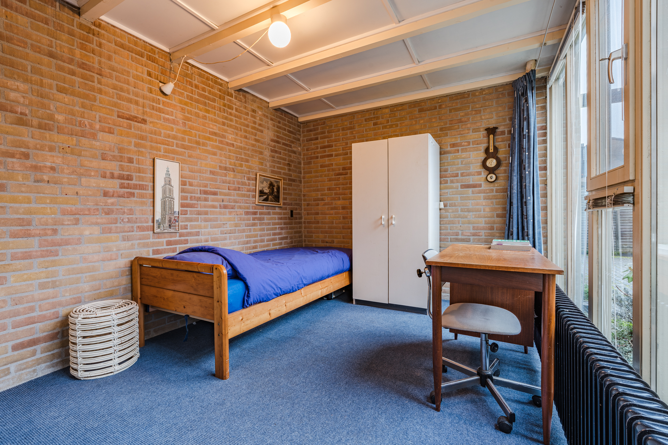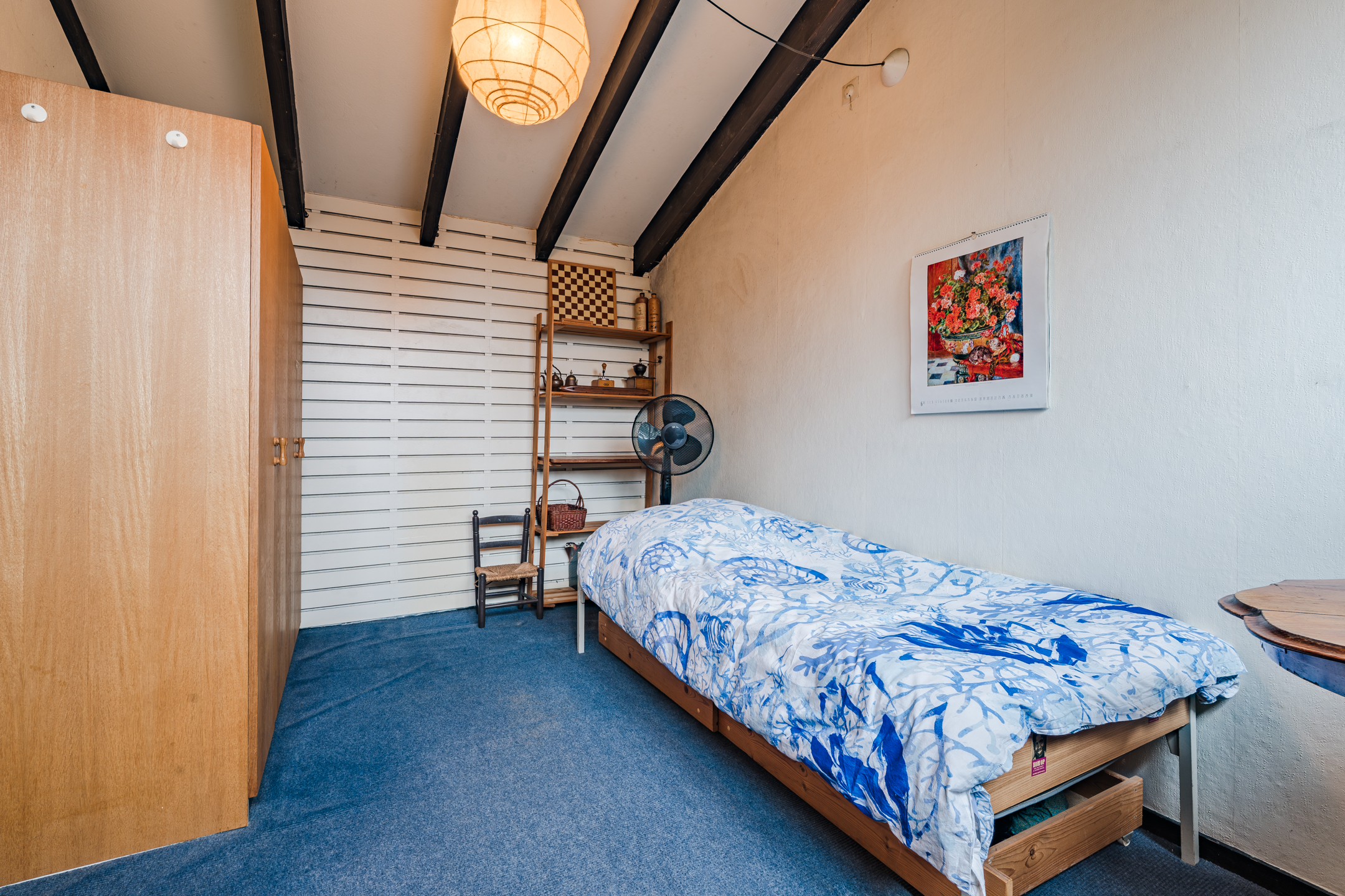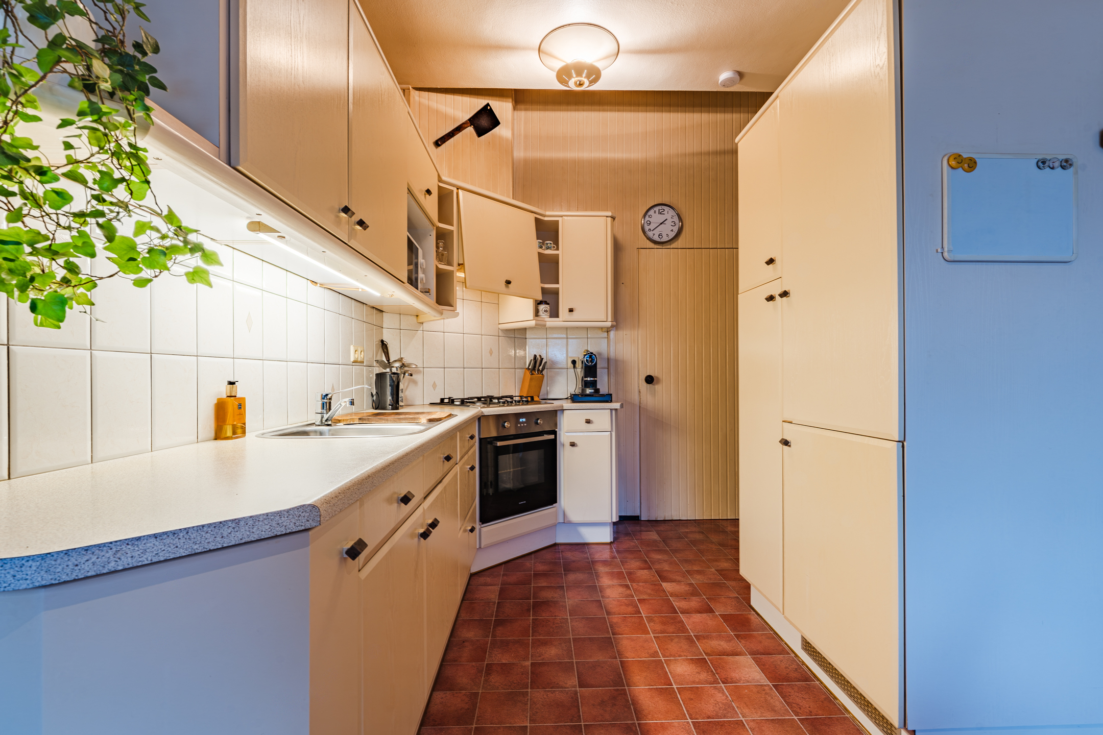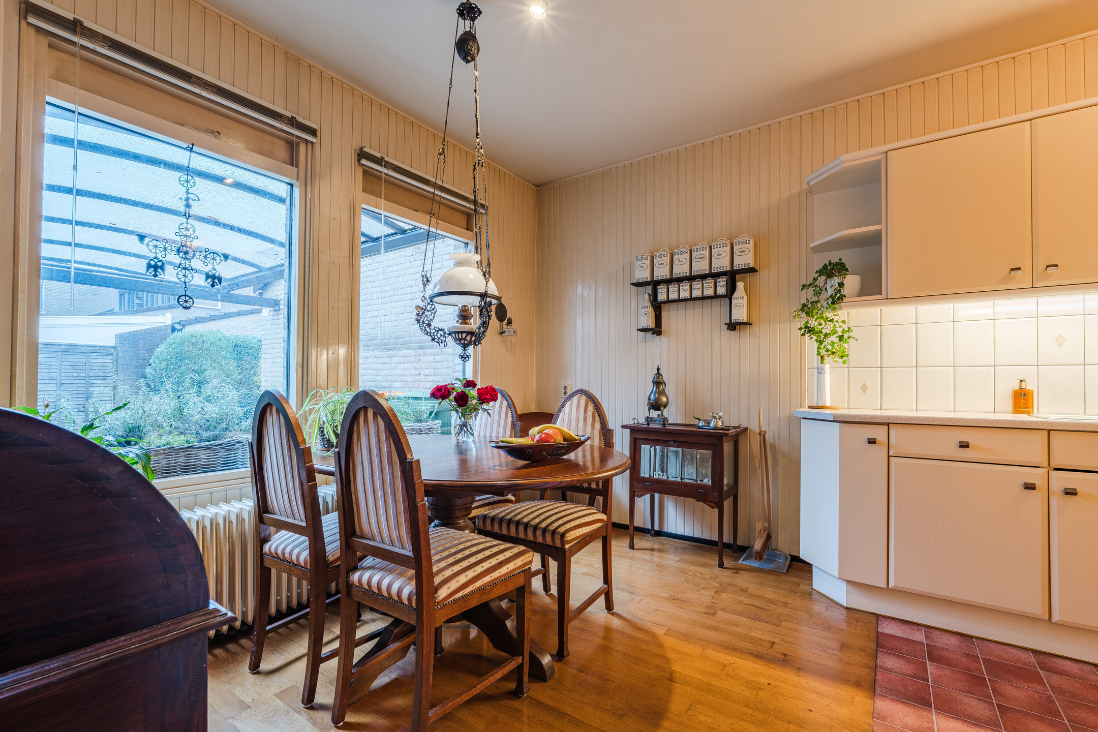 Entree/hal, royale slaapkamer, toilet, meterkast, bijkeuken met een aansluiting voor was- en droogapparatuur en de cv-ketel, tuingerichte sfeervolle woonkamer met karakteristieke balken, een open haard en een aluminium schuifpui. De woonkamer staat in verbinding met de halfopen keuken, voorzien van enige inbouwapparatuur en biedt toegang naar de 2e slaapkamer met uitzicht op de prachtig aangelegde tuin.